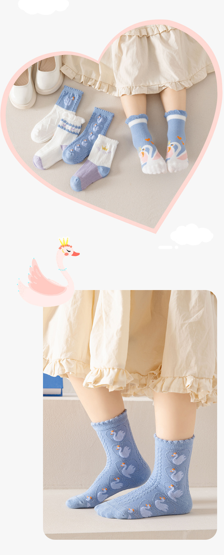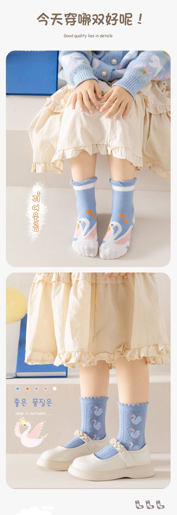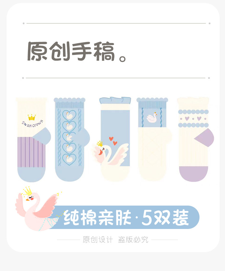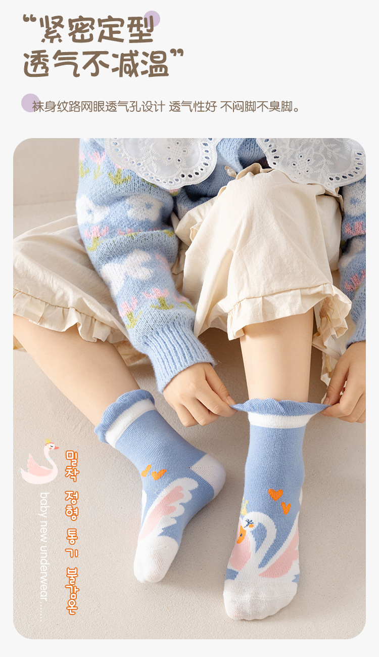 어린이 양말 2025 새로운 여자 양말 코튼 퓨어 블루 스완 중반 송아지 양말 만화 귀여운 공주 아기 양말 통기성스토어 가기