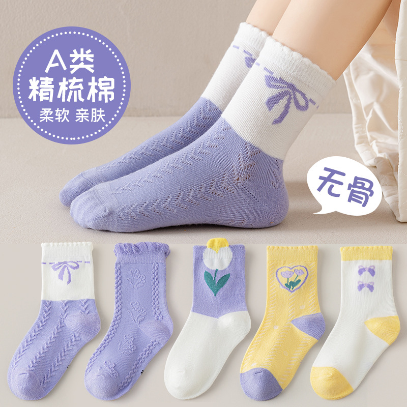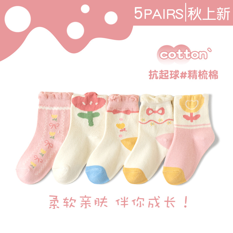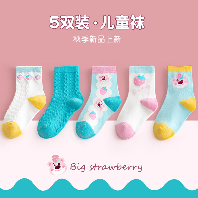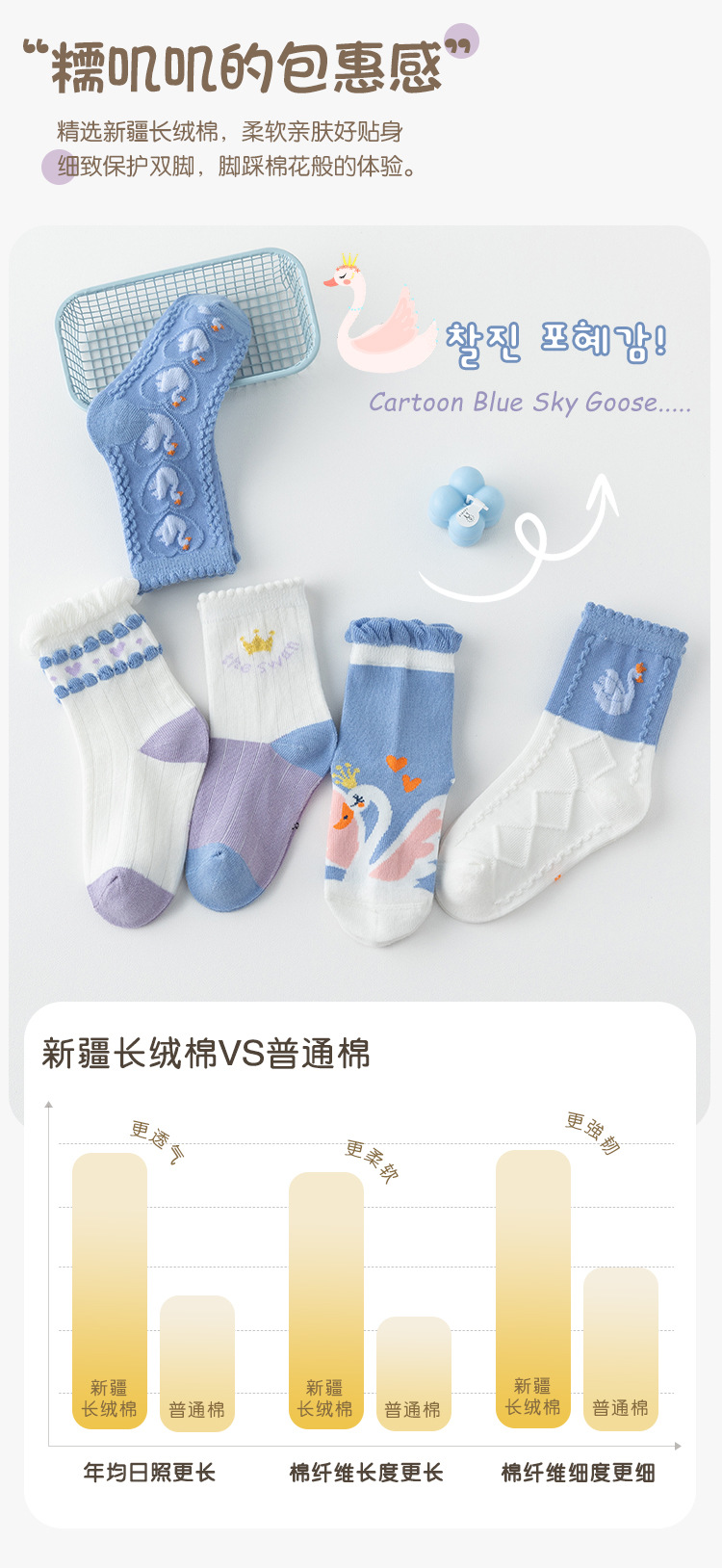 어린이 양말 2025 새로운 여자 양말 코튼 퓨어 블루 스완 중반 송아지 양말 만화 귀여운 공주 아기 양말 통기성스토어 가기