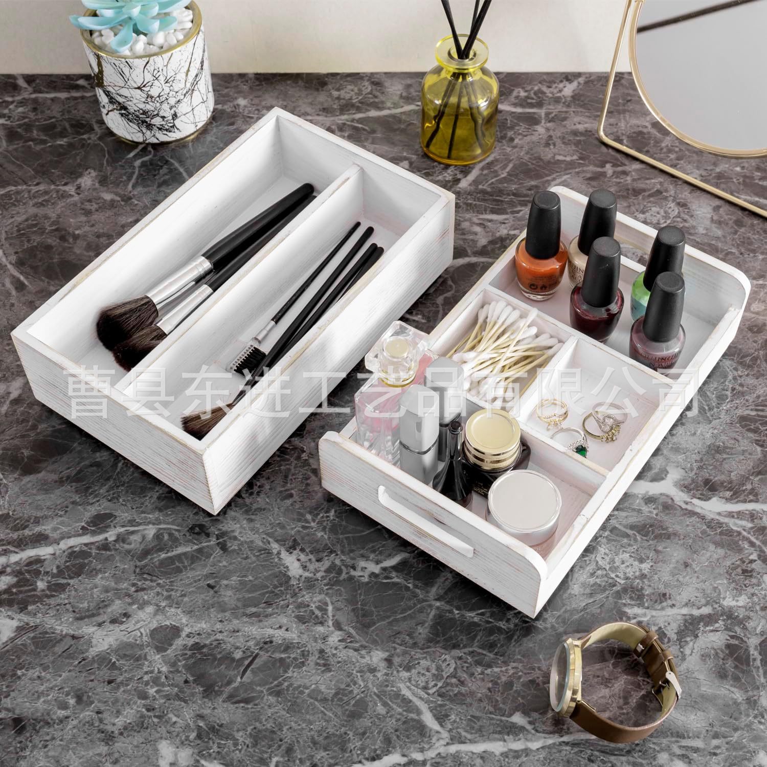 데스크탑 나무 화장품 보관 상자 더블 레이어 메이크업 도구 핸들 솔리드 우드 보관 상자가있는 분리 된 보관 상자스토어 가기