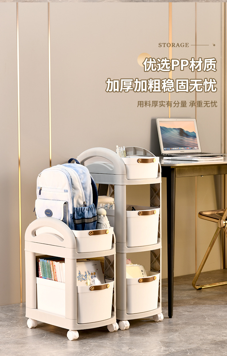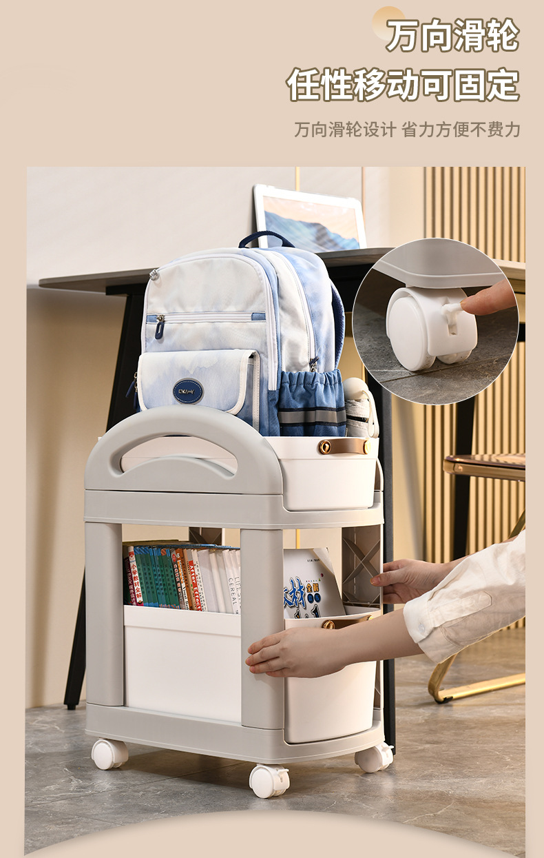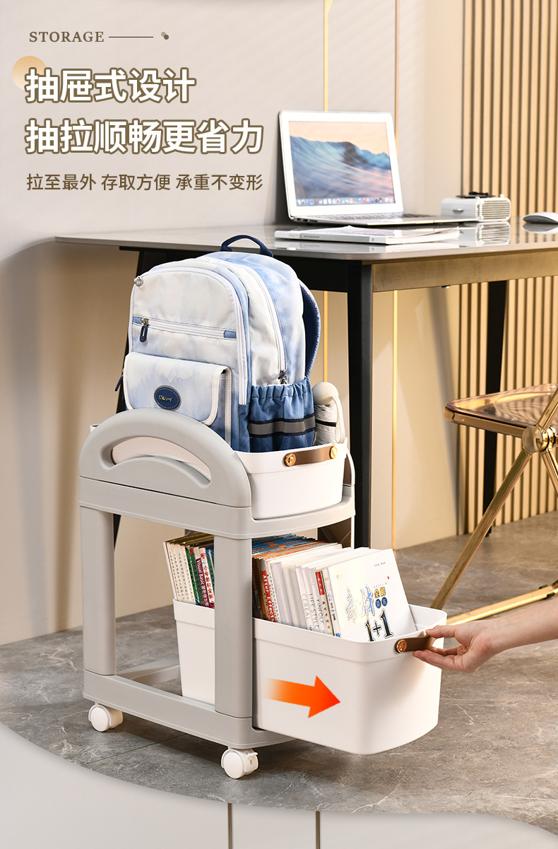 어린이 간단한 스토리지 랙 주방 바닥 스토리지 랙 책가방 카트 가정용 바퀴가있는 이동식 다층 데스크탑