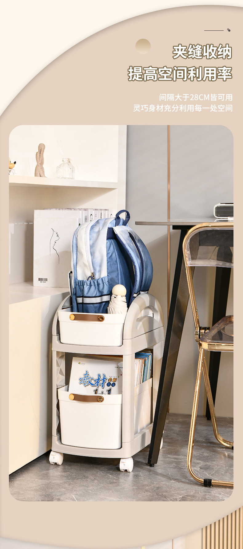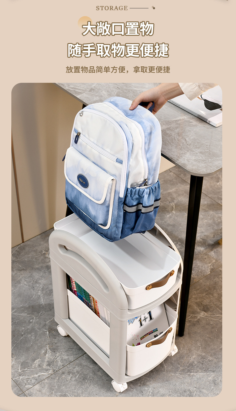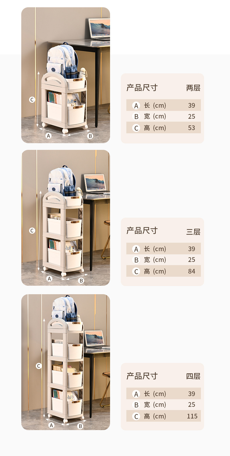 어린이 간단한 스토리지 랙 주방 바닥 스토리지 랙 책가방 카트 가정용 바퀴가있는 이동식 다층 데스크탑