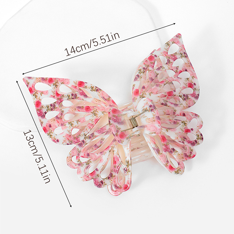 2023 새로운 모리 스타일 패턴 초대형 더블 레이어 나비 잡아 클립 여성용 헤어 클립 모자 상어 클립 헤어 그랩