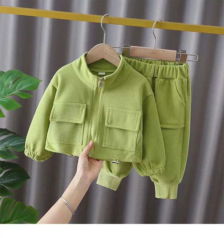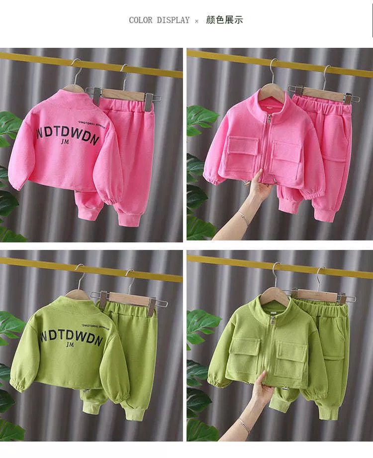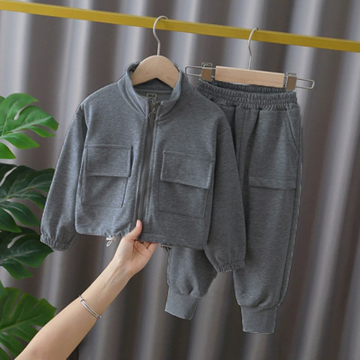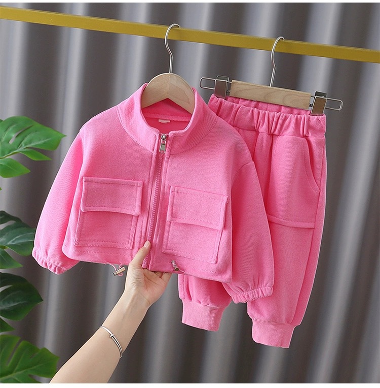 크로스보더 2026 신상 봄가을 한국판 아동용 지퍼 스웨트셔츠 투피스 세트 아동복 남아 여아 바지 세트 아마존스토어 가기