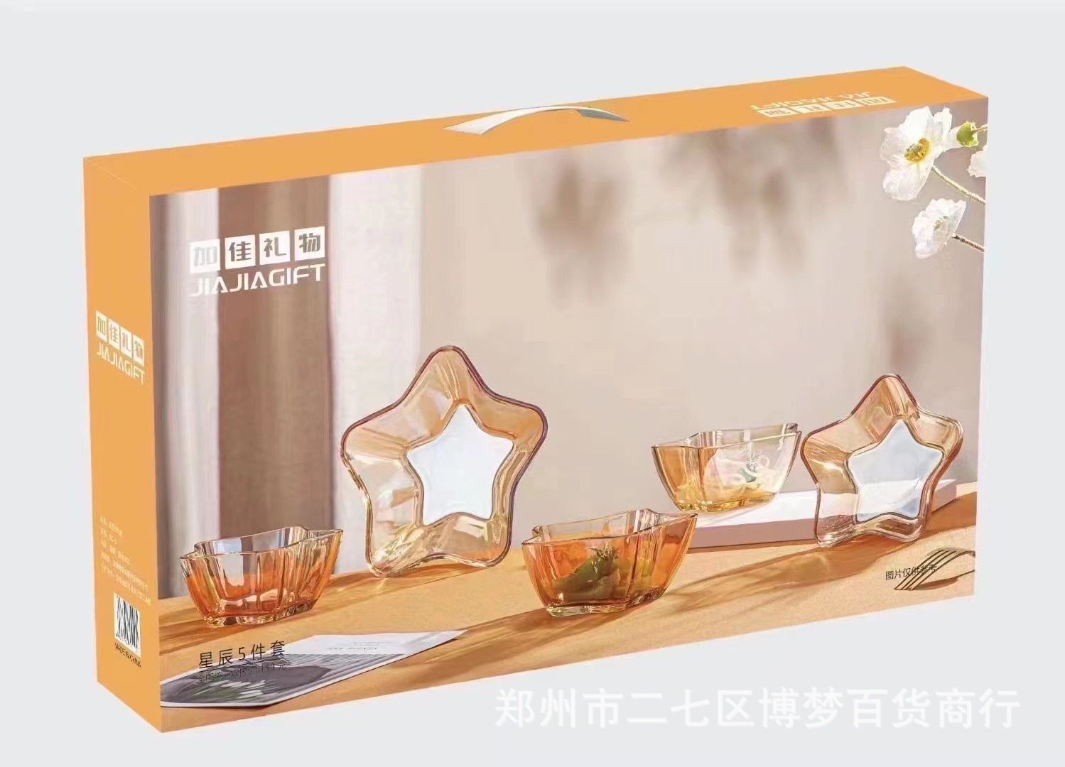 Jiajia 기프트 스타 5 종 세트 일본식 유리 과일 그릇 홈 샐러드 그릇 디저트 그릇 말린 과일 식기 가오 얀
