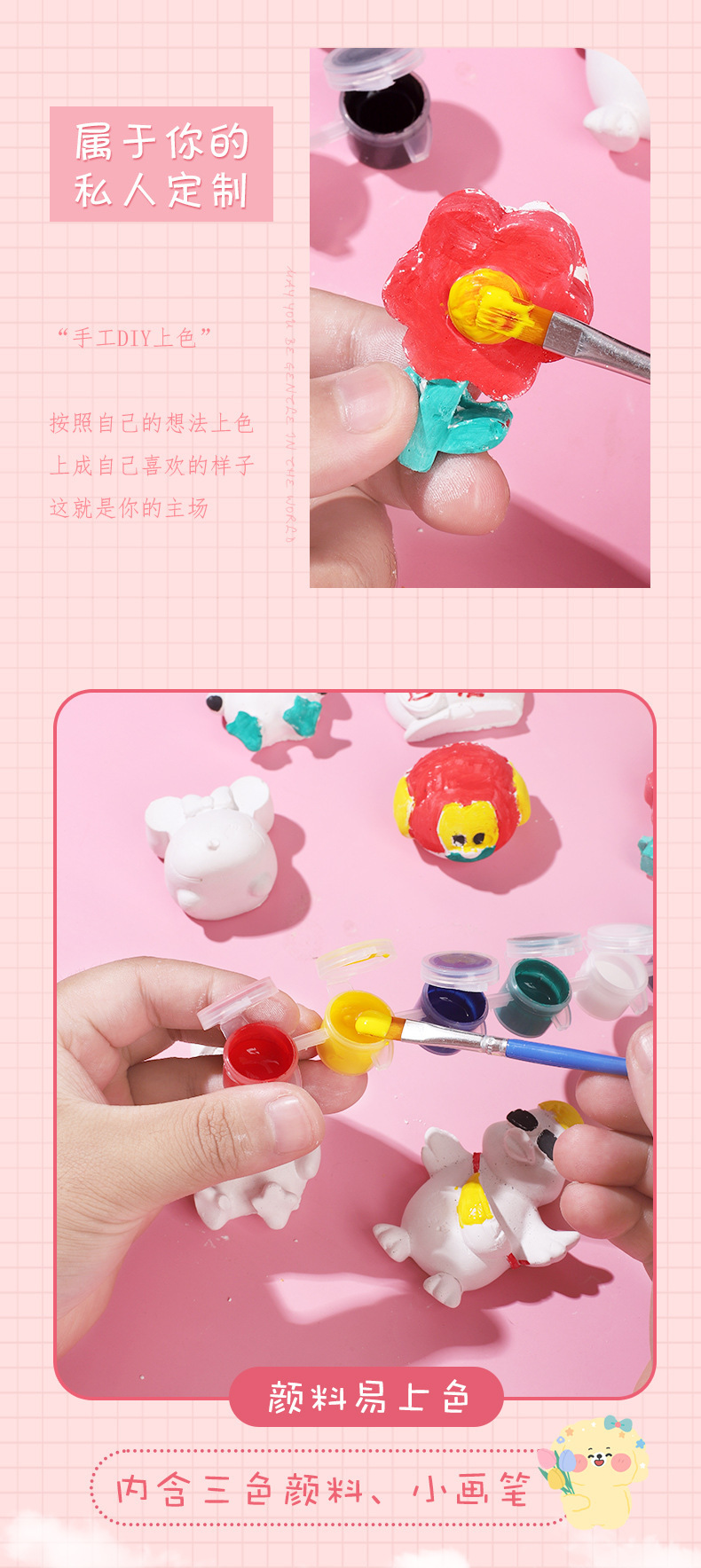 석고 인형 어린이 그림 창조적 인 낙서 유체 곰 diy 페인트 석고 인형 색칠 마구간 선물