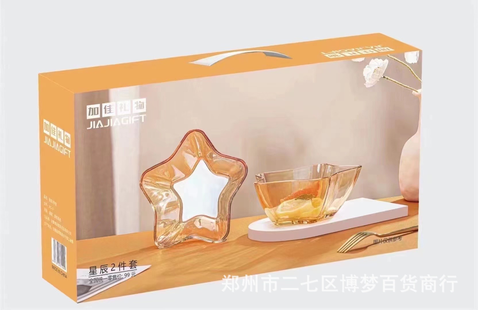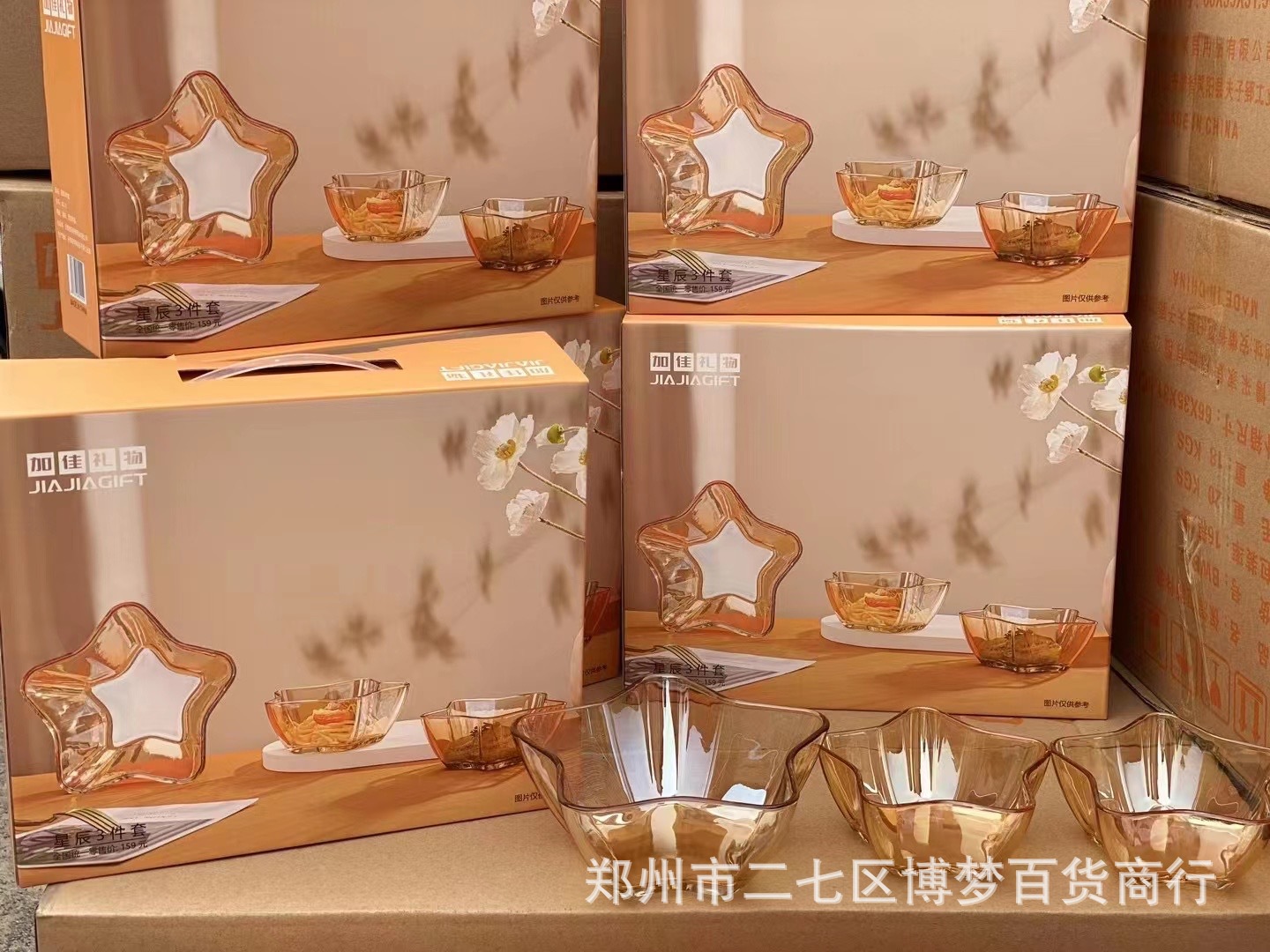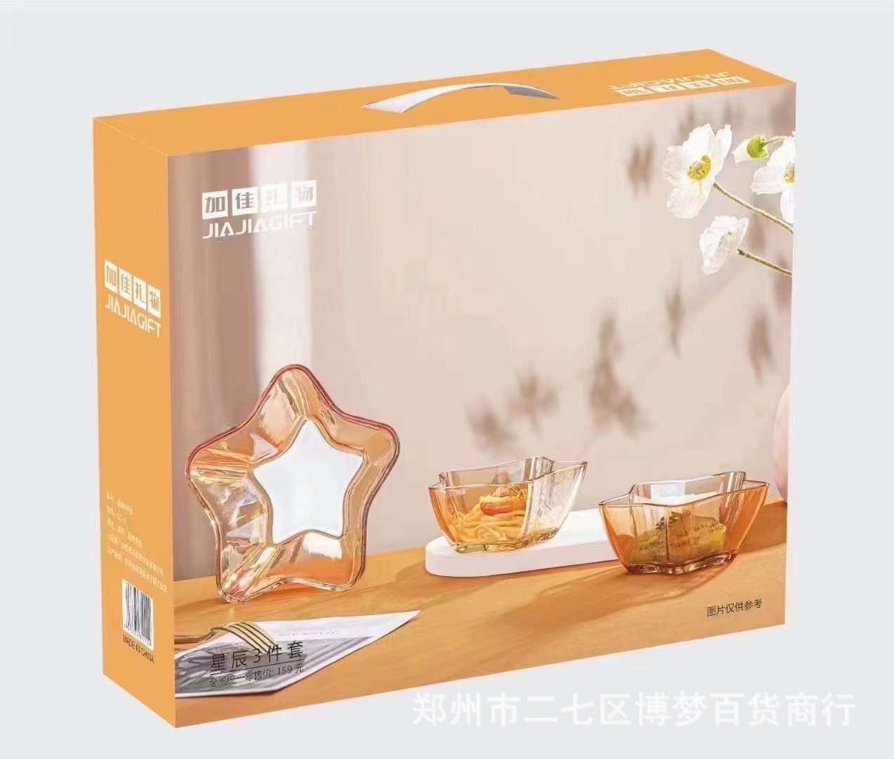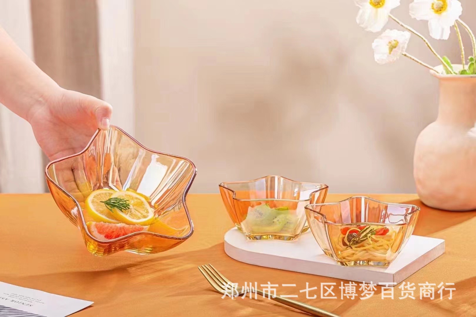 Jiajia 기프트 스타 3 피스 일본식 유리 과일 그릇 가정용 살라 그릇 디저트 그릇 말린 과일 식기 하이 페이스스토어 가기