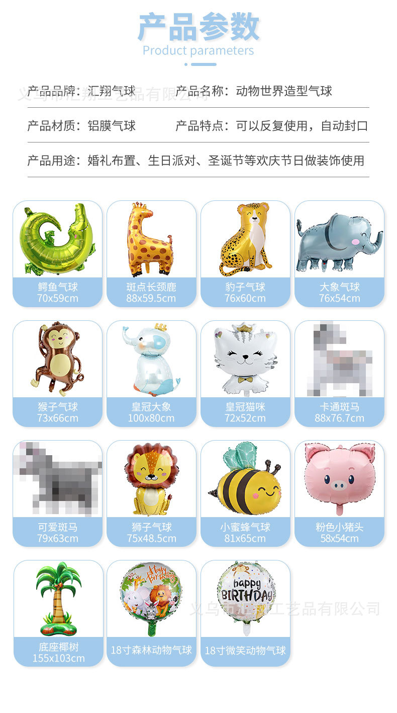 만화 새로운 미소 숲 동물 알루미늄 필름 풍선 사자 호랑이 코끼리 기린 코코넛 나무 정글 파티스토어 가기