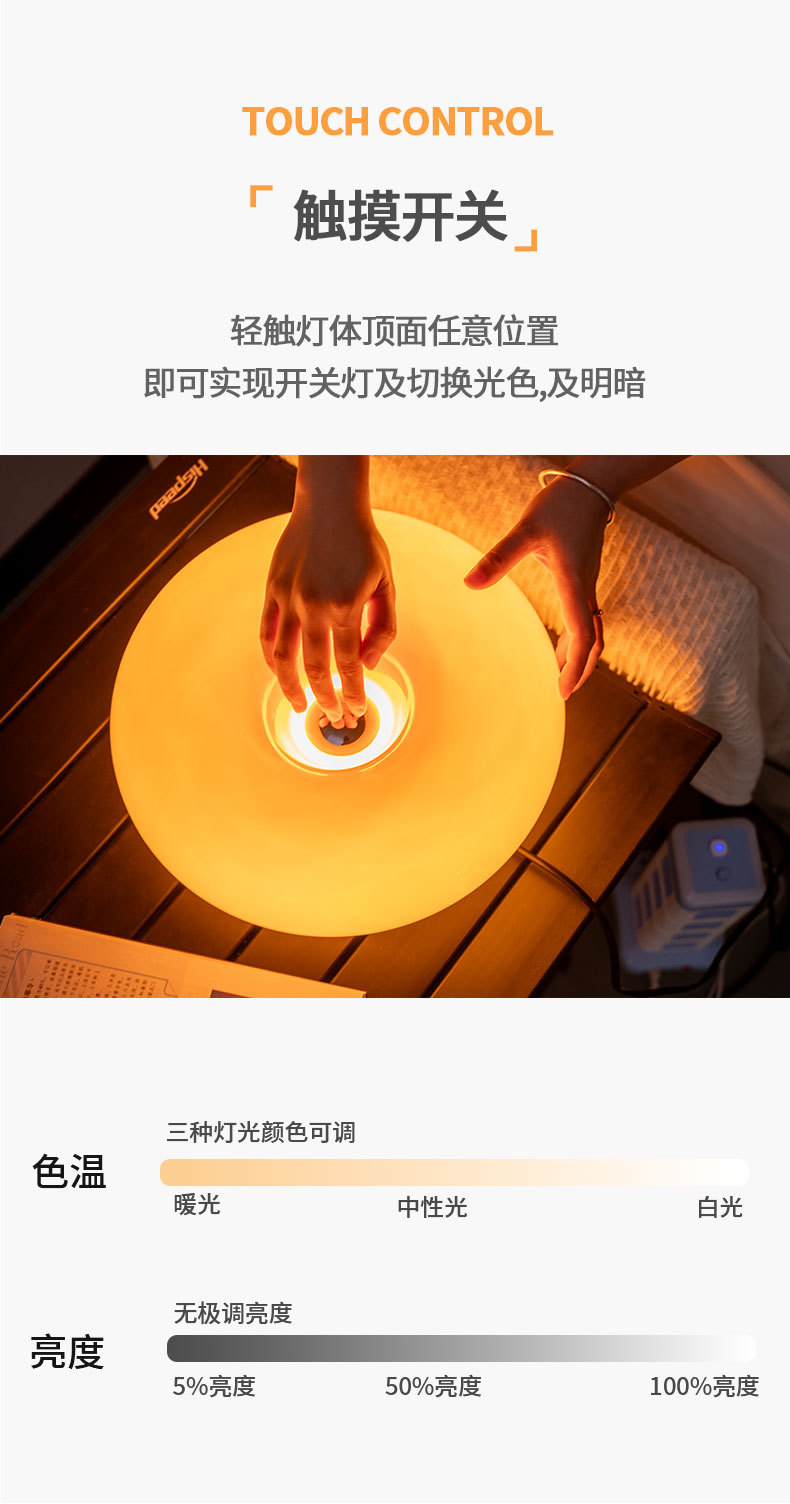 • 화이트 + 버튼 스위치 + 터치식 3색 조명 (벽등으로도 사용 가능)
