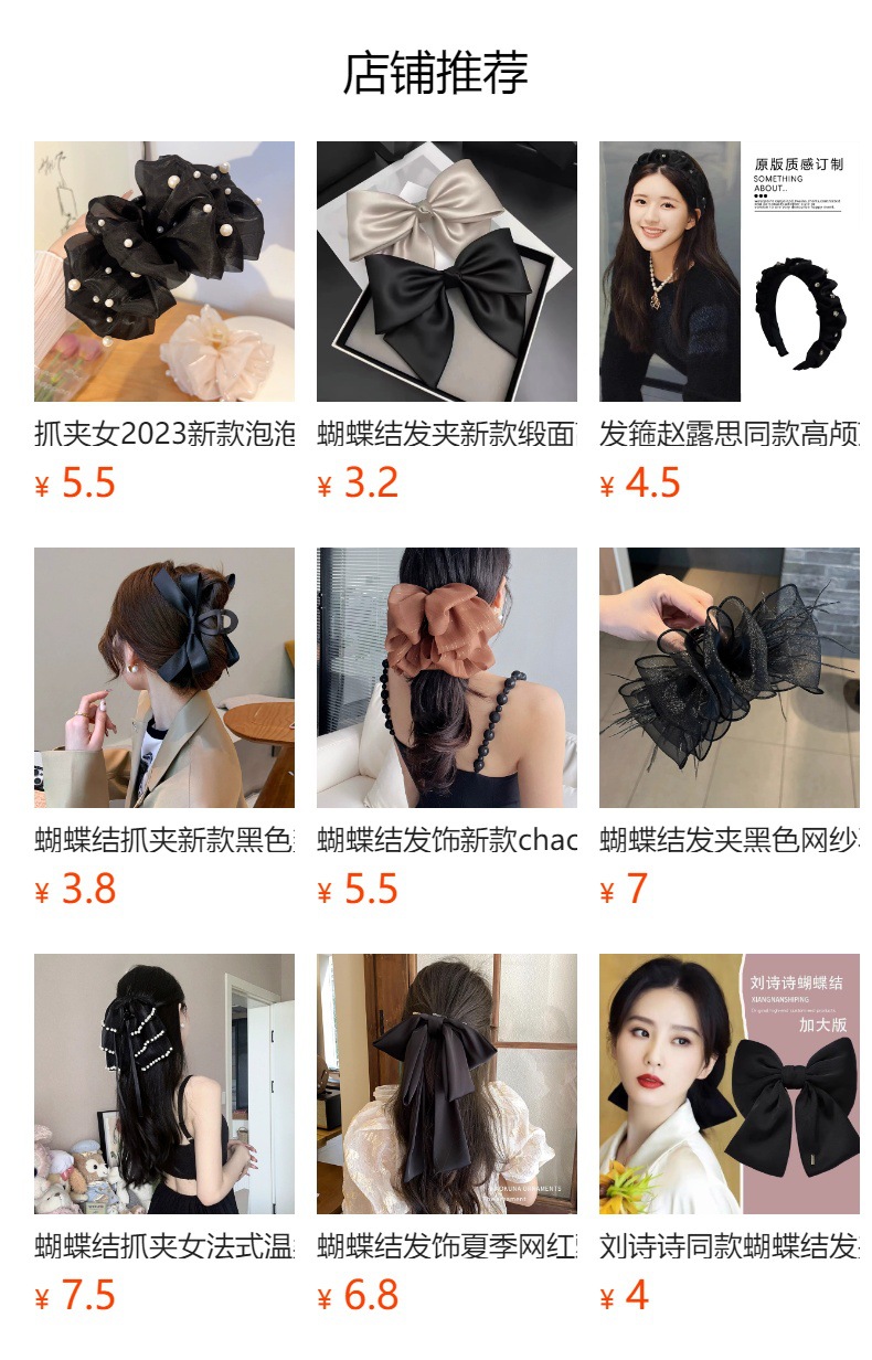 보우 그랩 클립 새로운 스타일 우아한 새틴 모자 높은 감각 블랙 백 헤드 상어 클립 헤어 그랩 클립 여성스토어 가기