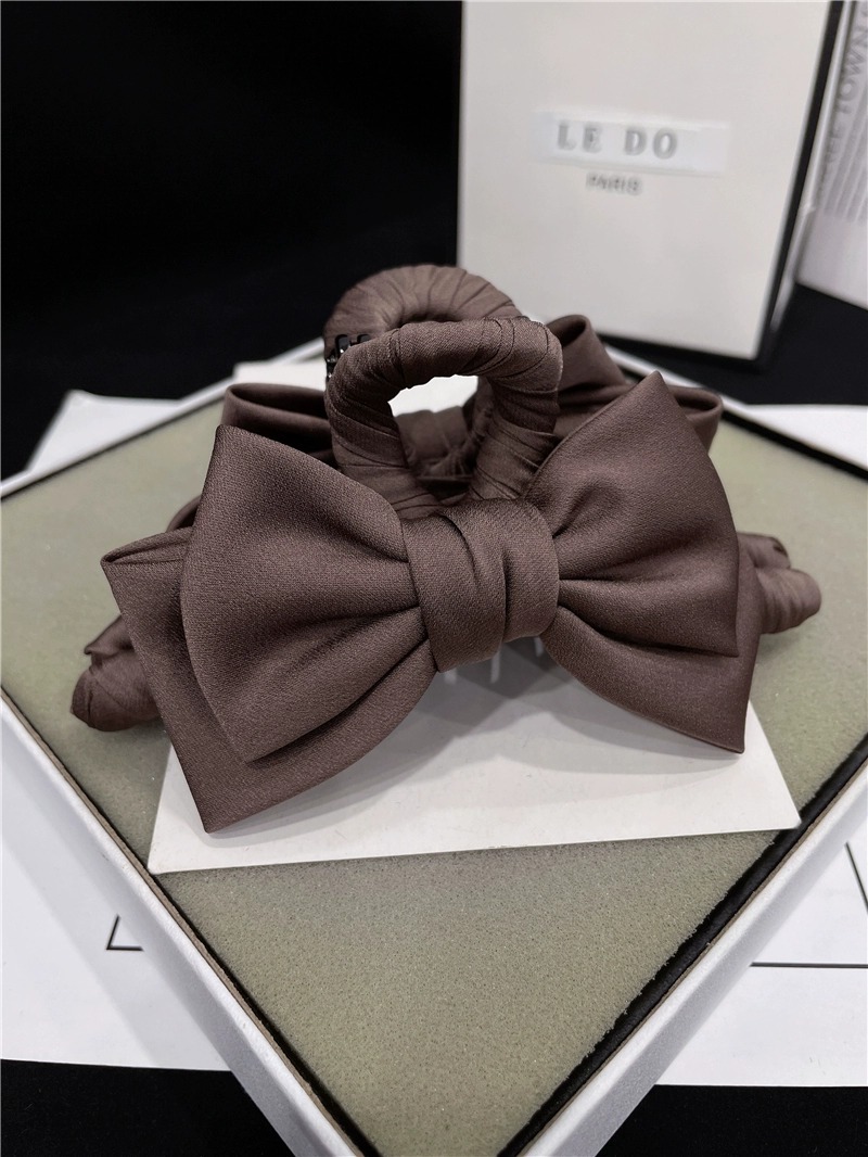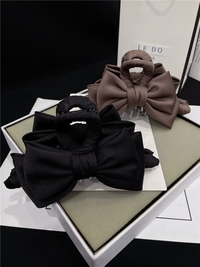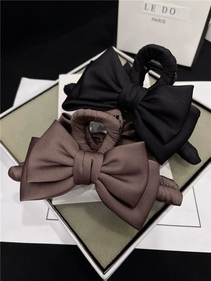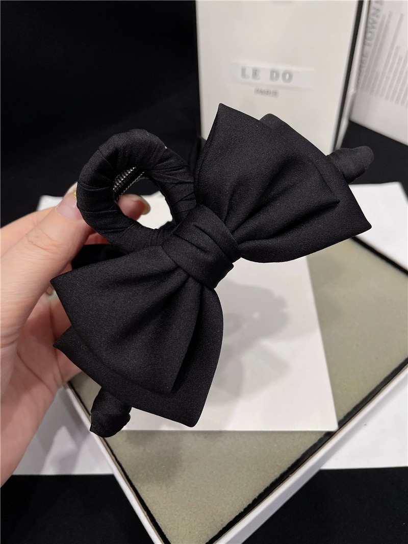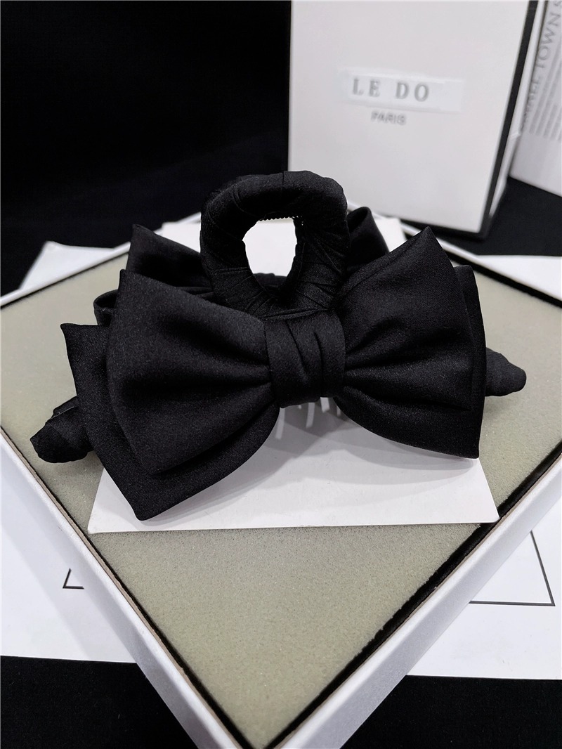 보우 그랩 클립 새로운 스타일 우아한 새틴 모자 높은 감각 블랙 백 헤드 상어 클립 헤어 그랩 클립 여성