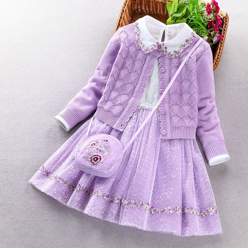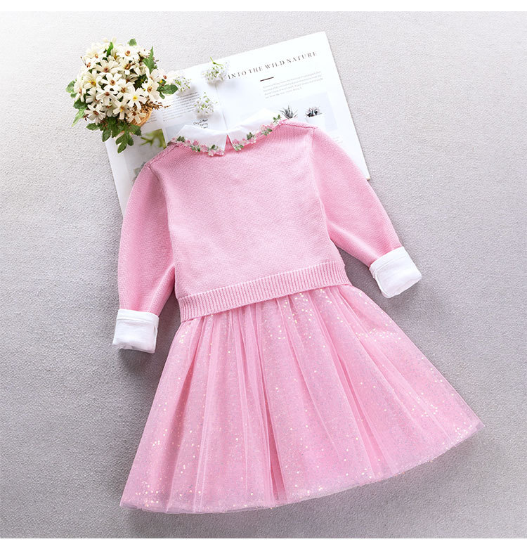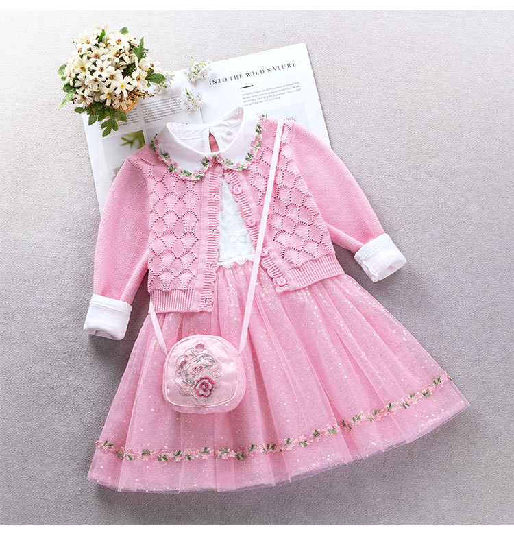 소녀 가을 2023 새로운 어린이 니트 스웨터 세트 소녀 유행 서양 스타일 공주 원피스 2 종 세트 봄과 가을스토어 가기