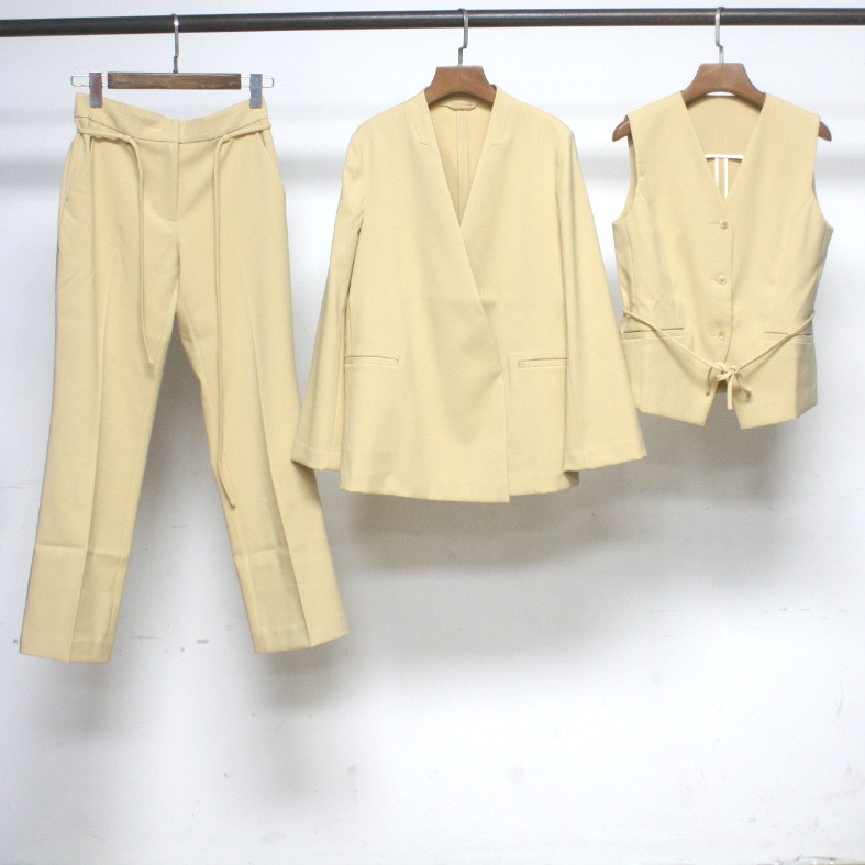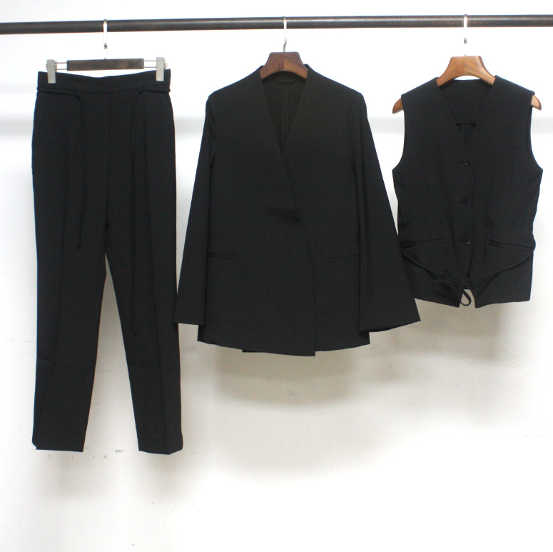 2023IC Fanjia 가을 새로운 레이스 업 칼라리스 세트 재킷 바지 조끼 높은 감각 우아한 쓰리 피스 세트