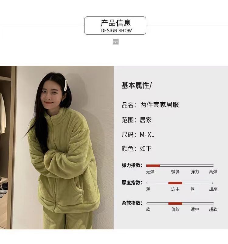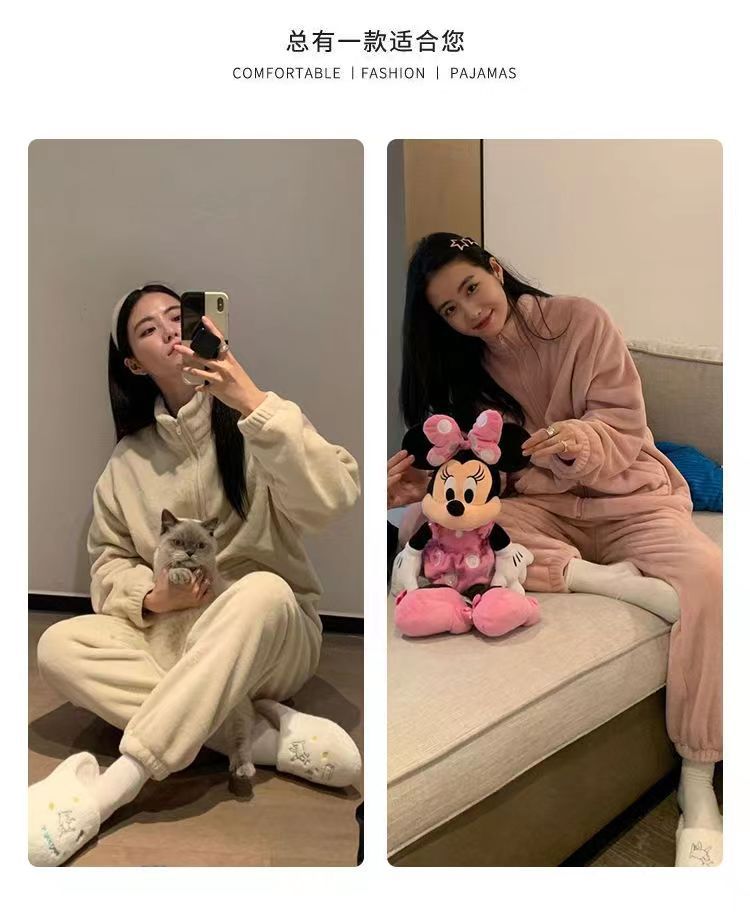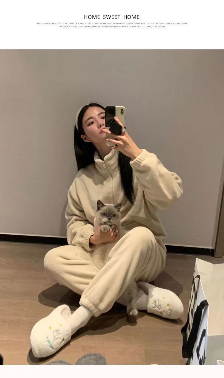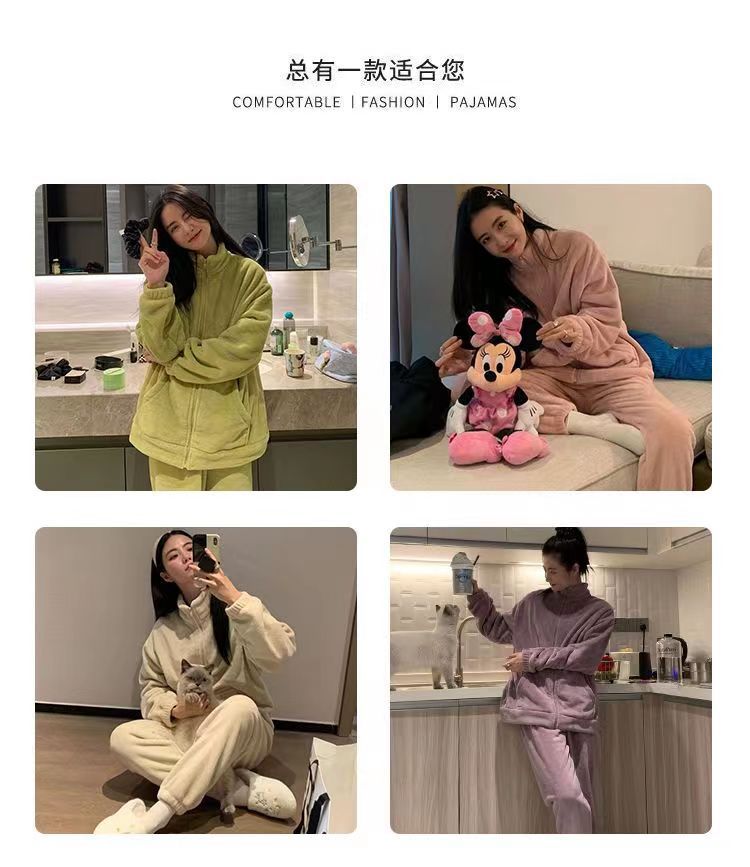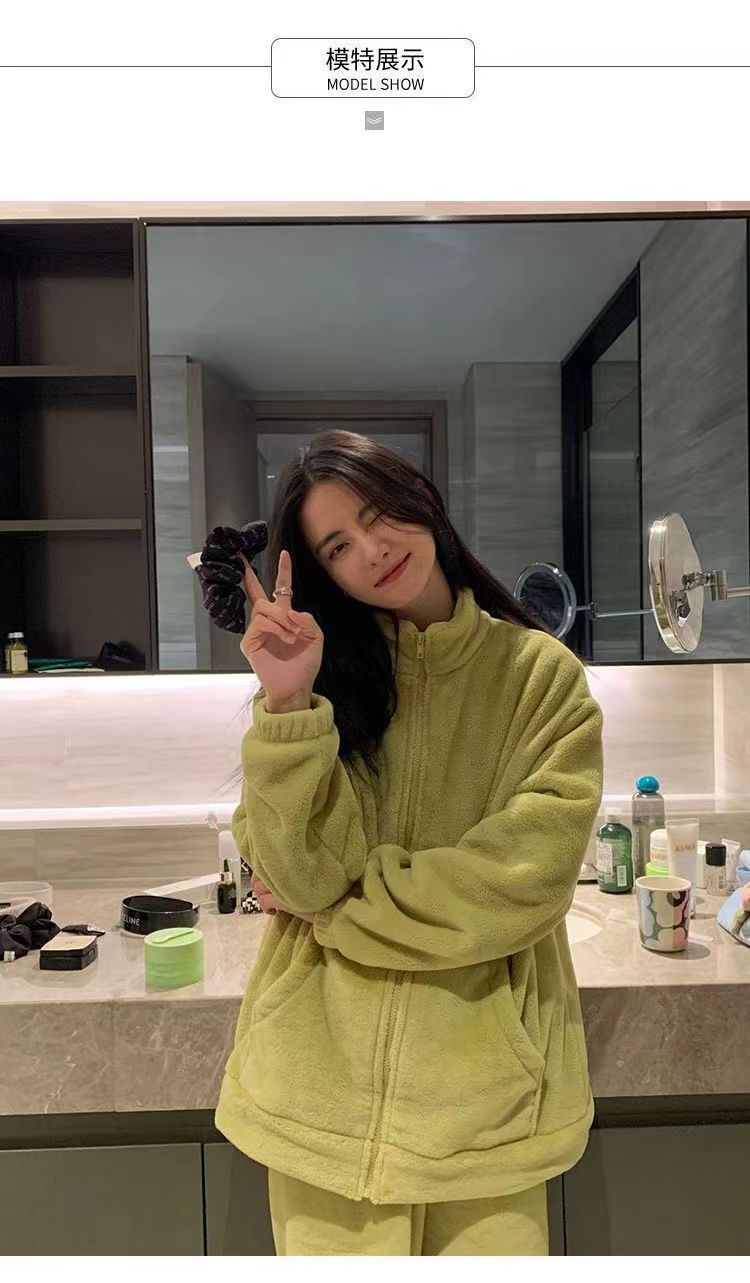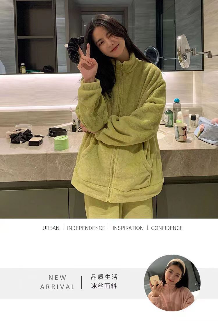 플란넬 파자마 여성의 가을과 겨울 기모 두꺼운 캐주얼 지퍼 세트 한국식 커플은 야외 홈웨어를 입을 수 있습니다스토어 가기
