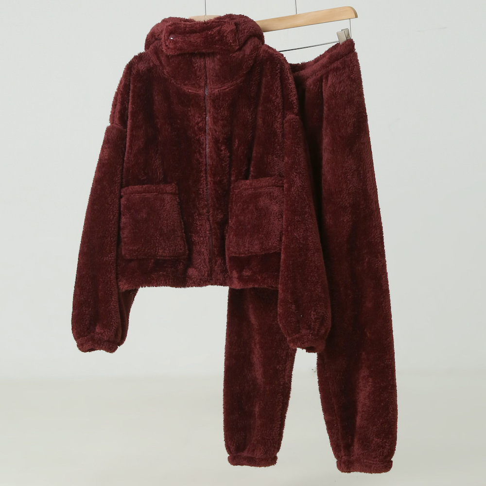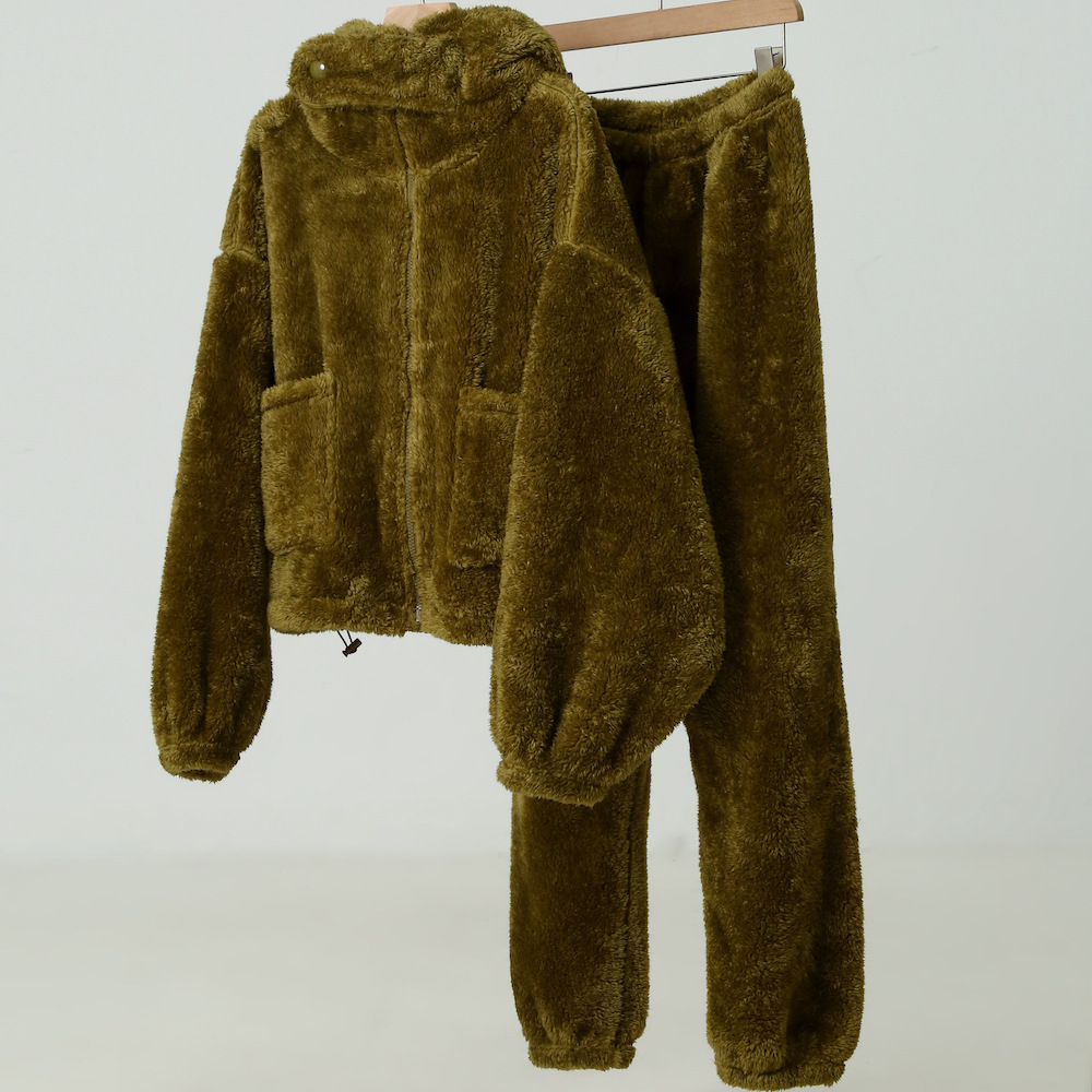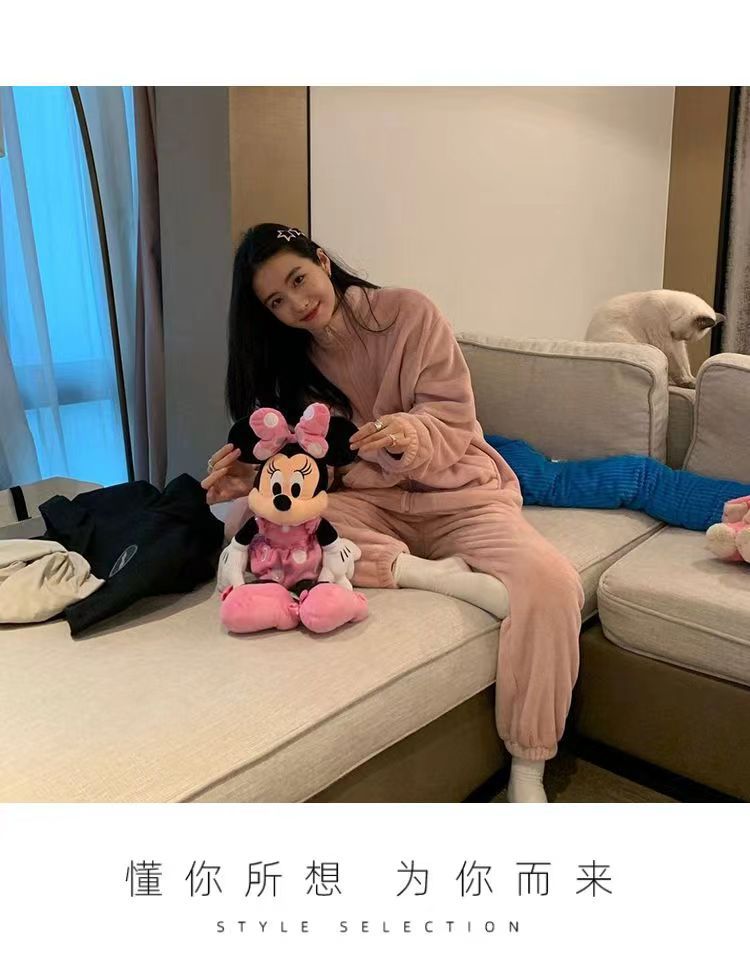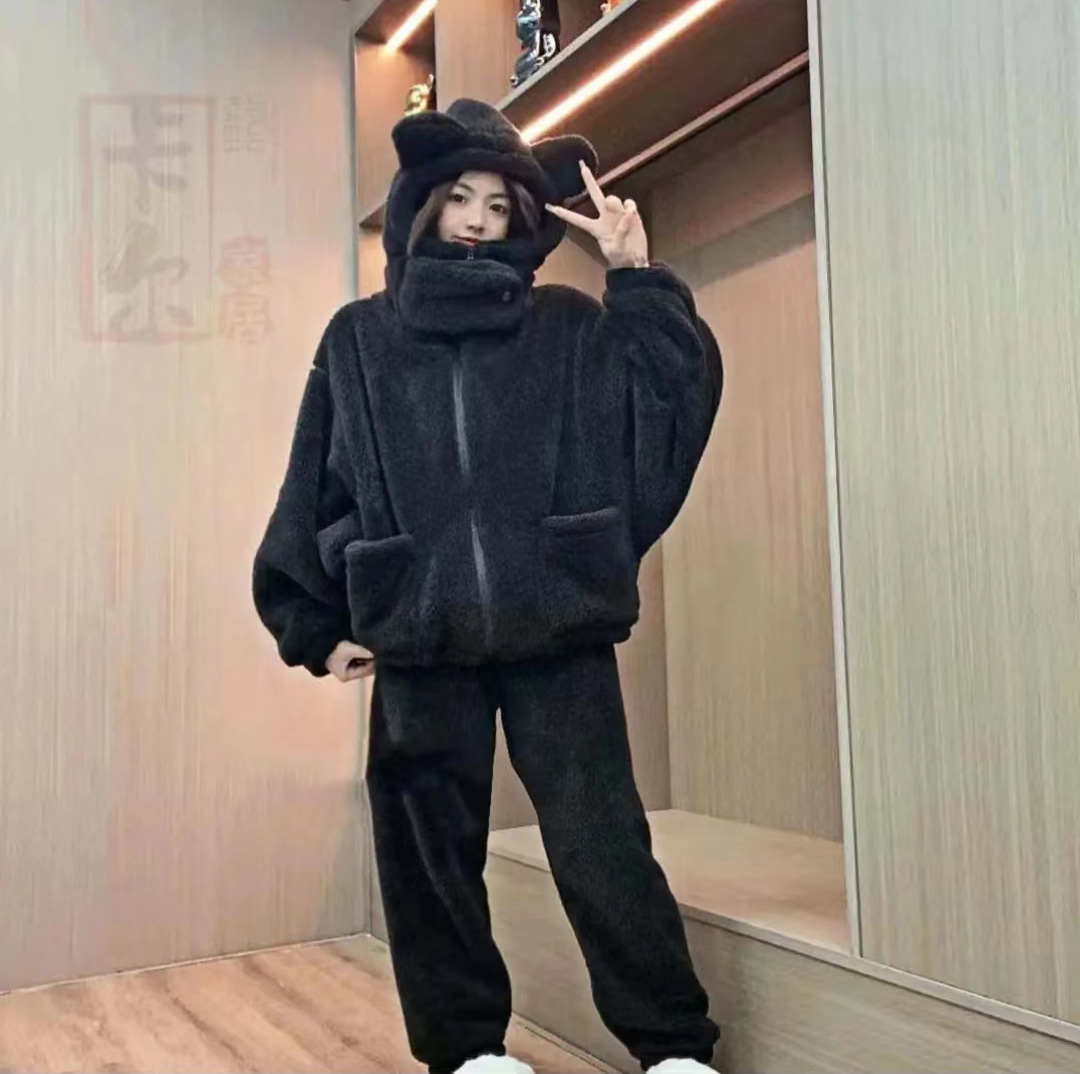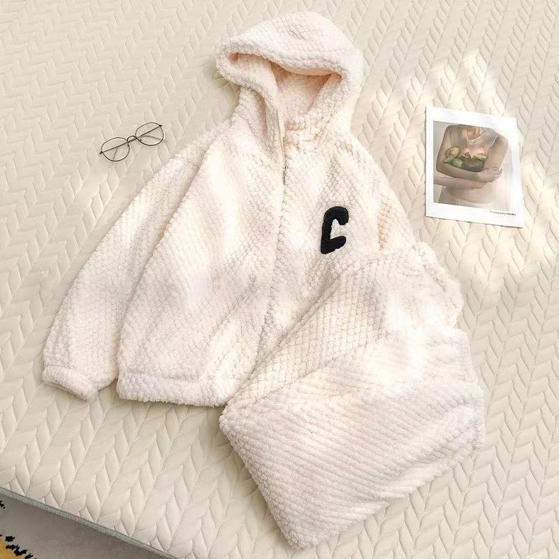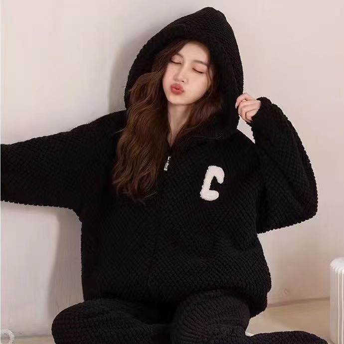 플란넬 파자마 여성의 가을과 겨울 기모 두꺼운 캐주얼 지퍼 세트 한국식 커플은 야외 홈웨어를 입을 수 있습니다스토어 가기