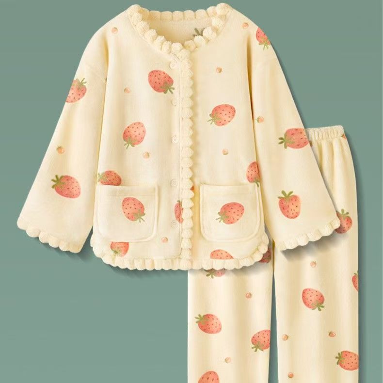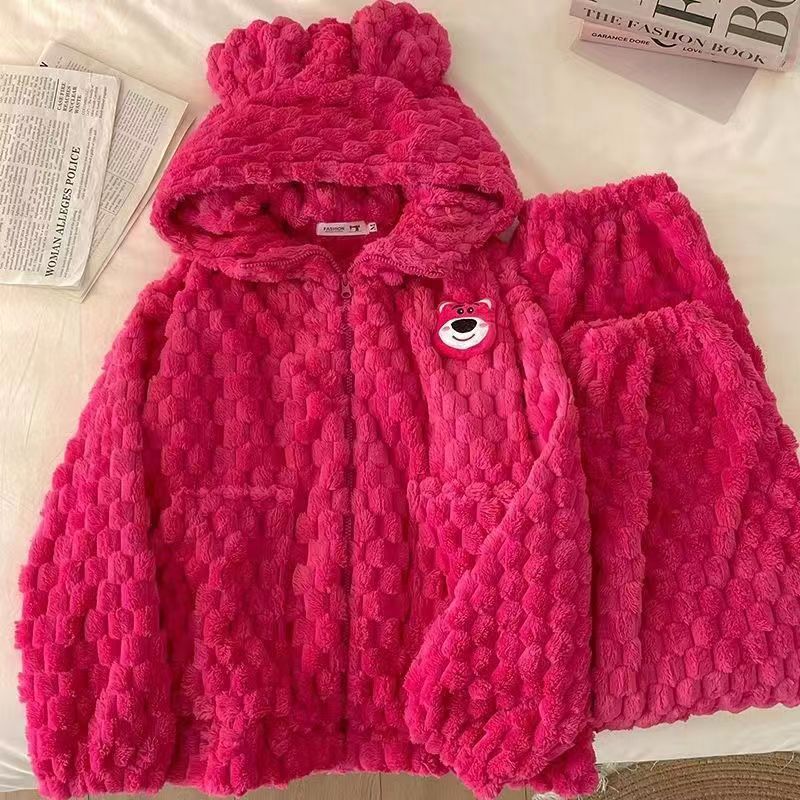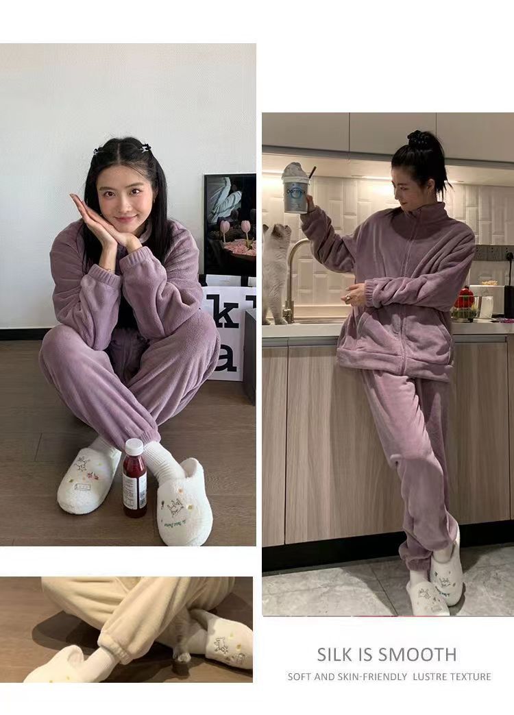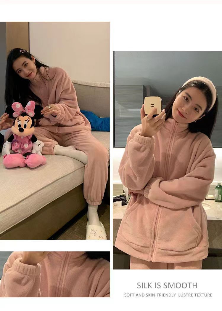 플란넬 파자마 여성의 가을과 겨울 기모 두꺼운 캐주얼 지퍼 세트 한국식 커플은 야외 홈웨어를 입을 수 있습니다