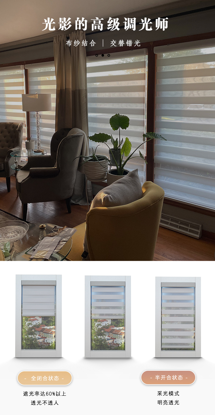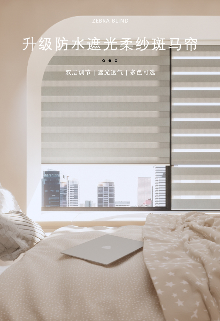 추이 워터 커튼 한국식 부드러운 거즈 커튼 사무실 거실 차양 방수 차양 무선 리프팅 디밍 얼룩말 커튼 롤러 셔터