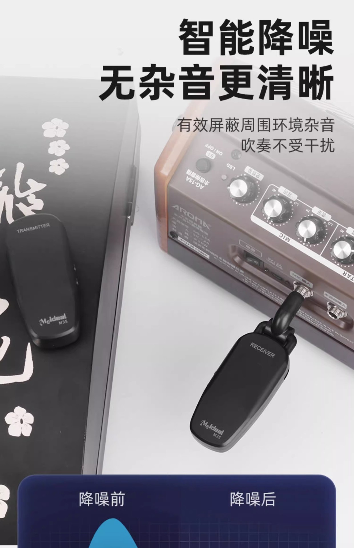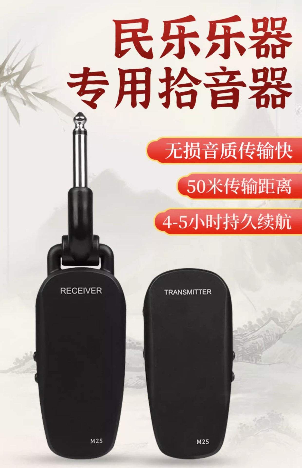 M25 guzheng guqin 무선 픽업 erhu 전송 및 수신 50 m 전송 민속 음악 악기 범용 스피커스토어 가기