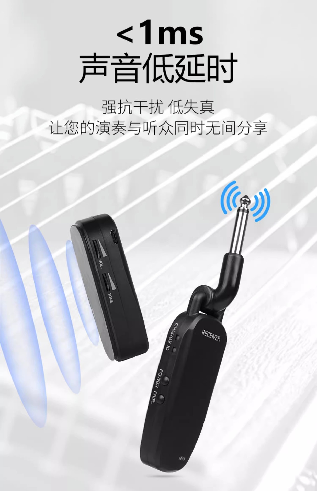 M25 guzheng guqin 무선 픽업 erhu 전송 및 수신 50 m 전송 민속 음악 악기 범용 스피커