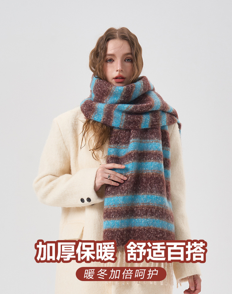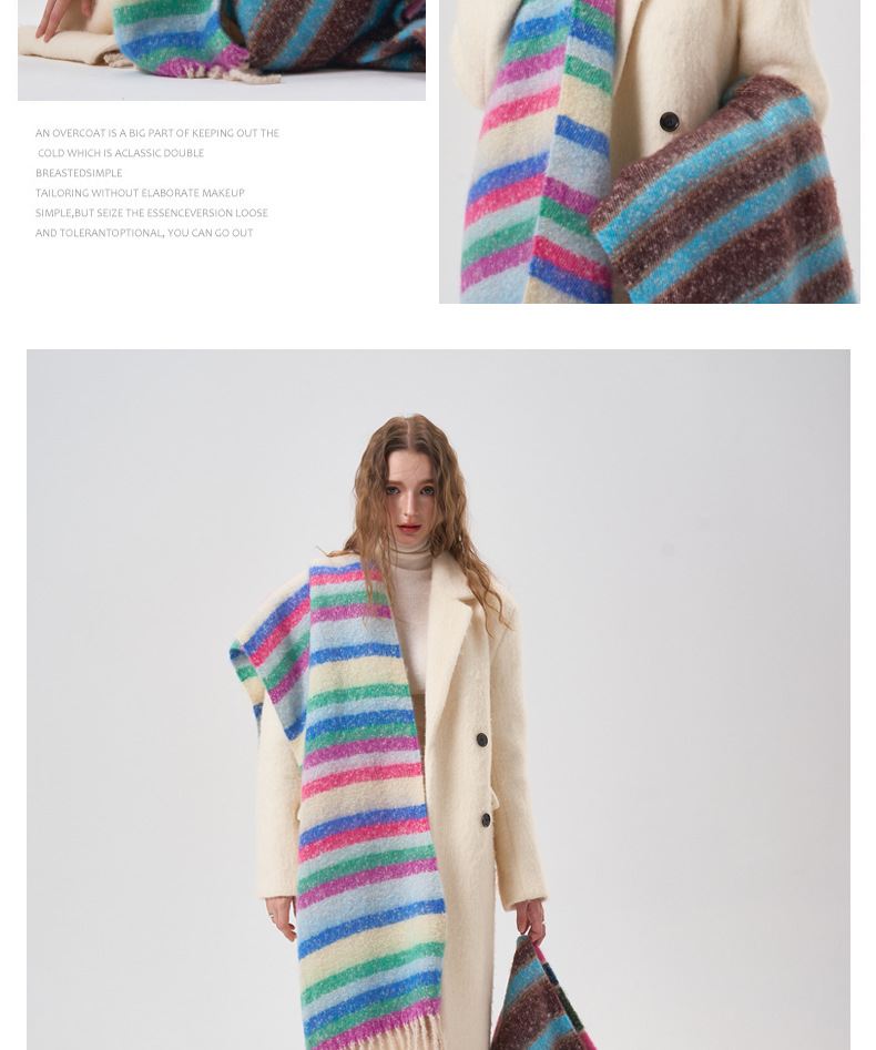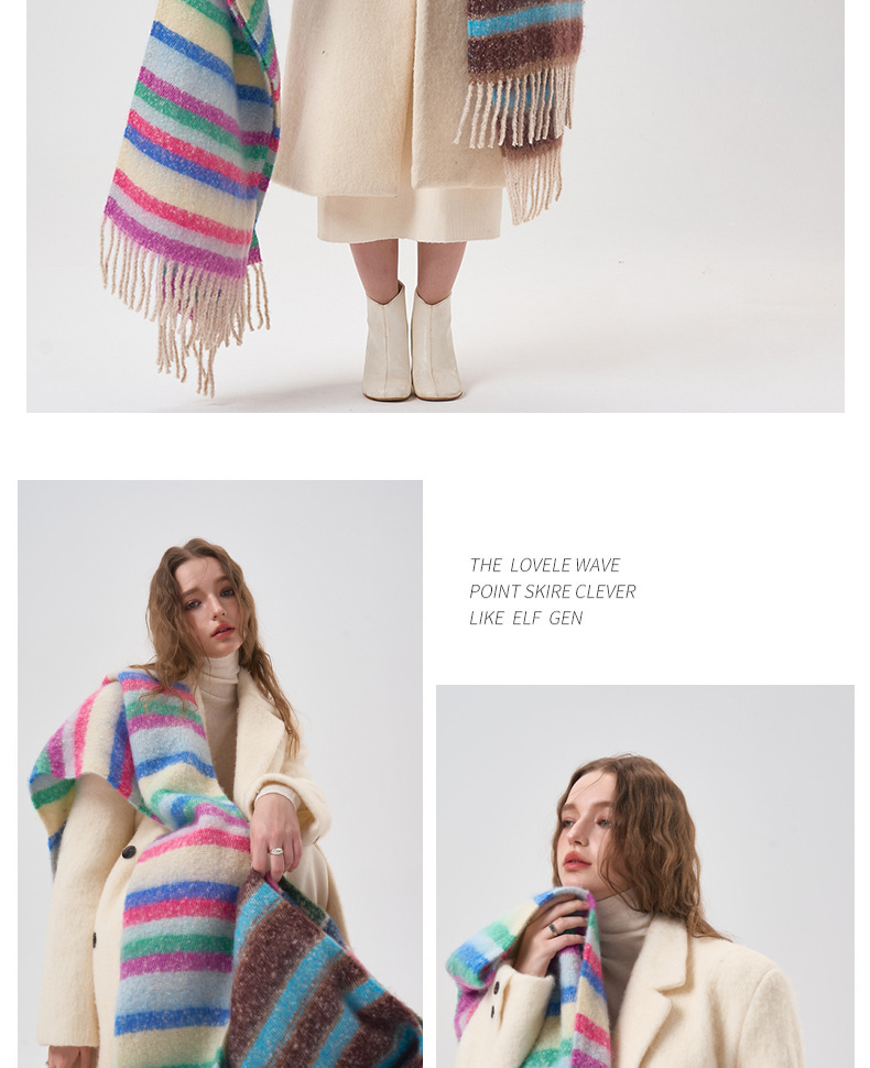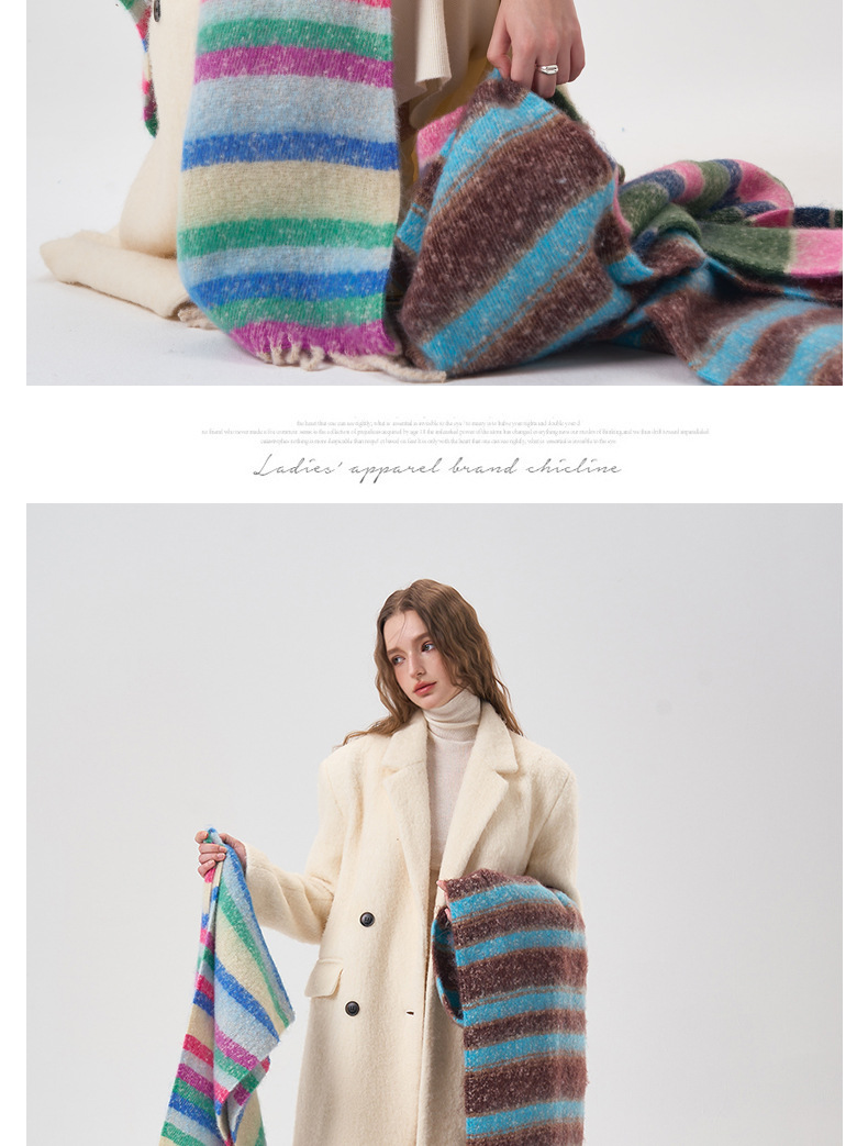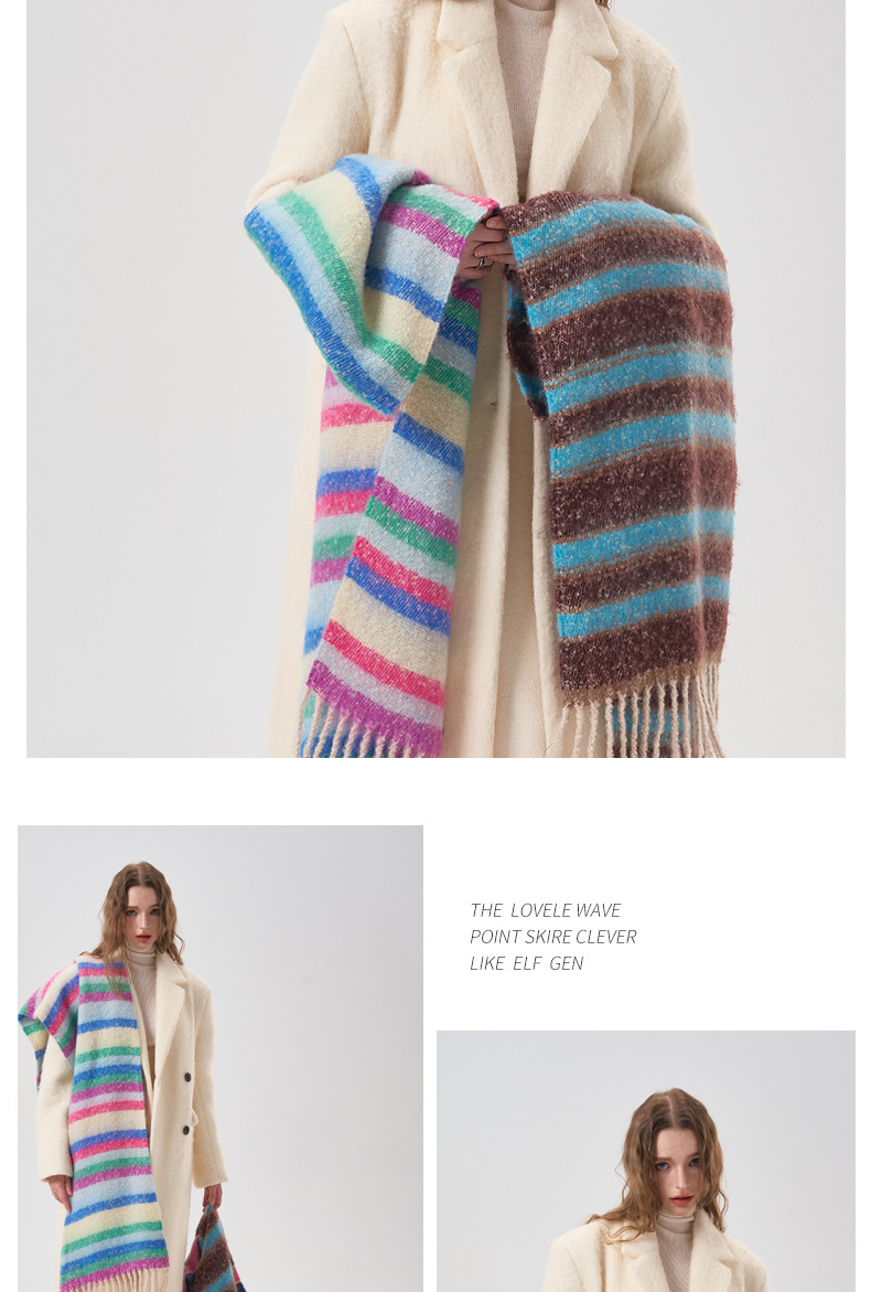 한국식 레인보우 컬러 매칭 스트라이프 소프트 스카프 가을과 겨울 만능 분위기 따뜻한 방풍 스카프 두꺼운 숄스토어 가기