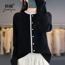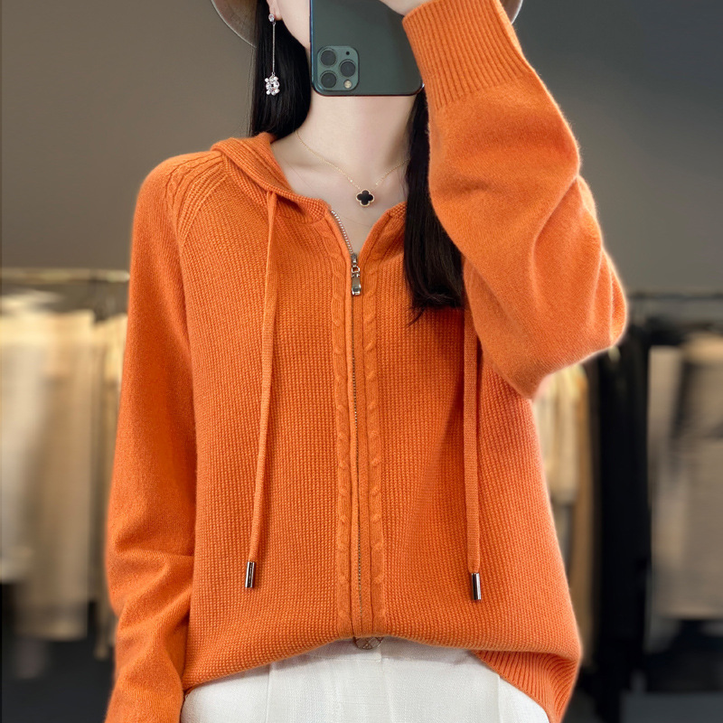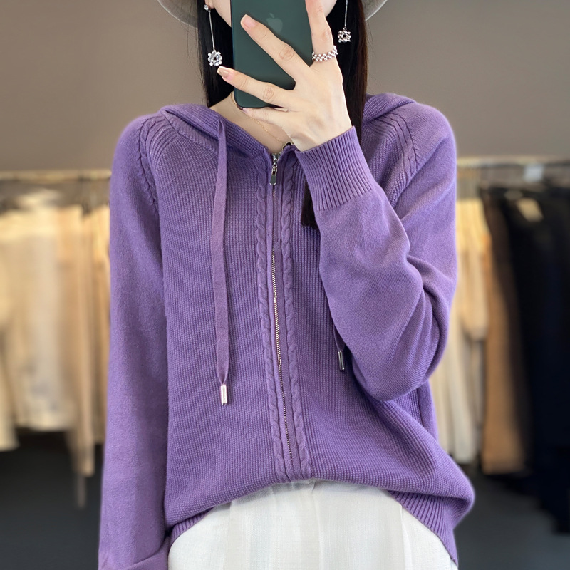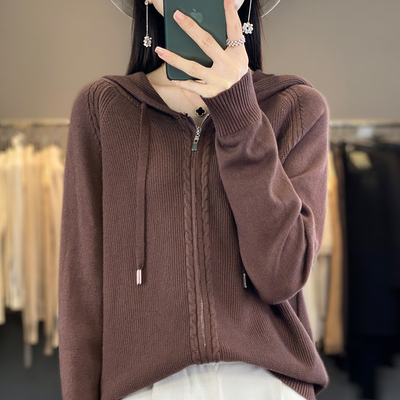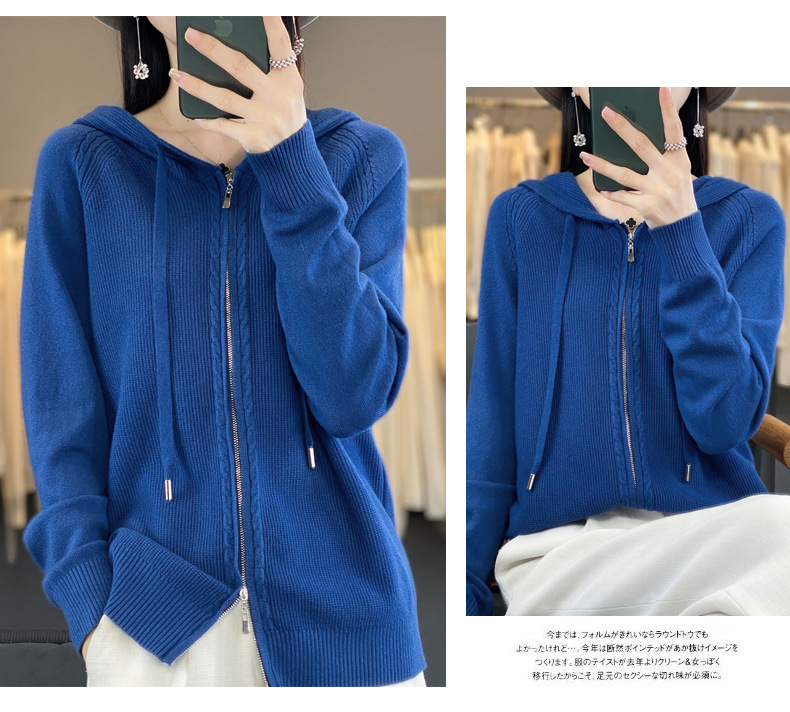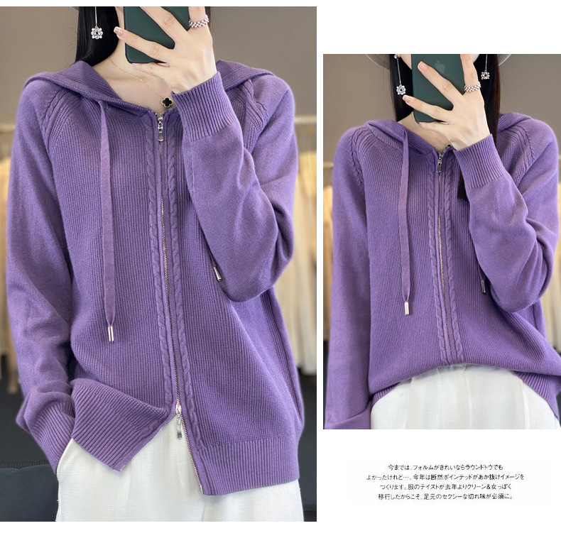 니트 스웨터 카디건 한국 스타일 여성 2024 가을, 겨울 새로운 블렌드 울 까마귀 더블 지퍼 후드 스웨터 자켓