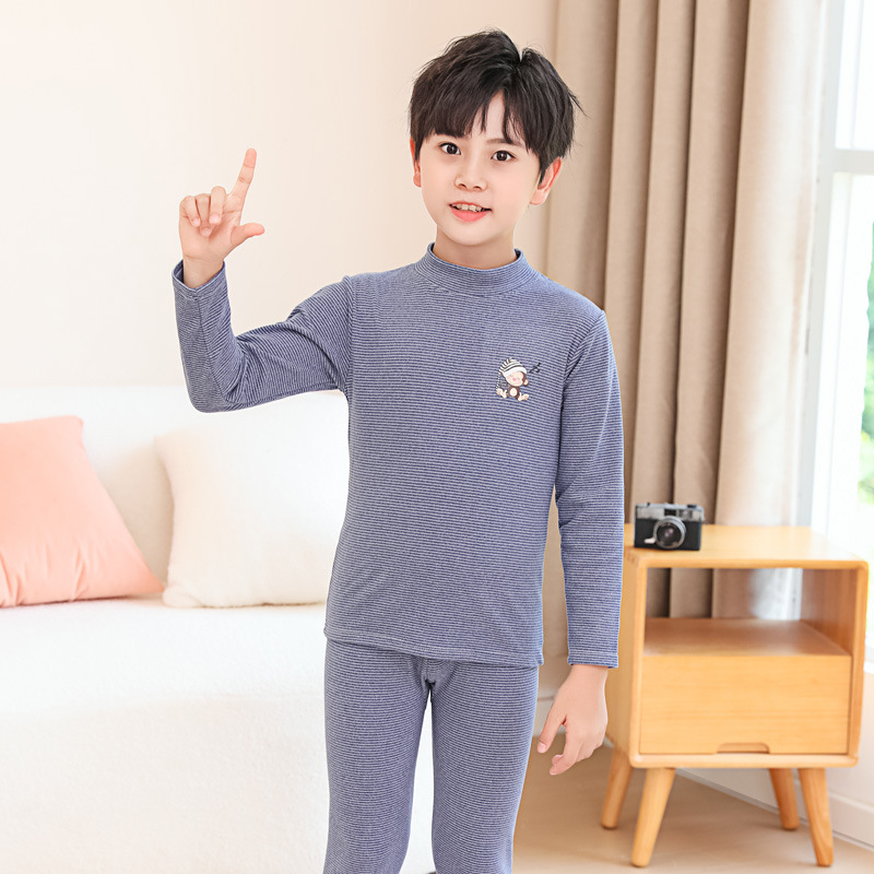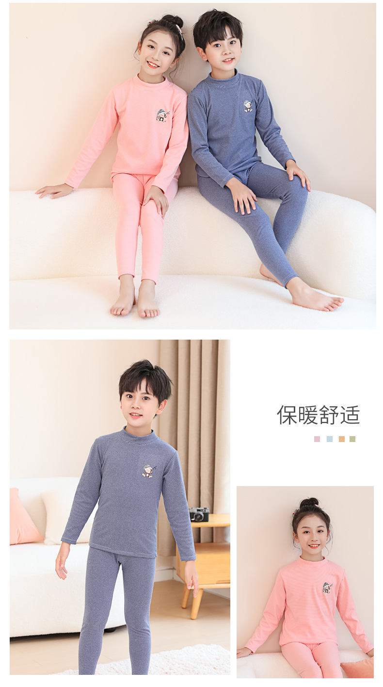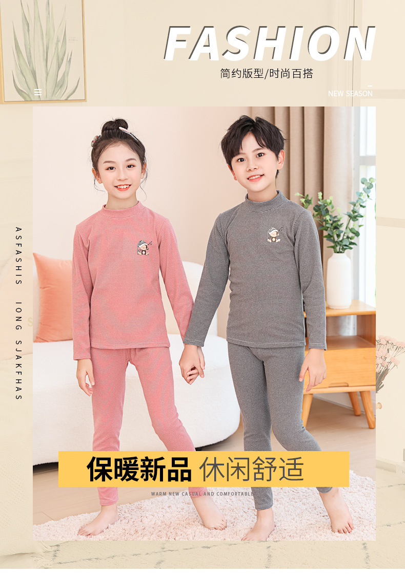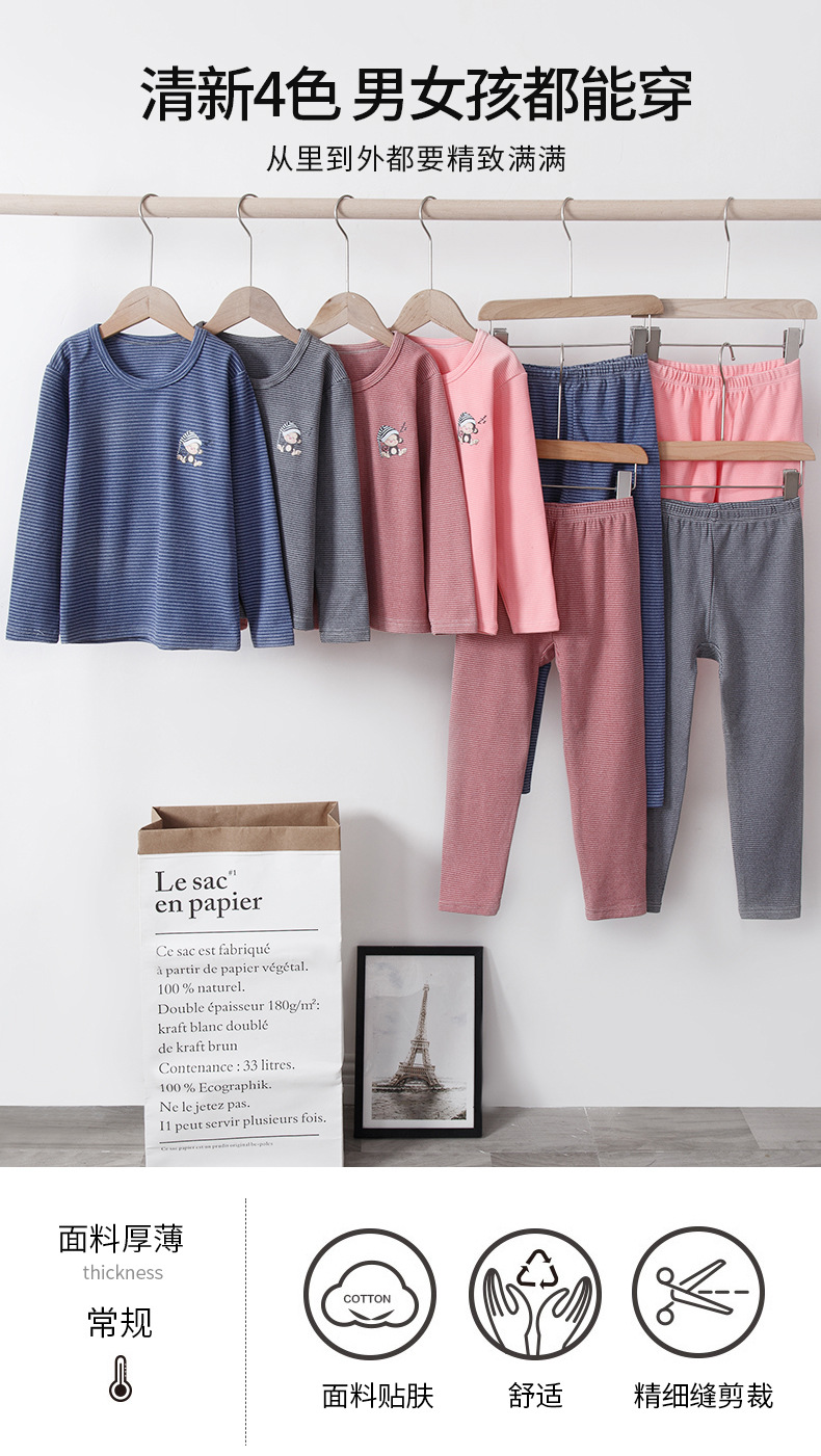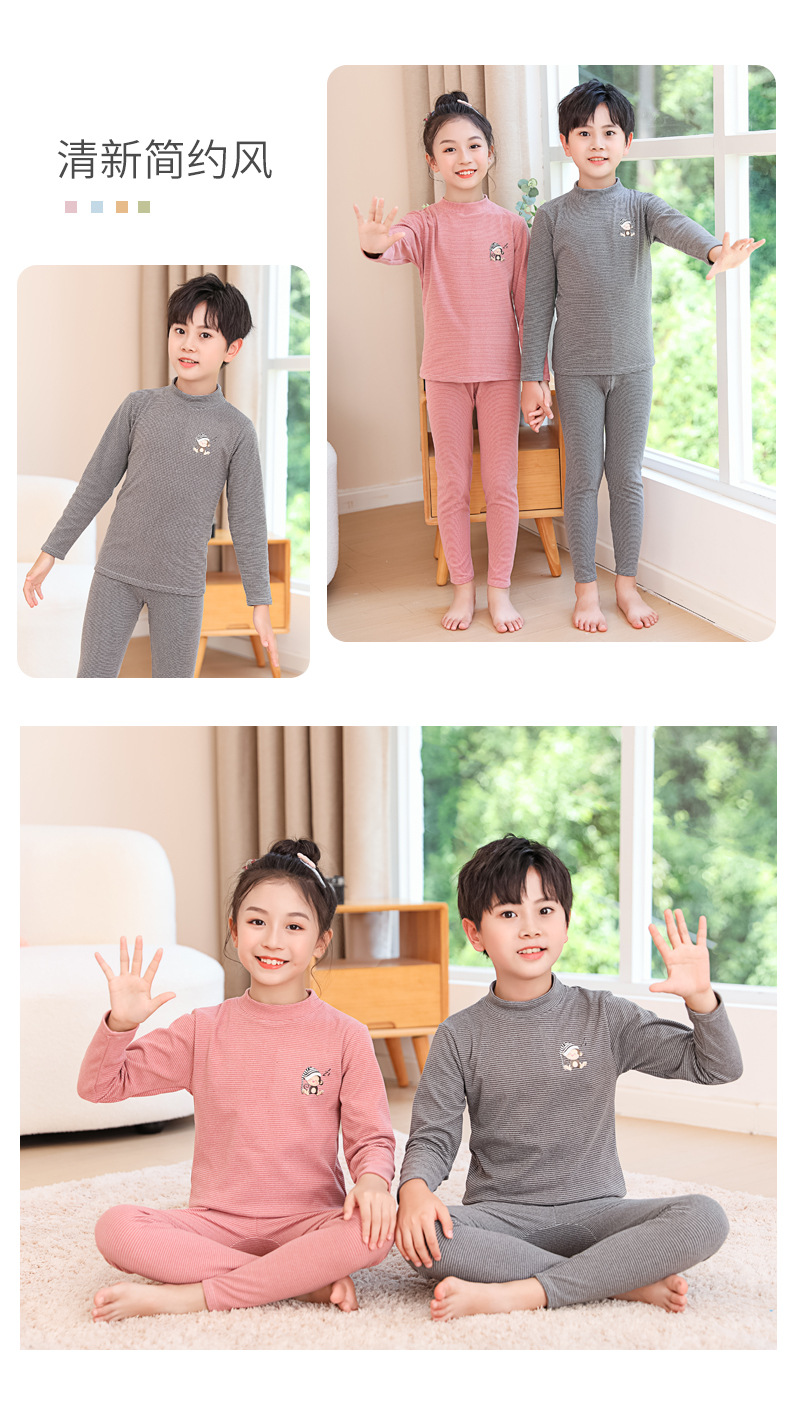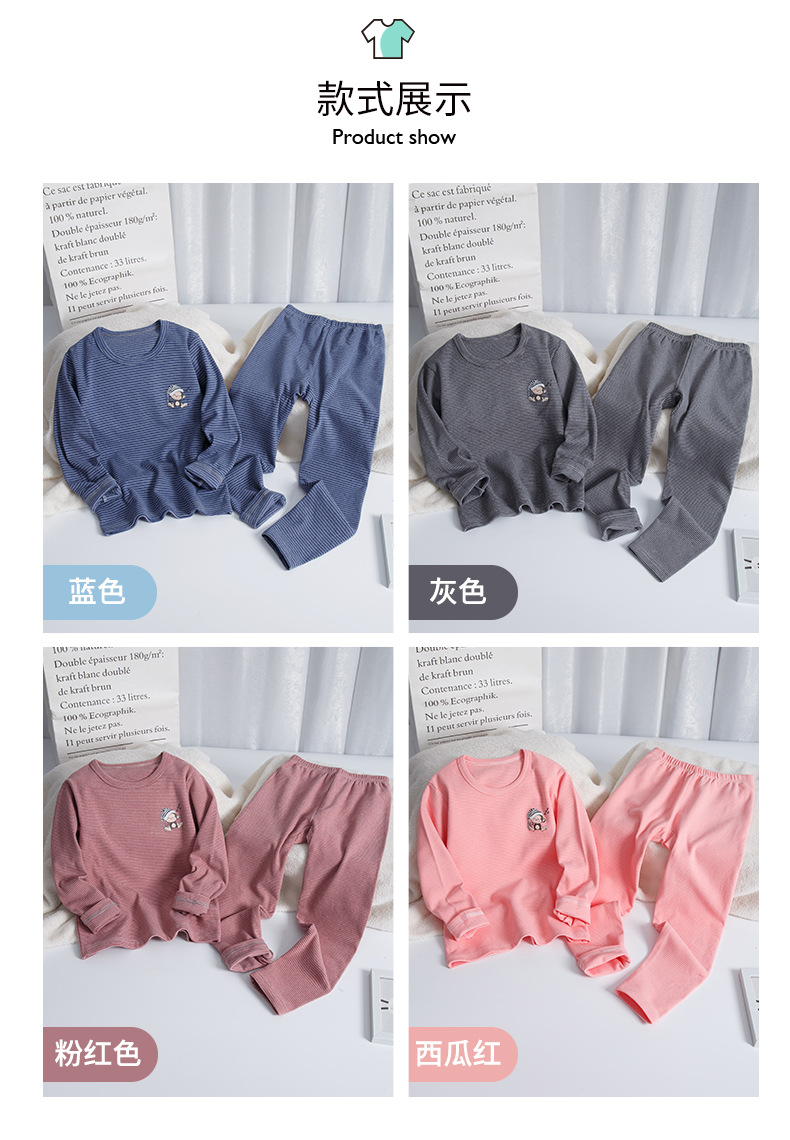 어린이 가을 옷과 바지 세트 중간 칼라 독일 가을과 겨울 샌딩 중간 및 큰 어린이 여성과 남성 스트라이프 벨벳 열 속옷 가정 옷스토어 가기
