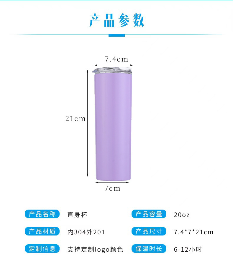 재고 20 온스 승화 진공 2 층 보온병 컵 304 스테인리스 휴대용 자동차 빨대 스트레이트 컵 슬리밍 컵