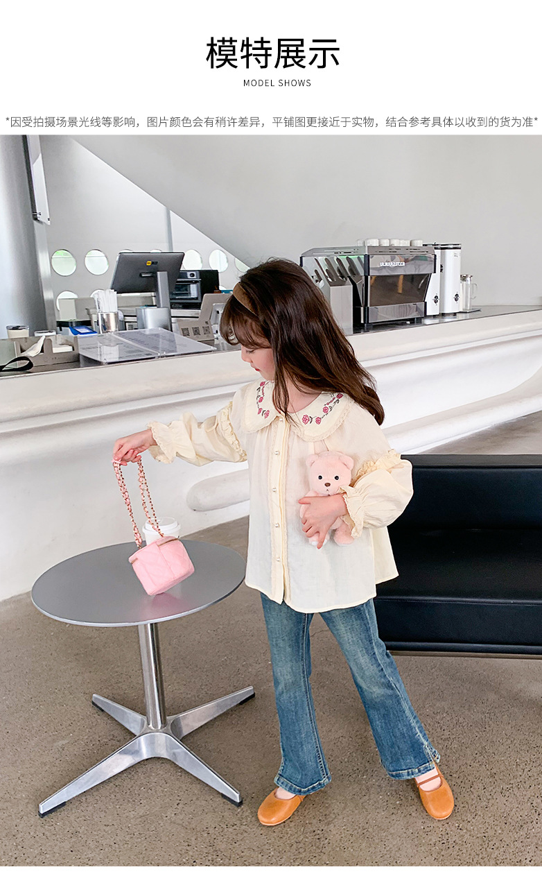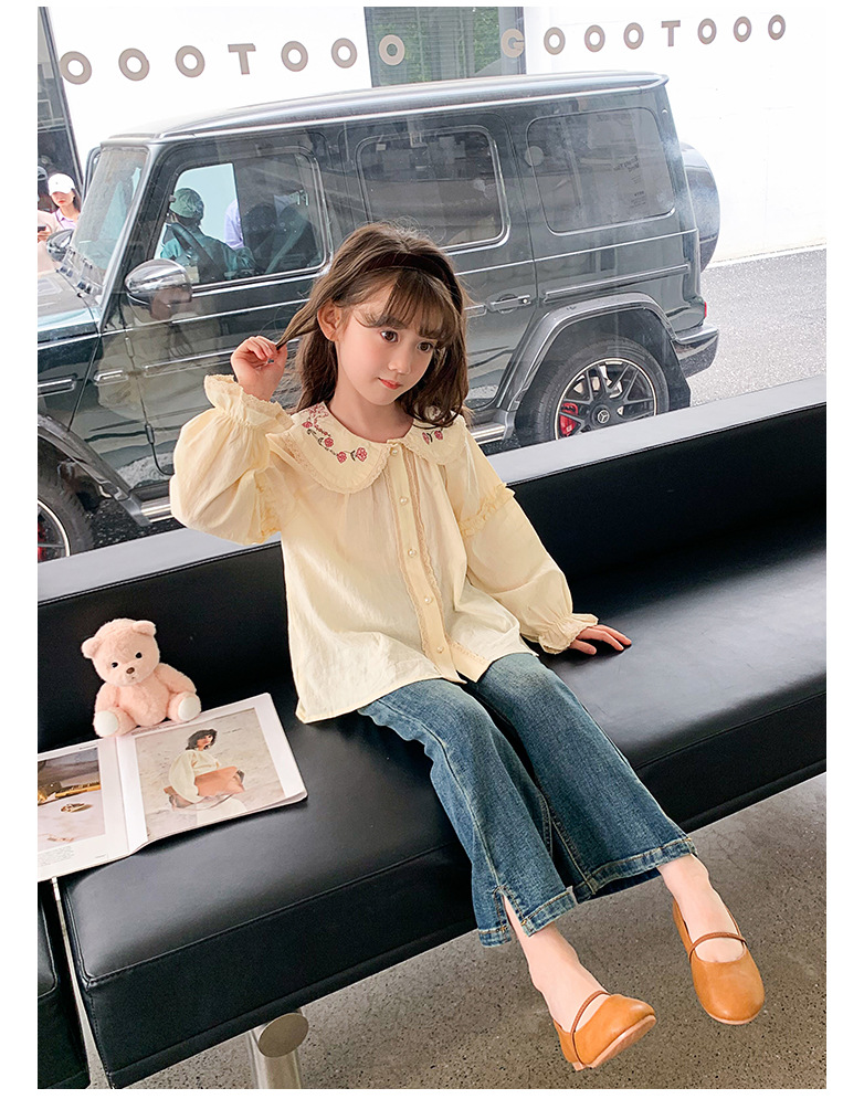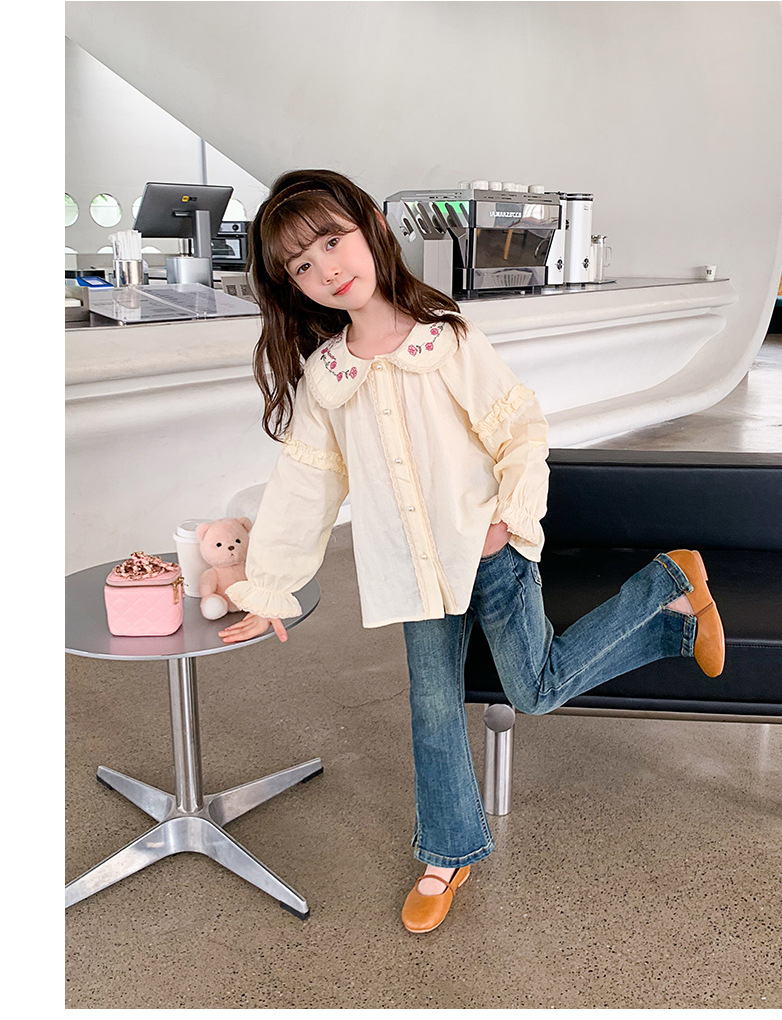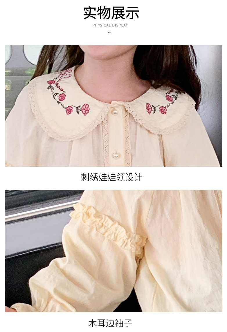 2025 가을 의류 소녀 새 면화 셔츠 한국 스타일 인형 칼라 유행 학생 소녀 달콤한 긴팔 탑 유행