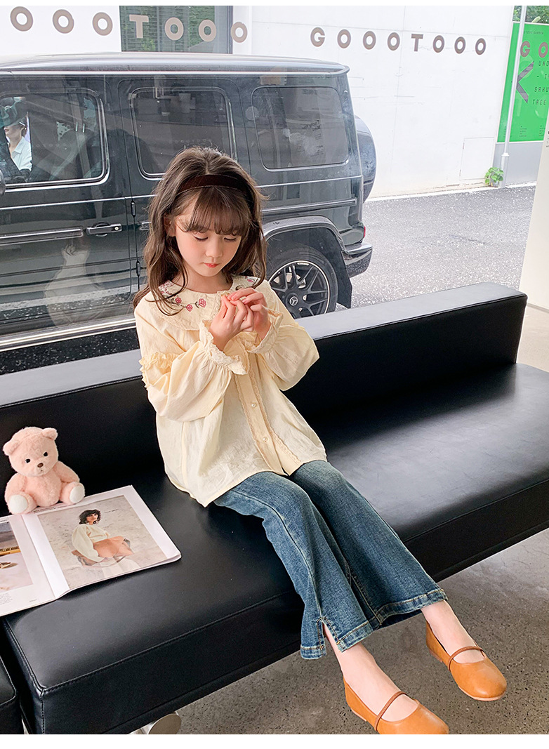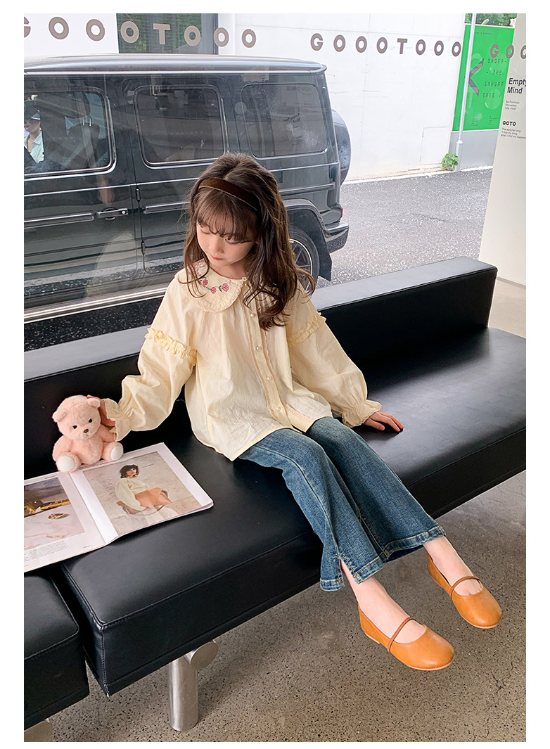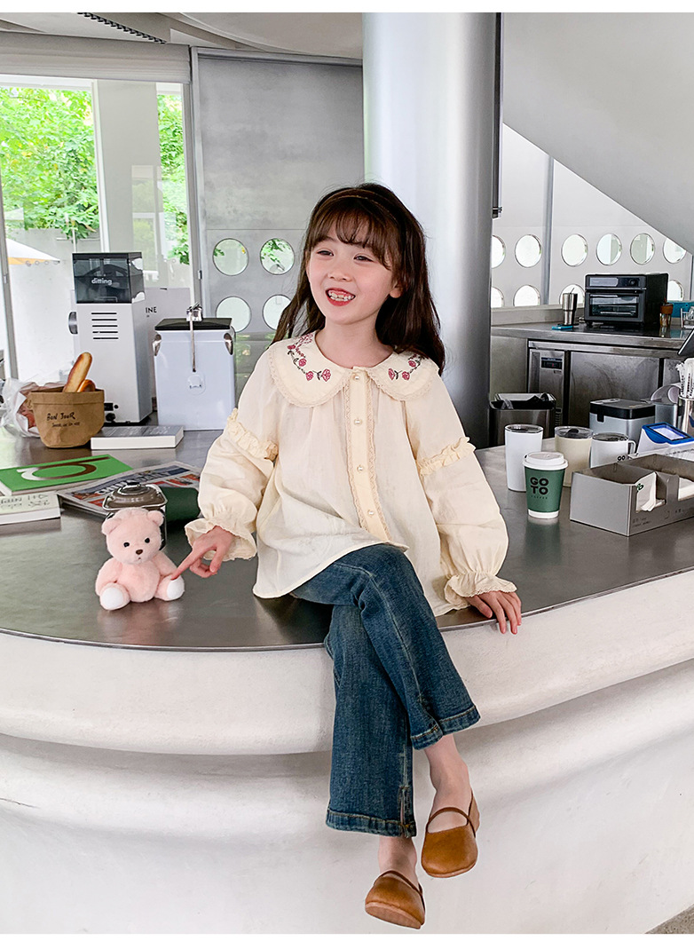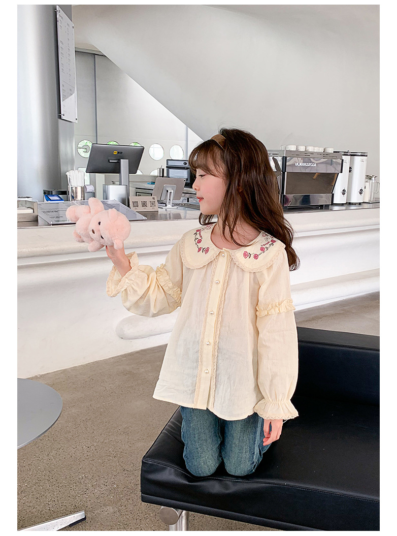 2025 가을 의류 소녀 새 면화 셔츠 한국 스타일 인형 칼라 유행 학생 소녀 달콤한 긴팔 탑 유행스토어 가기