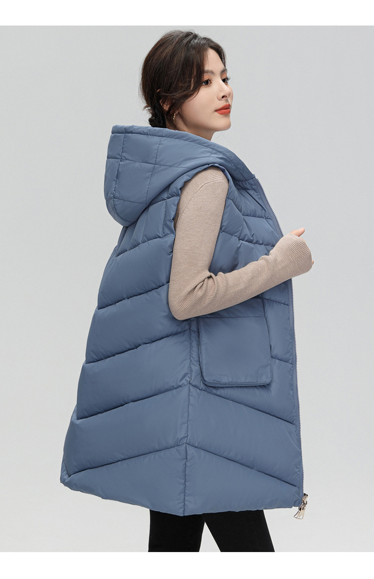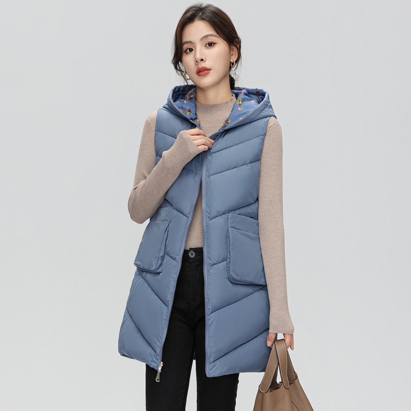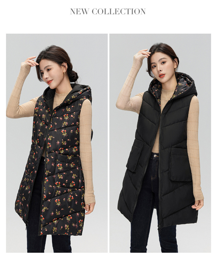 여성용 양면 착용 후드 면 조끼 따뜻한 가을과 겨울 2023 새로운 한국어 버전 두꺼운 슬림 핏 조끼 양면 착용 재킷스토어 가기