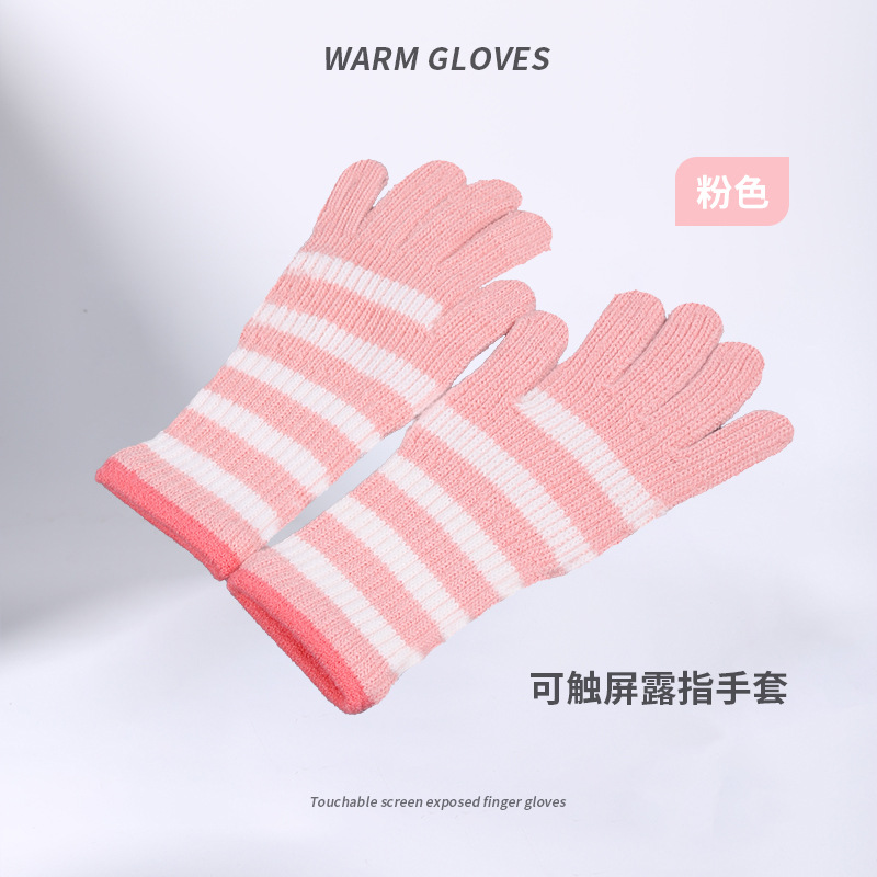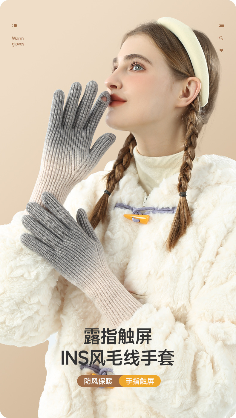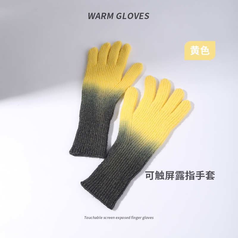 니트 장갑 여성용 겨울 오픈 핑거 터치 스크린 그라데이션 울 장갑 따뜻한 방한 두꺼운 겨울 승마 장갑