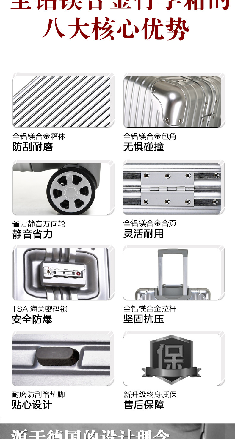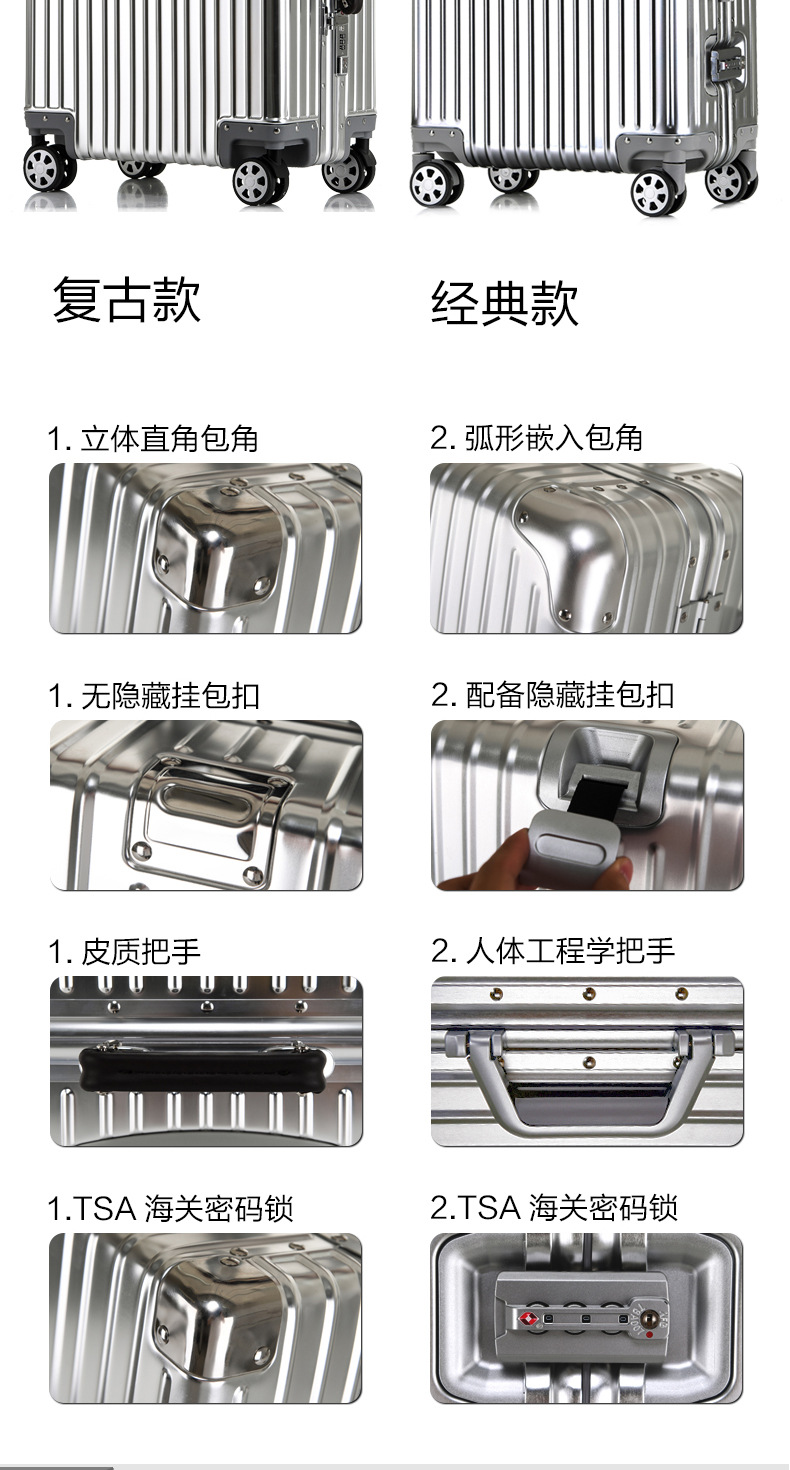 알루미늄-마그네슘 합금 여행가방 20인치 기내용 캐리어 비밀번호 잠금식 트롤리 캐리어 360도 회전 바퀴 트래블 캐리어 28인치 견고하고 내구성 있음스토어 가기