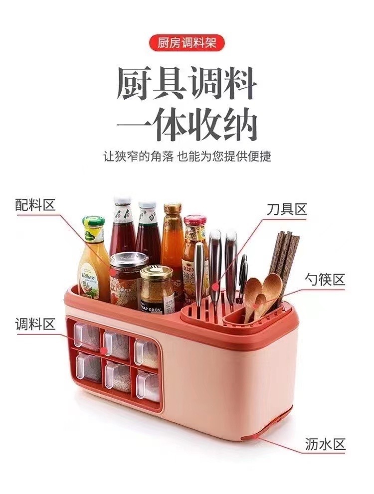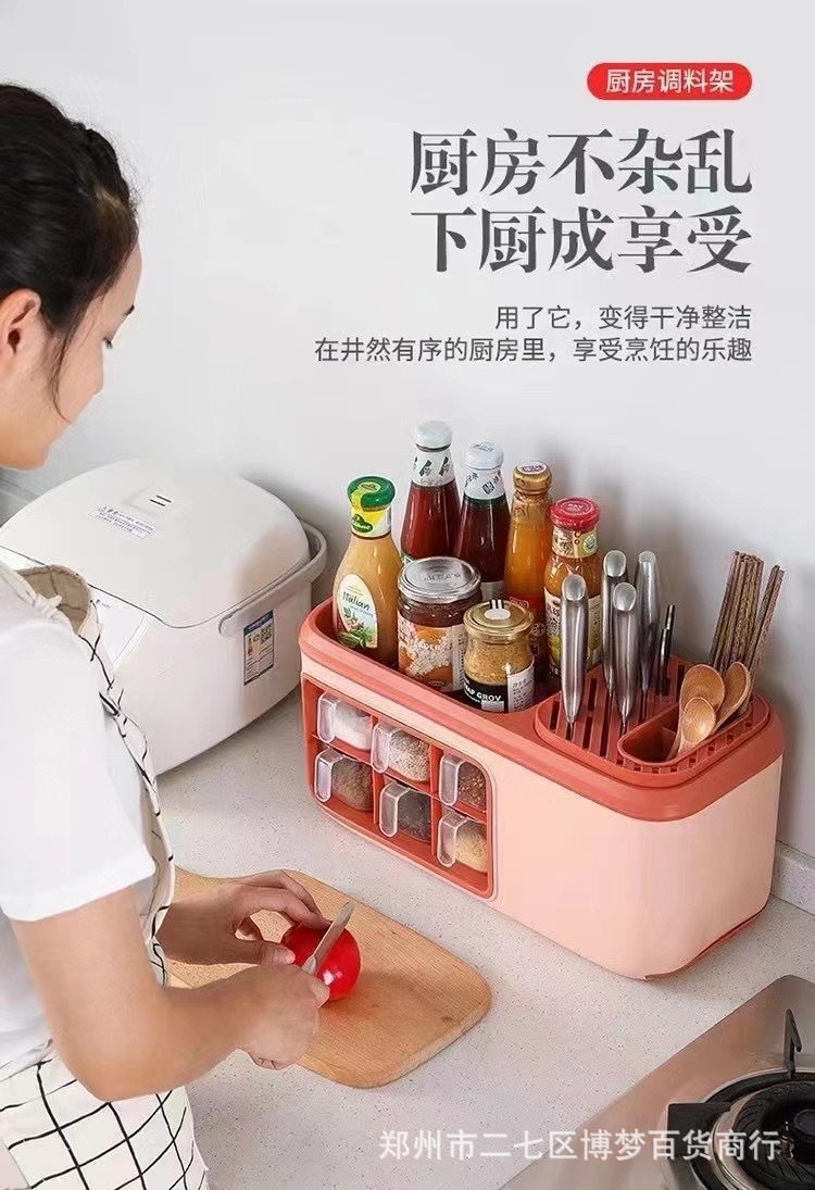 북유럽 스타일 주방 수납 랙 플라스틱 바닥 스탠딩 조미료 보관 랙 다기능 나이프 홀더 오일, 소금, 소스 및 식초 마감 보관스토어 가기