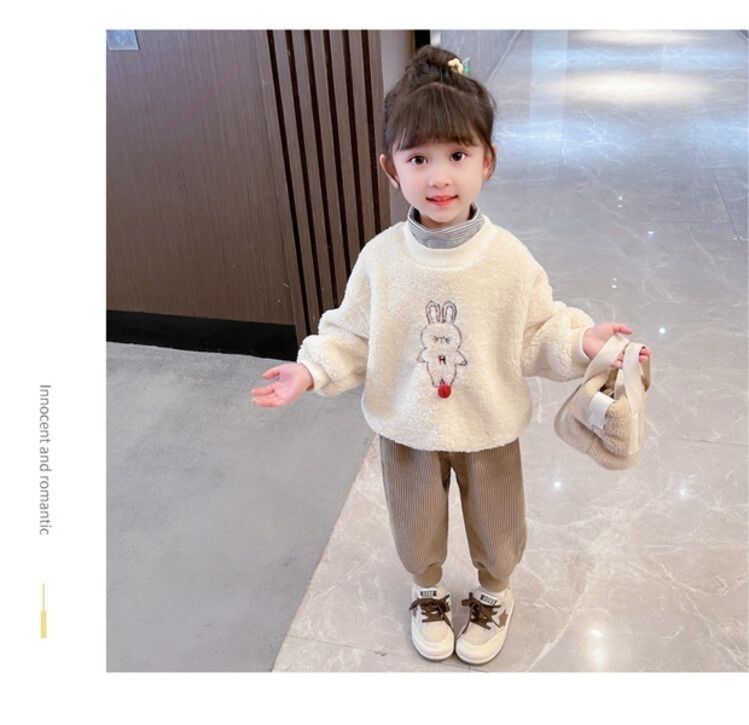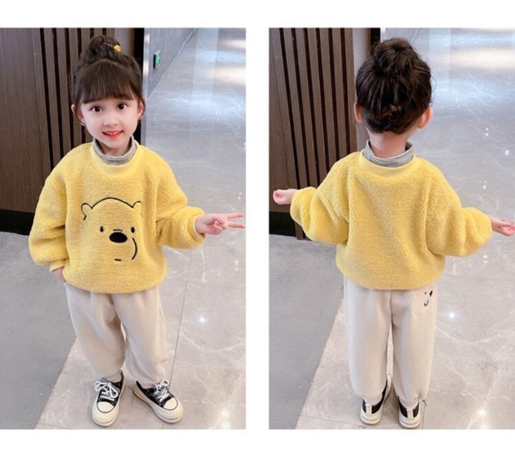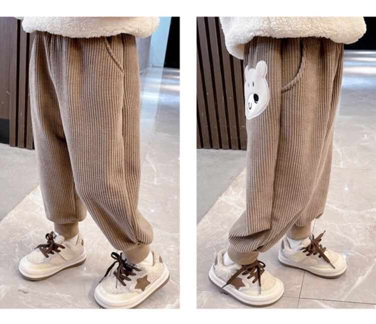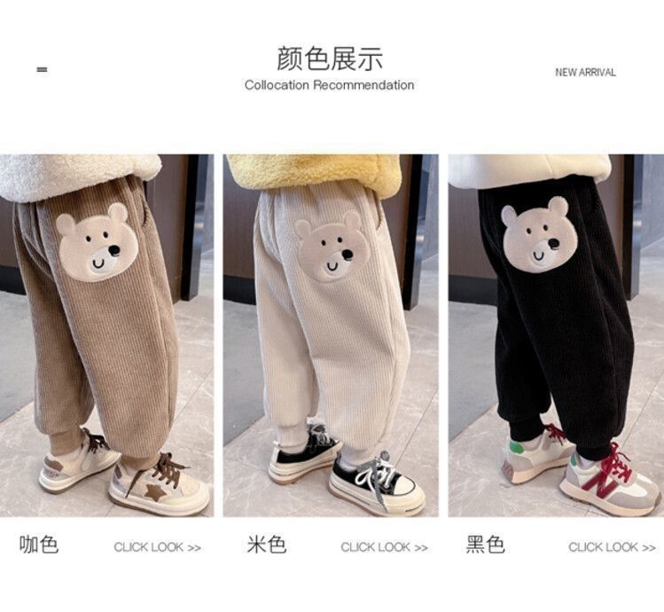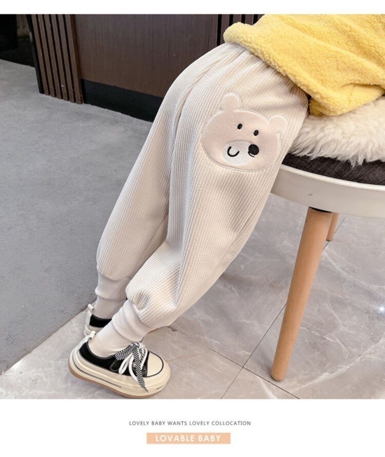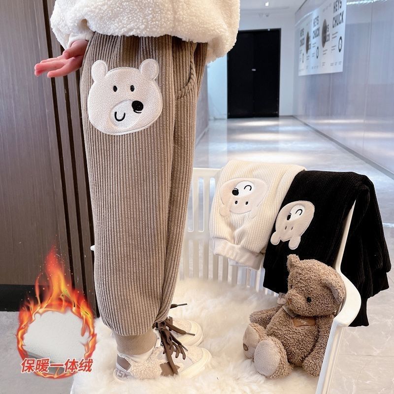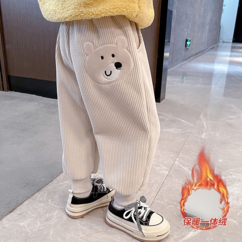 가을과 겨울 새로운 어린이 만화 기모 따뜻한 바지 중소 어린이 느슨한 겉옷 소녀 용 스포츠 바지스토어 가기