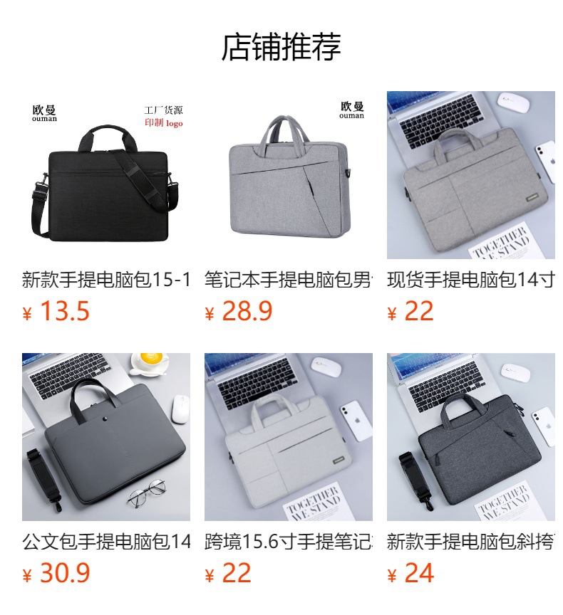 재고 비즈니스 통근 노트북 가방 14 인치 15 인치 방수 메신저 가방 휴대용 서류 가방 인쇄 로고스토어 가기