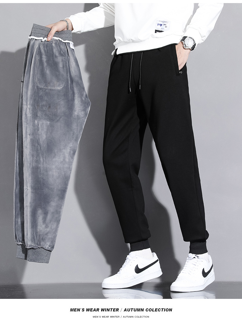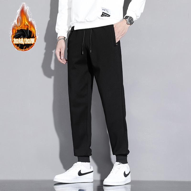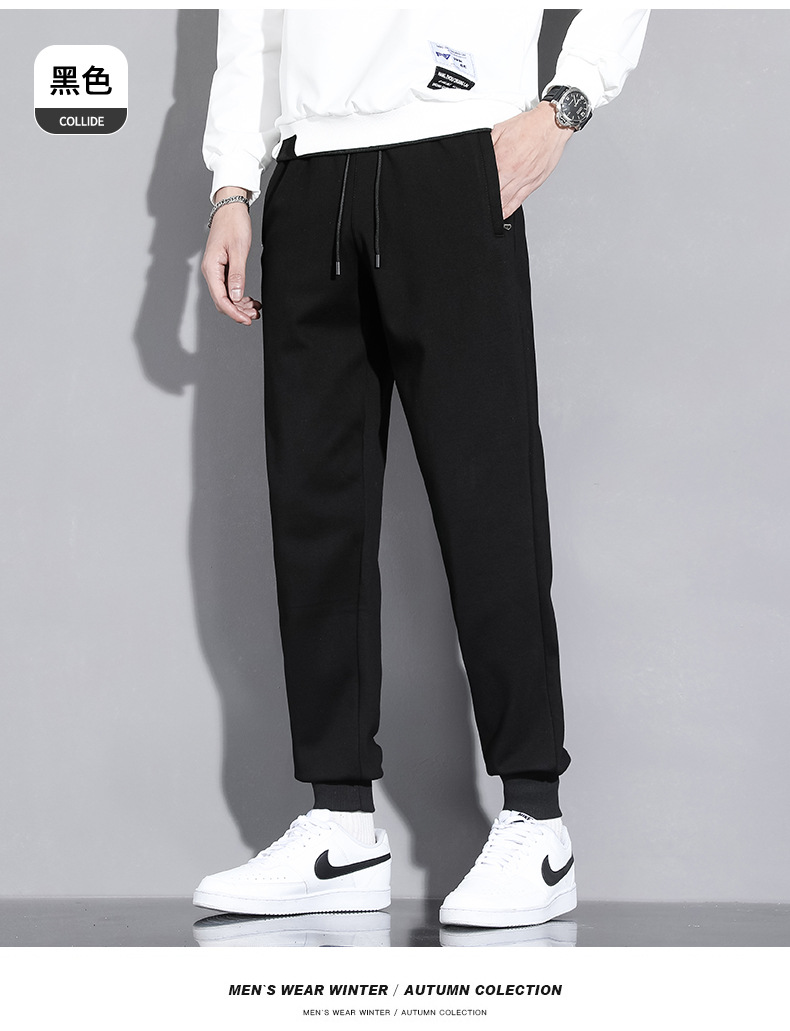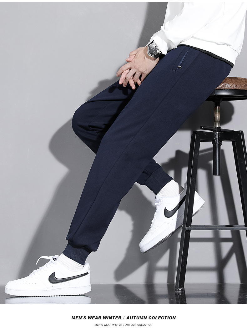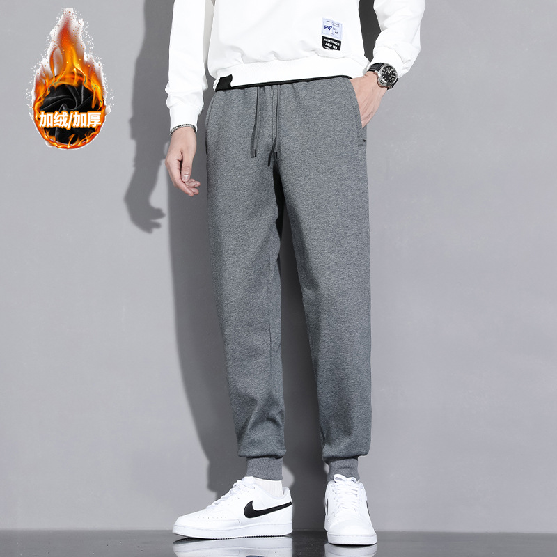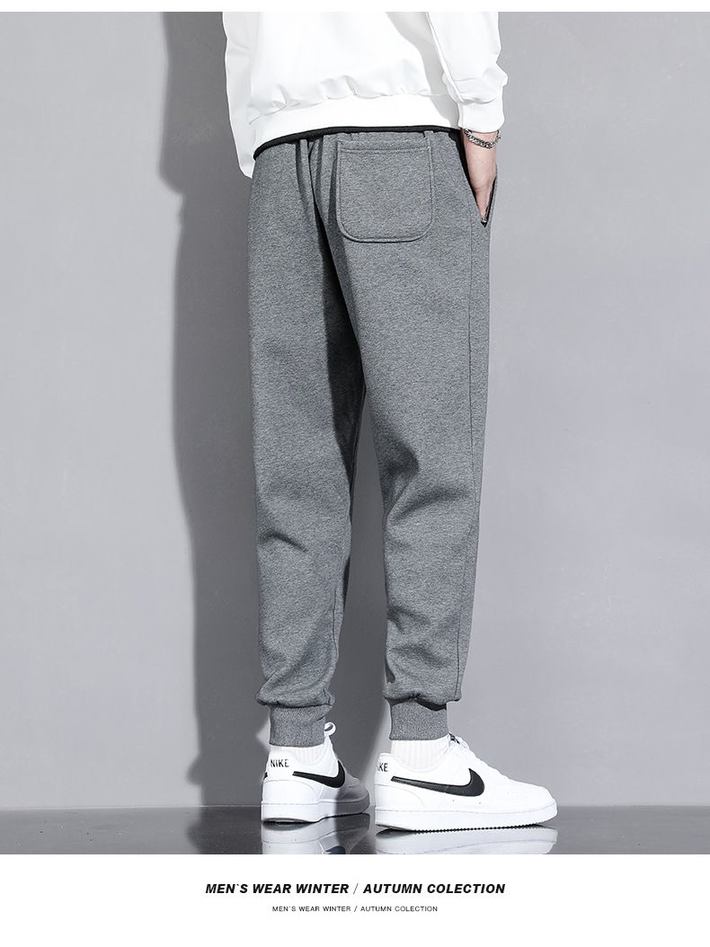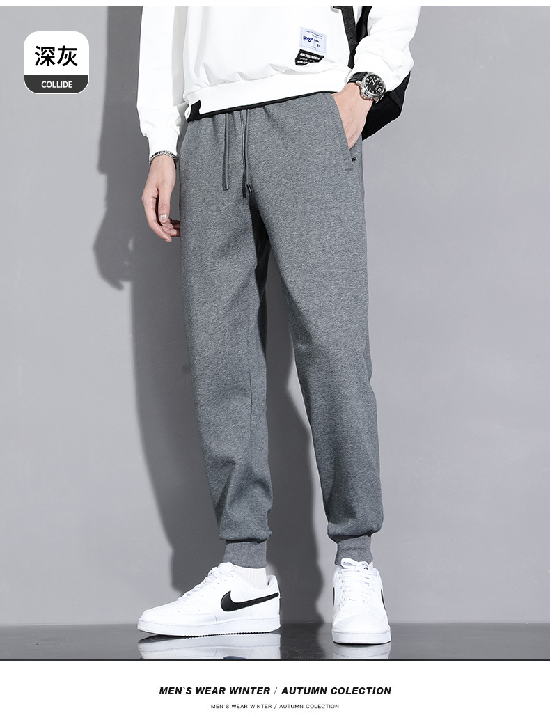 남성용 가을 겨울 기모 면 소재 심플 루즈핏 조거 팬츠 청년용 다용도 편안한 니트 긴바지스토어 가기