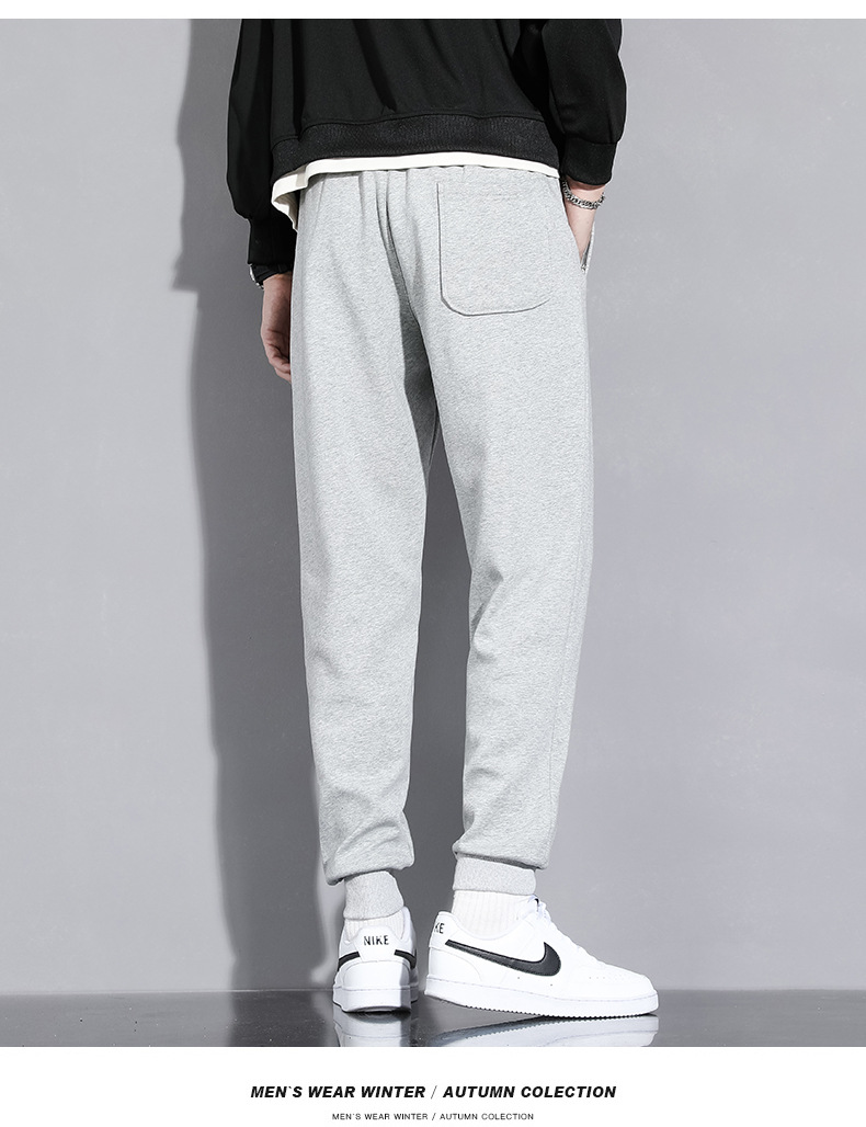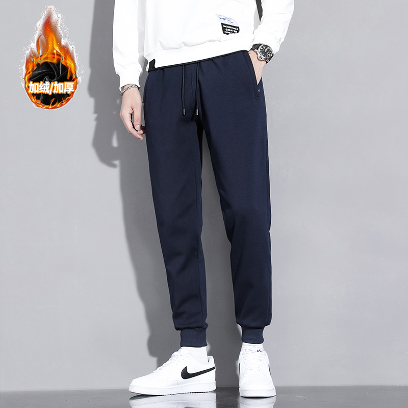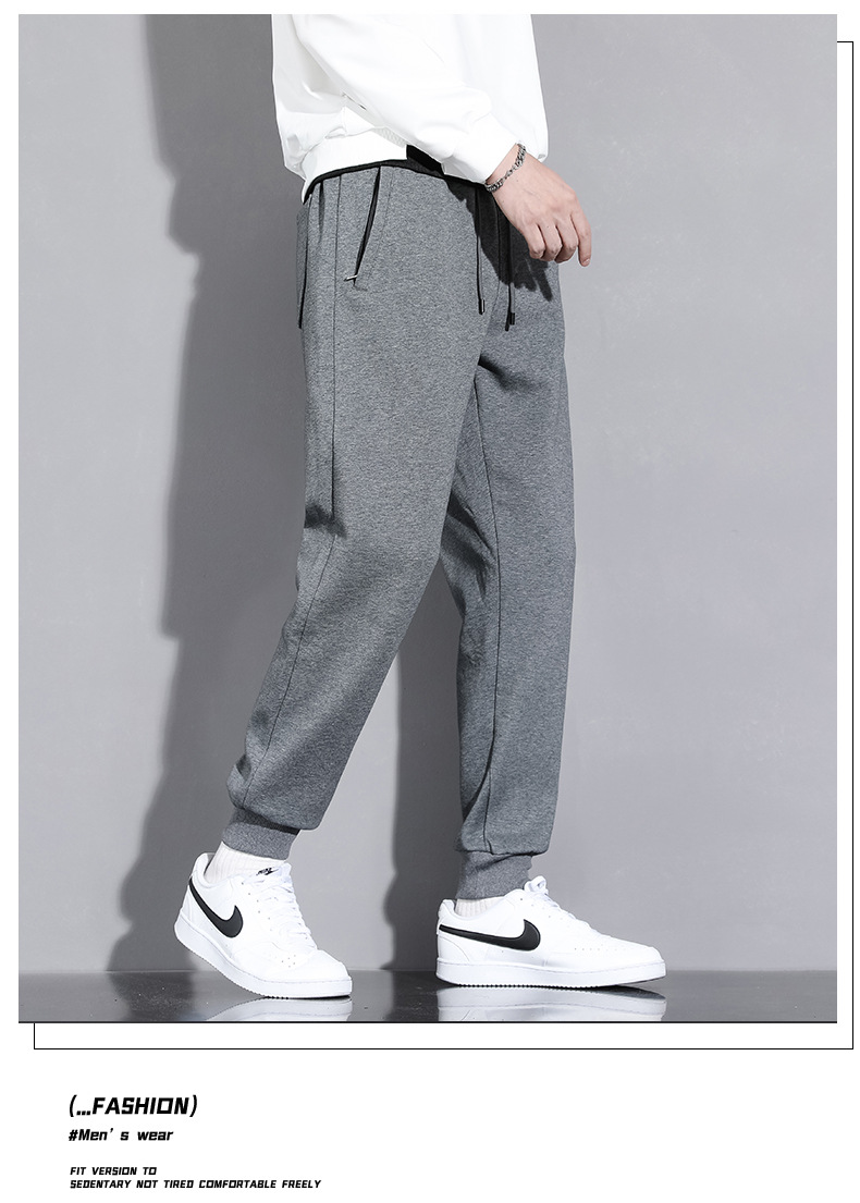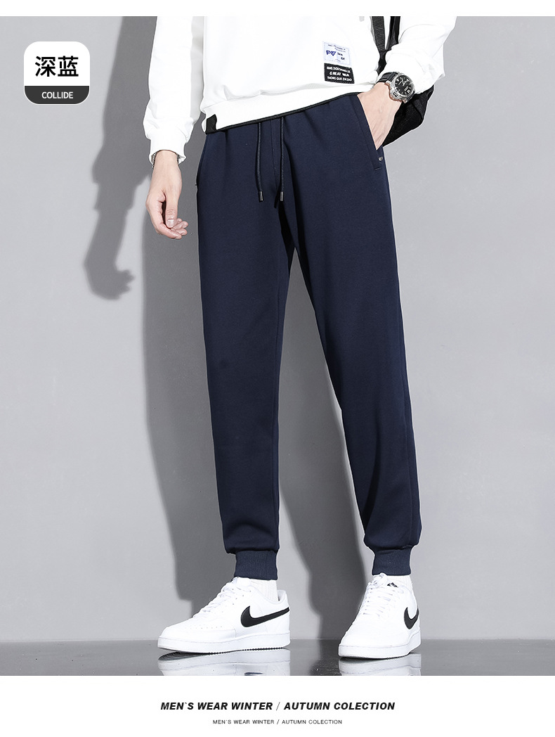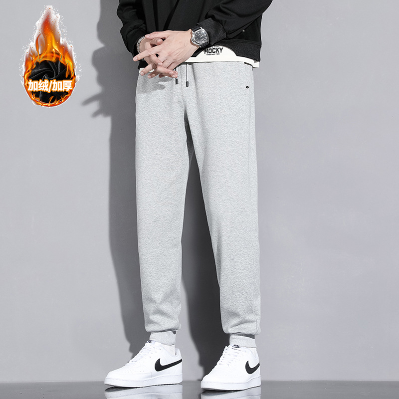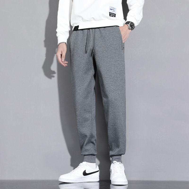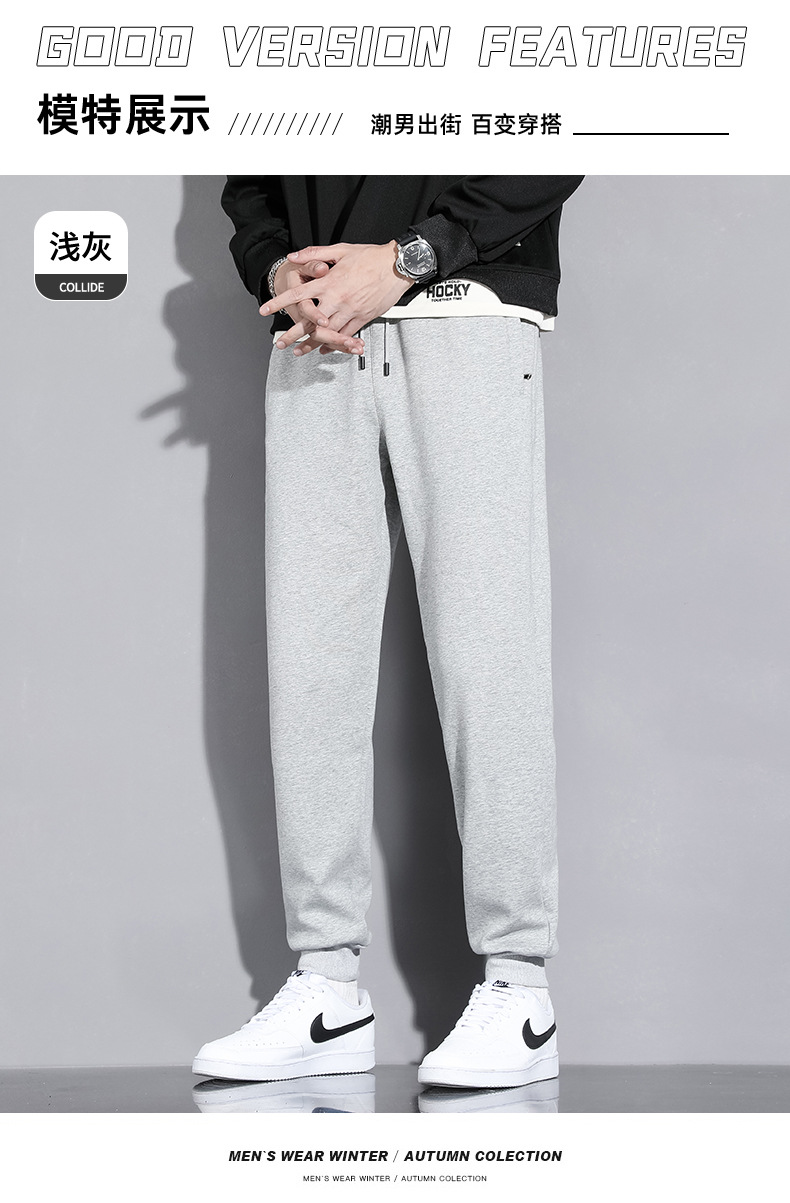남성용 가을 겨울 기모 면 소재 심플 루즈핏 조거 팬츠 청년용 다용도 편안한 니트 긴바지스토어 가기