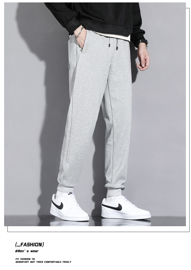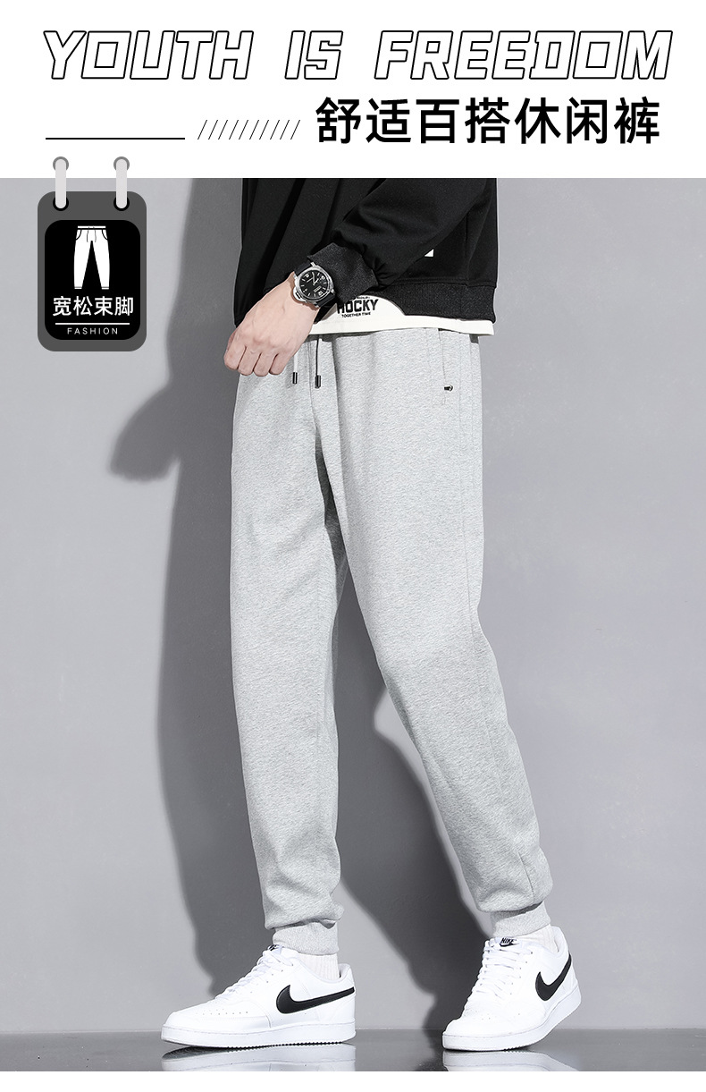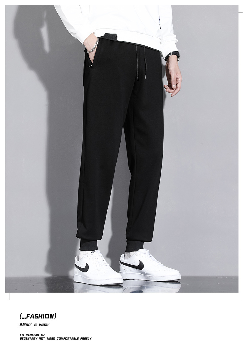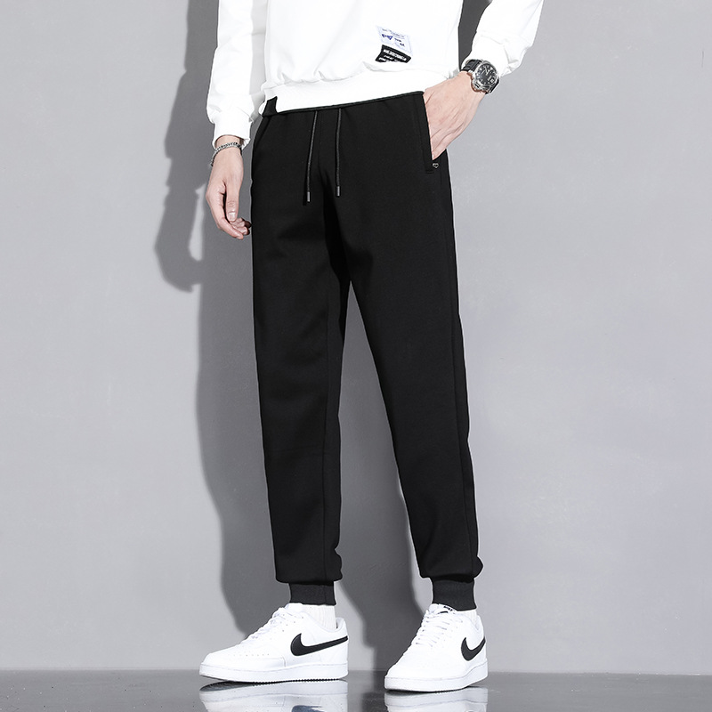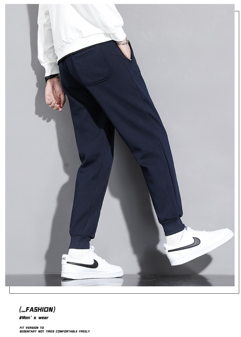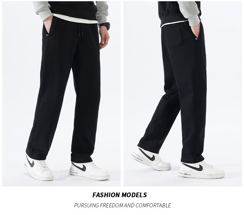 남성용 가을 겨울 기모 면 소재 심플 루즈핏 조거 팬츠 청년용 다용도 편안한 니트 긴바지스토어 가기