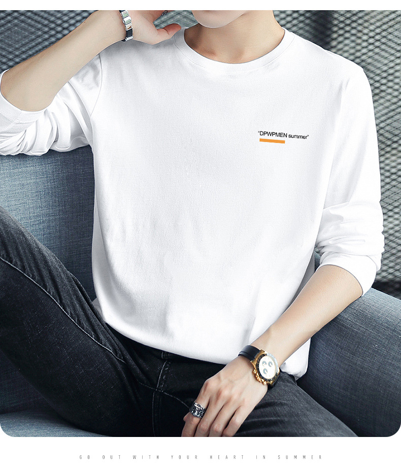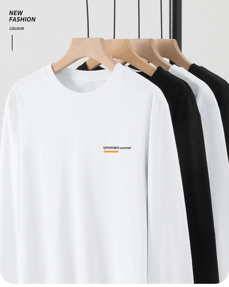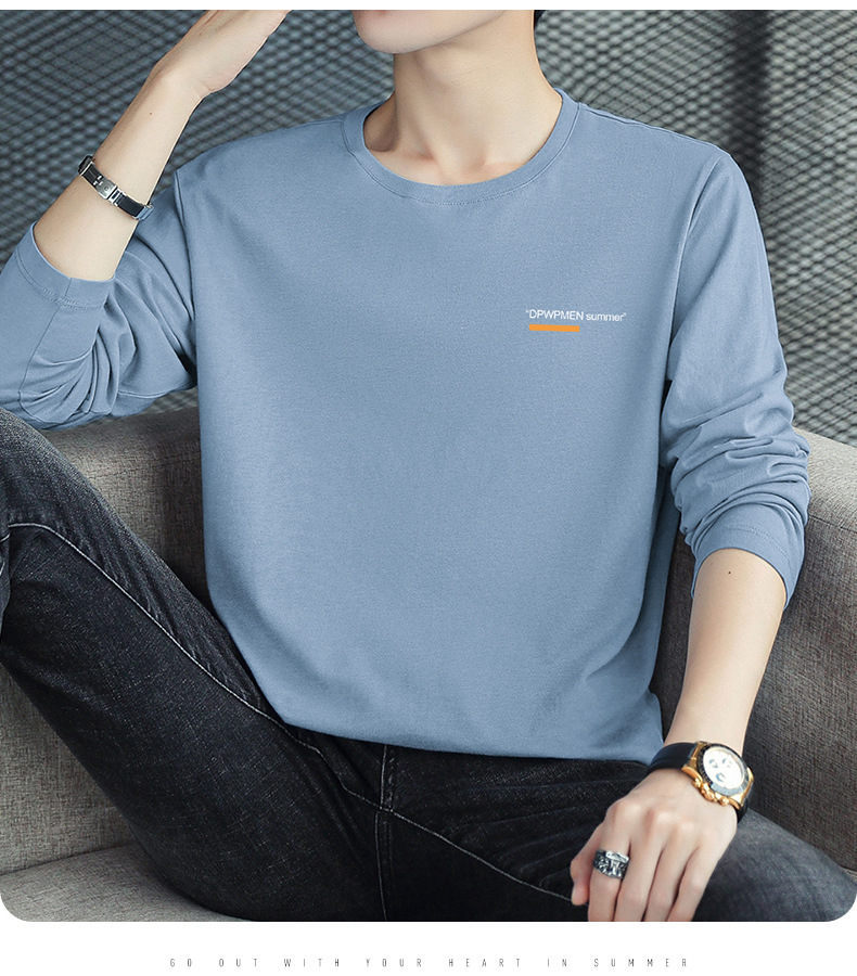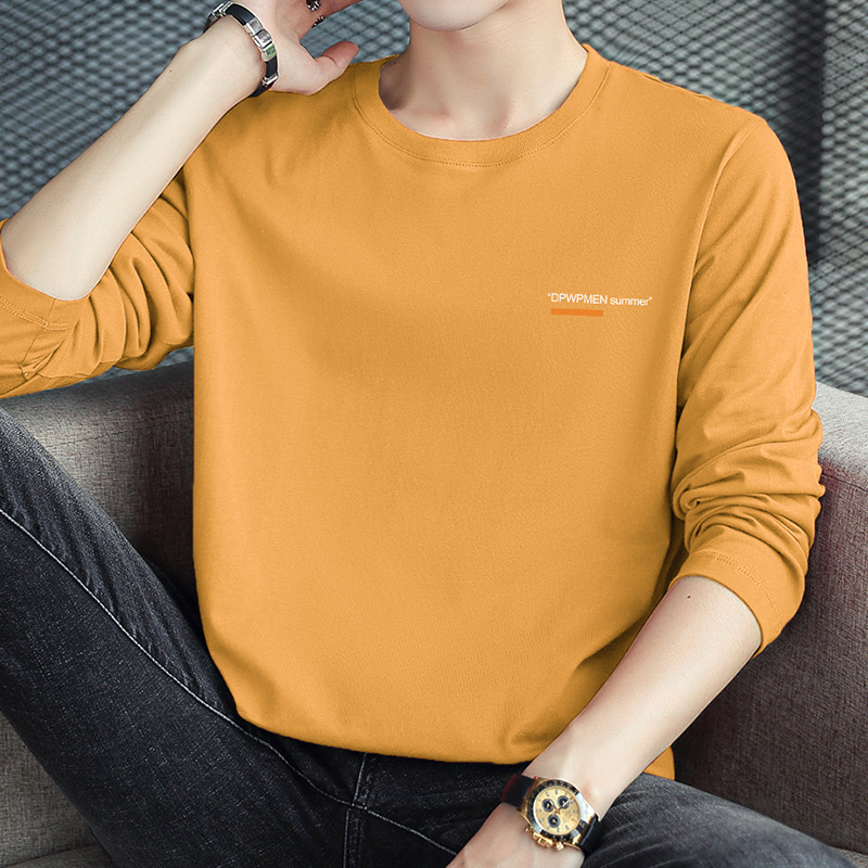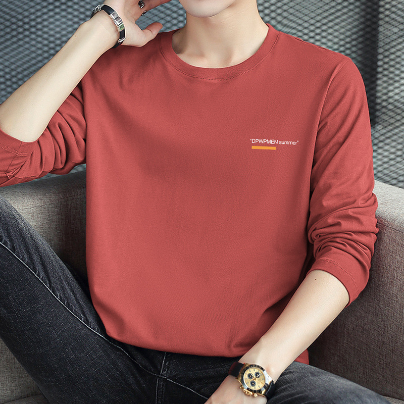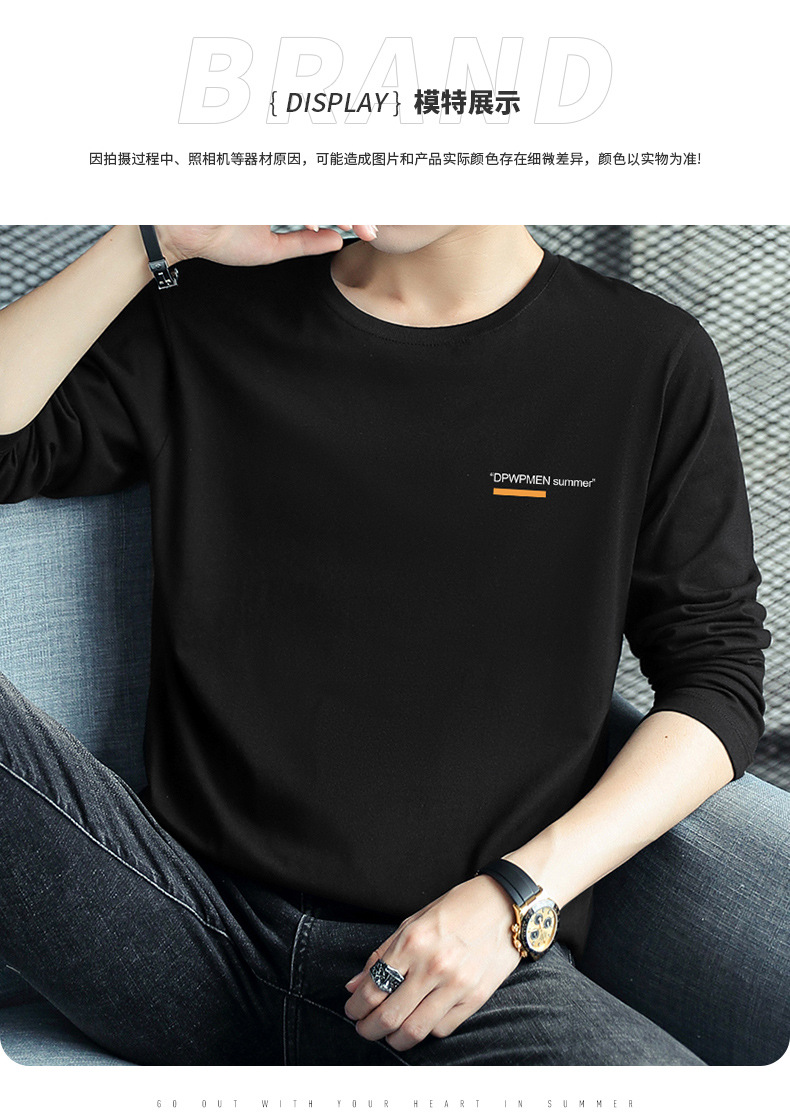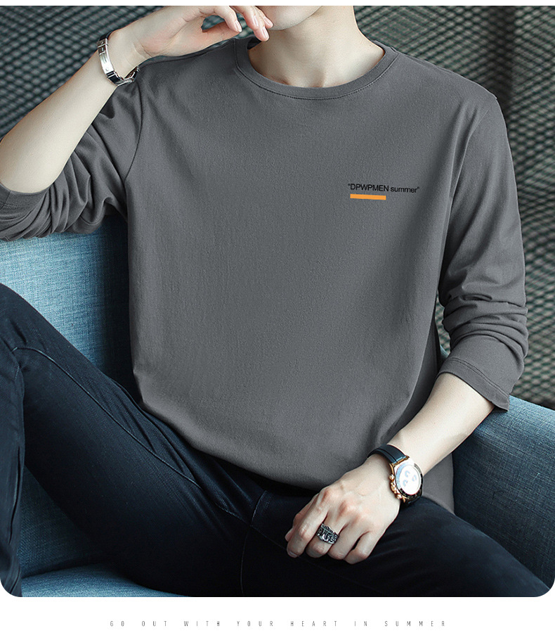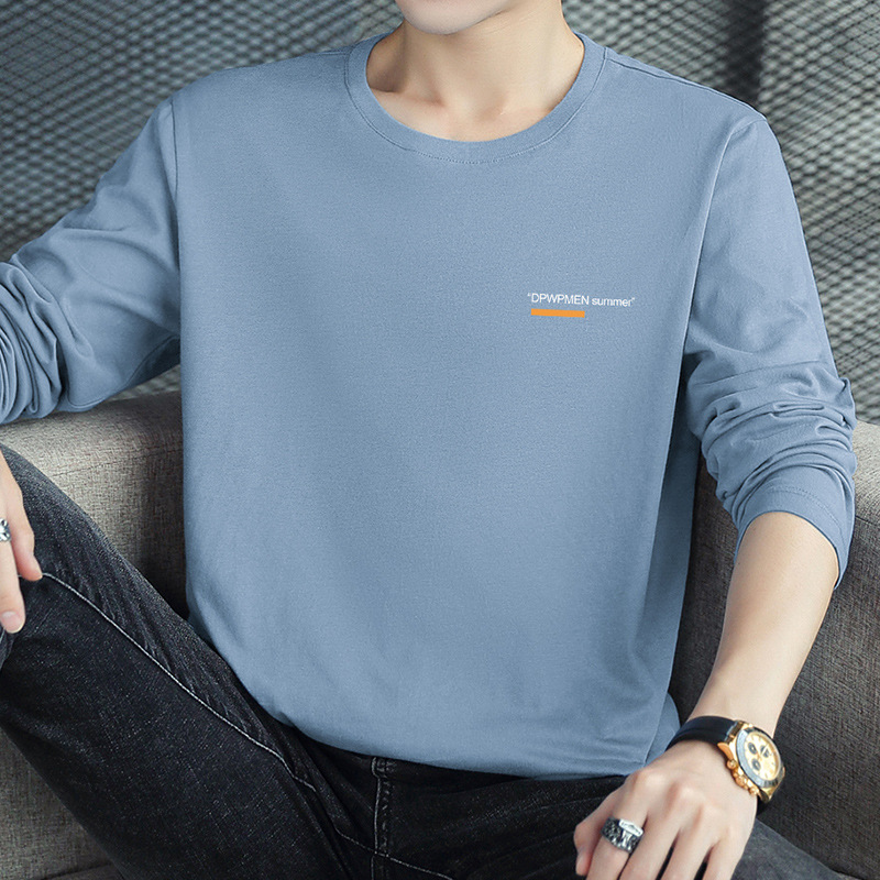 2025 신상 순면 티셔츠 남성용 긴팔 라운드넥 상의 이너웨어 베이스 셔츠 가을옷 면 티셔츠스토어 가기
