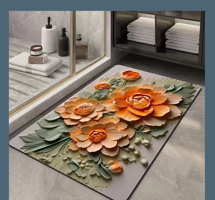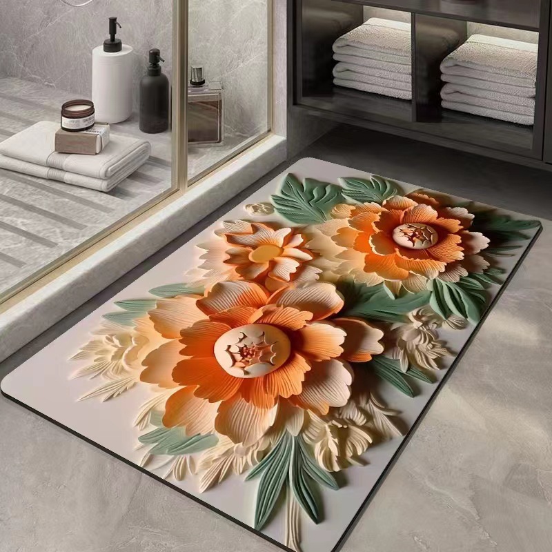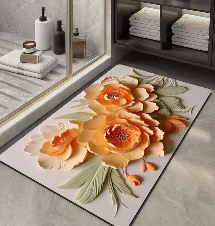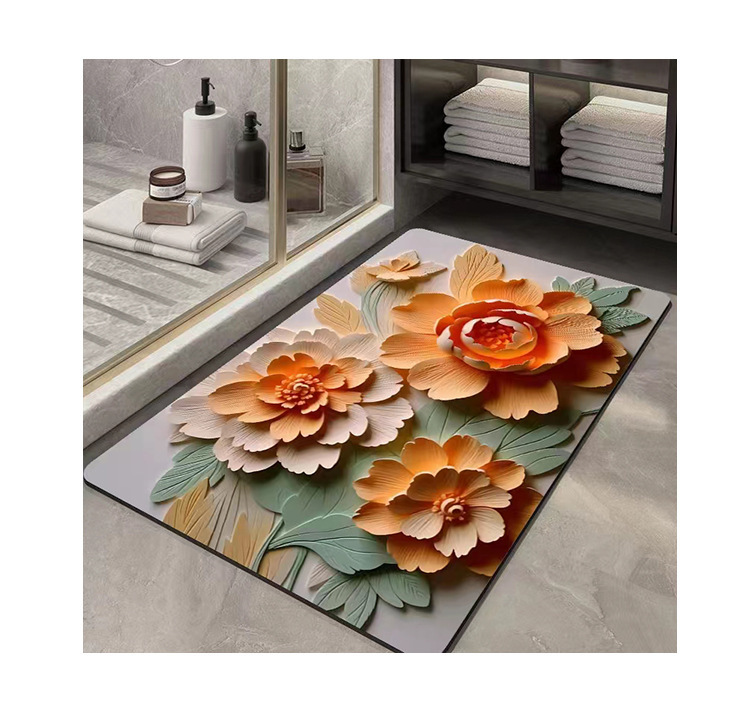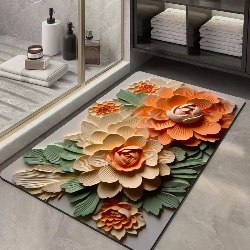 플라워 스테레오 시각 효과 규조류 진흙 흡수 매트 욕실 꽃 3D 속건 미끄럼 방지 발 매트 생성 모발스토어 가기