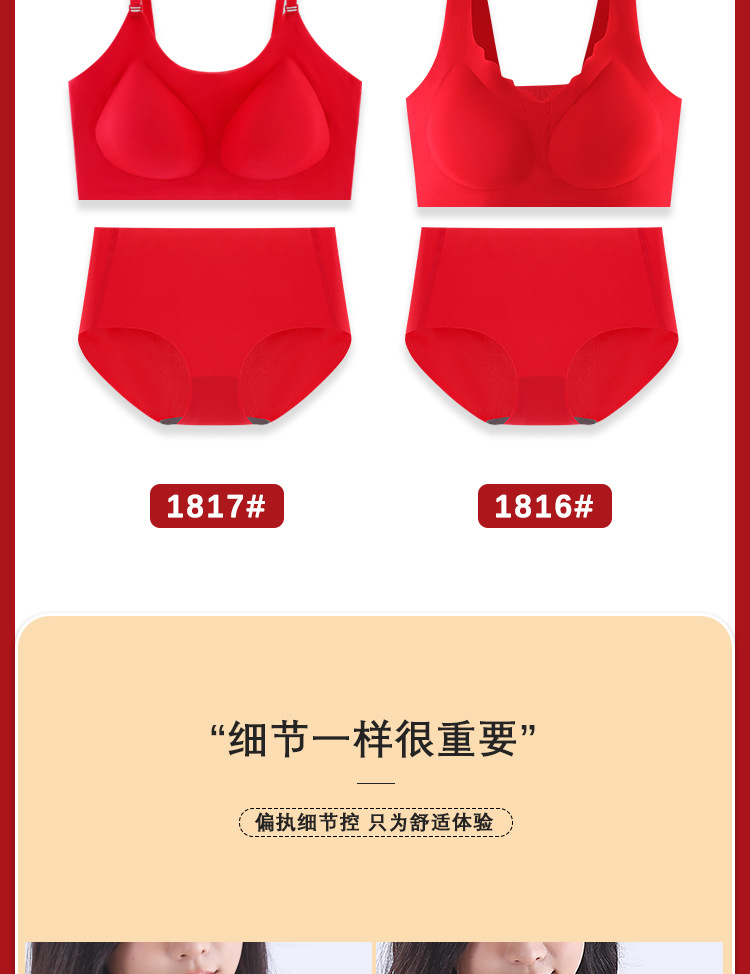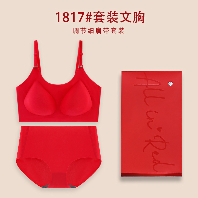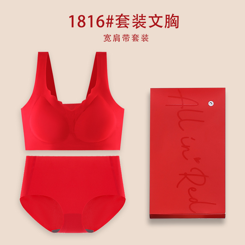Bermingnian 큰 빨간 속옷 세트 개더업 비 무테 Paramilia 아름다움 다시 원활한 선물 상자 세트 여자의 브래지어