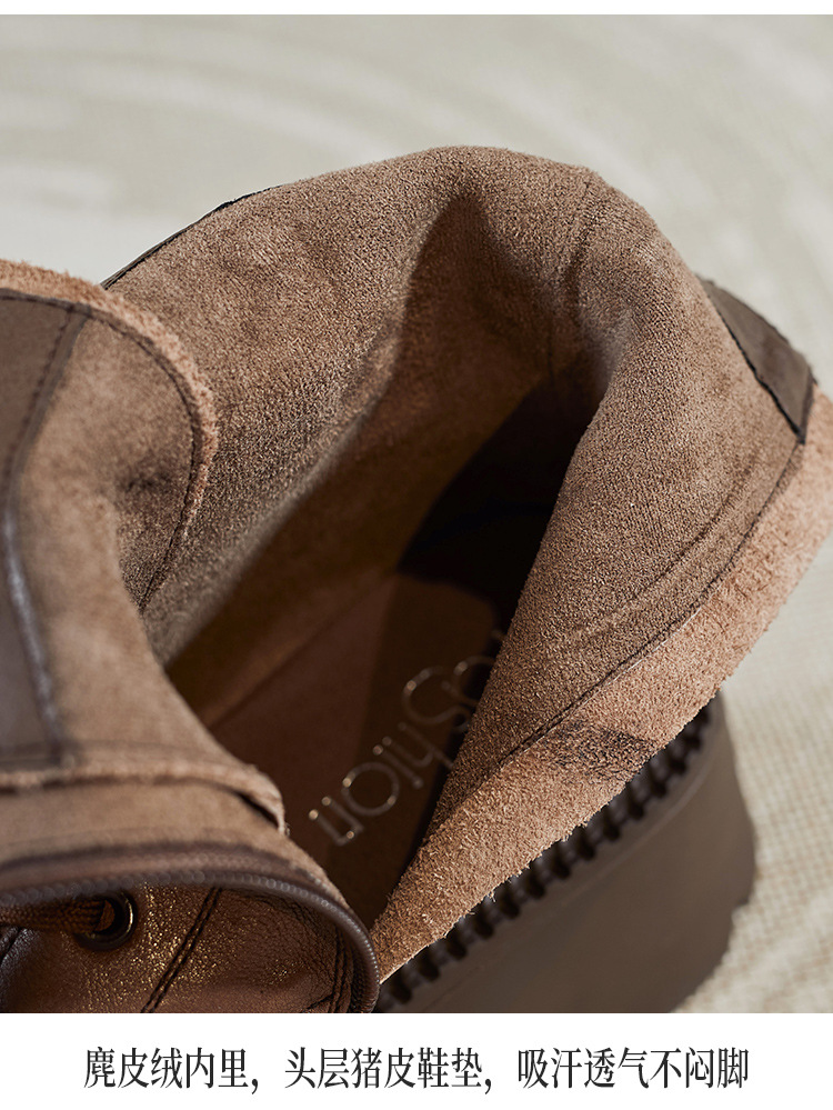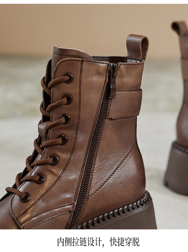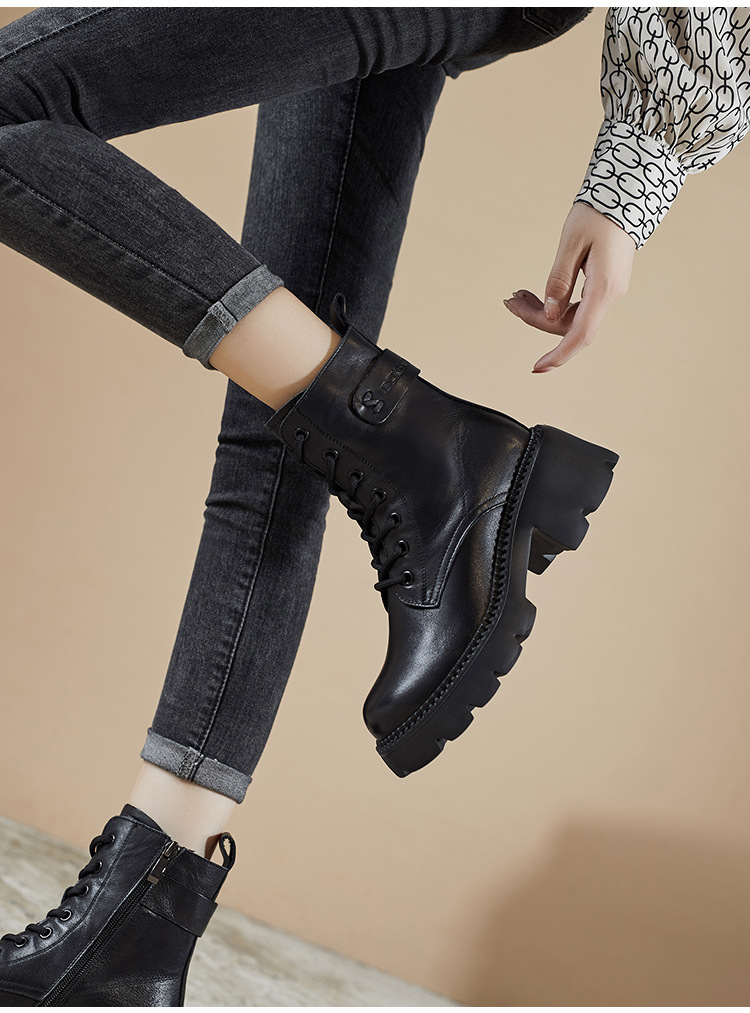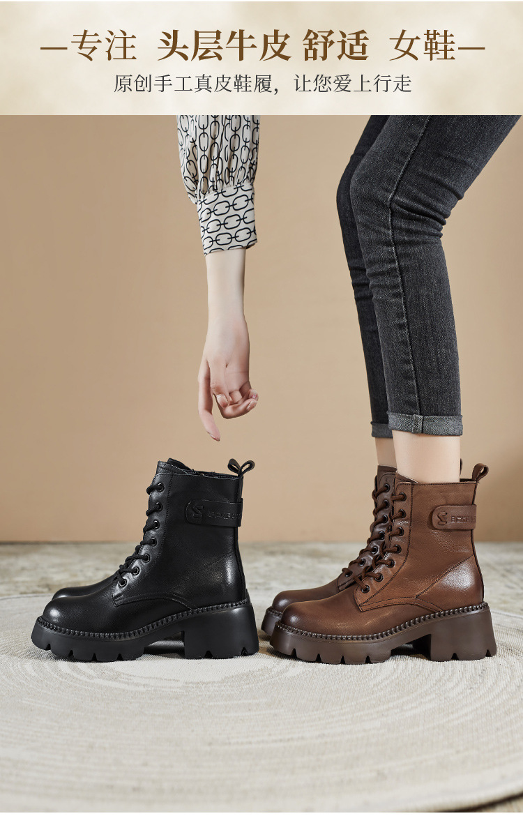 두꺼운 밑창 마틴 부츠 여성용 2023 년 새로운 모든 매치 봄과 가을 탑 레이어 소가죽 레트로 쇼트 부츠 부드러운 밑창 부드러운 가죽 부츠스토어 가기