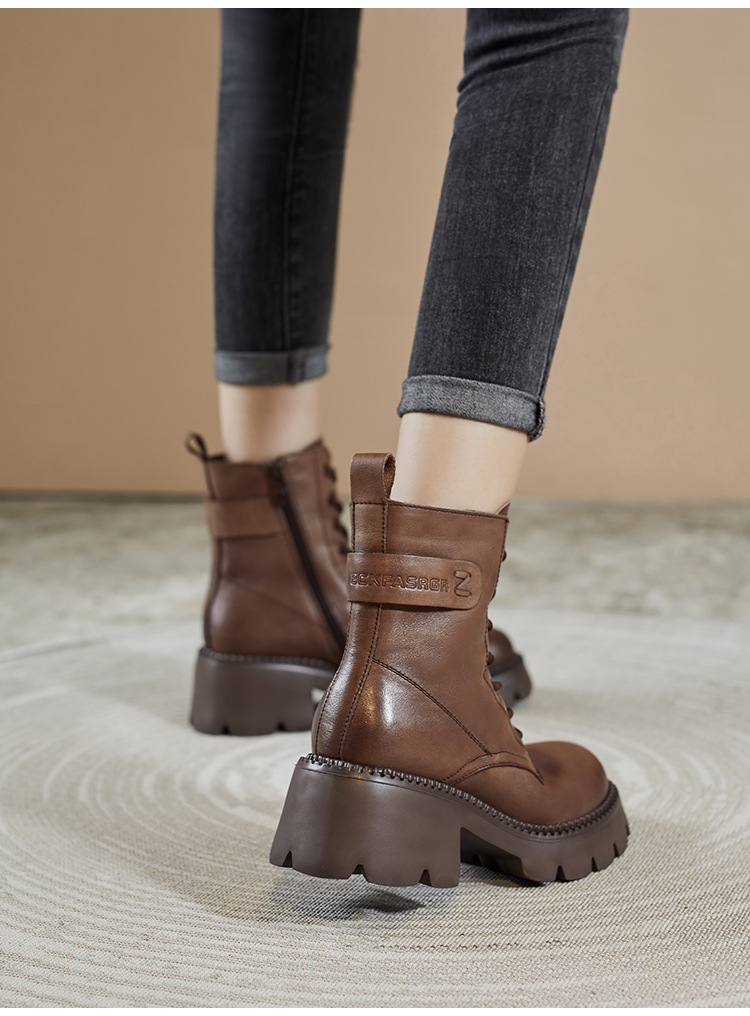 두꺼운 밑창 마틴 부츠 여성용 2023 년 새로운 모든 매치 봄과 가을 탑 레이어 소가죽 레트로 쇼트 부츠 부드러운 밑창 부드러운 가죽 부츠