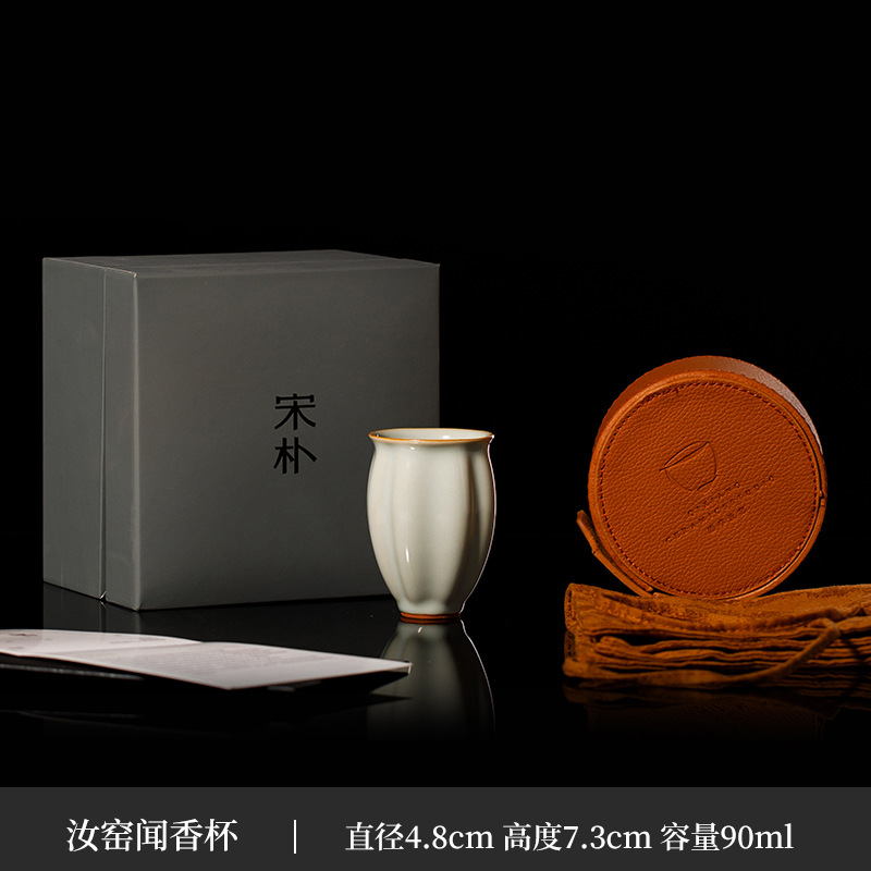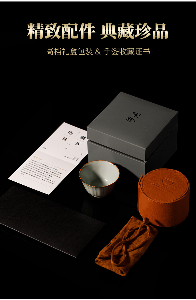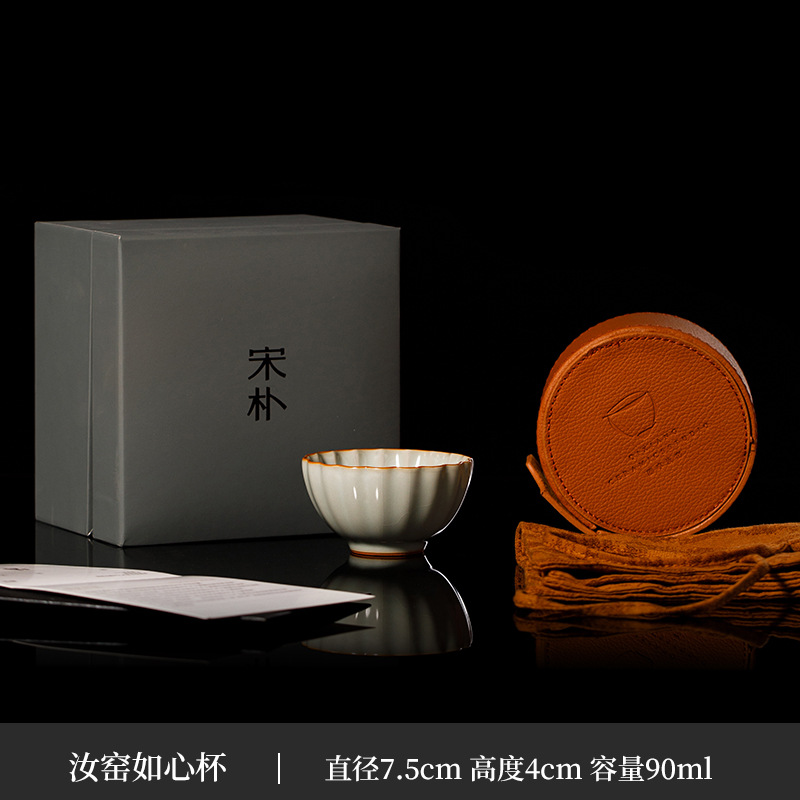 마스터 송 Pu Su Yang Ye 수제 얇은 타이어 Ru Kiln 손으로 뽑은 배아 마스터 컵 차 시음 컵 오프닝 필름 모금 선물 상자스토어 가기