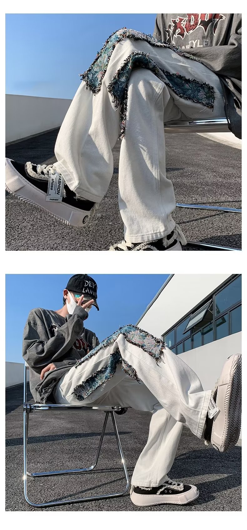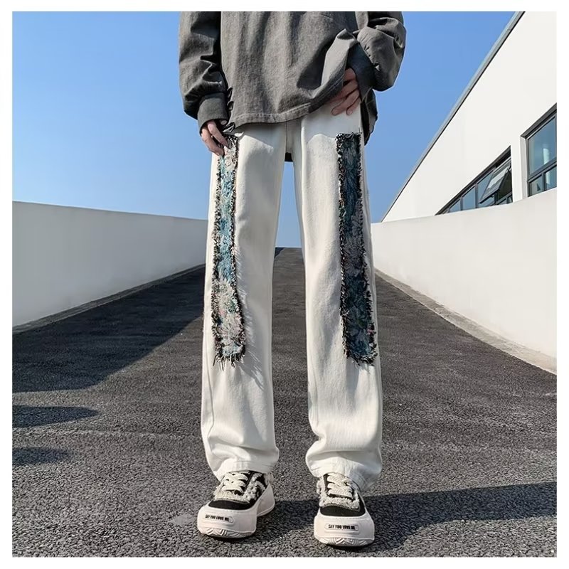 아메리칸 스타일 하이 스트리트 스타일 바지 남성용 캐주얼 디자인 센스 하이 스트리트 워시 청바지 플러스 사이즈 스트레이트 바지스토어 가기