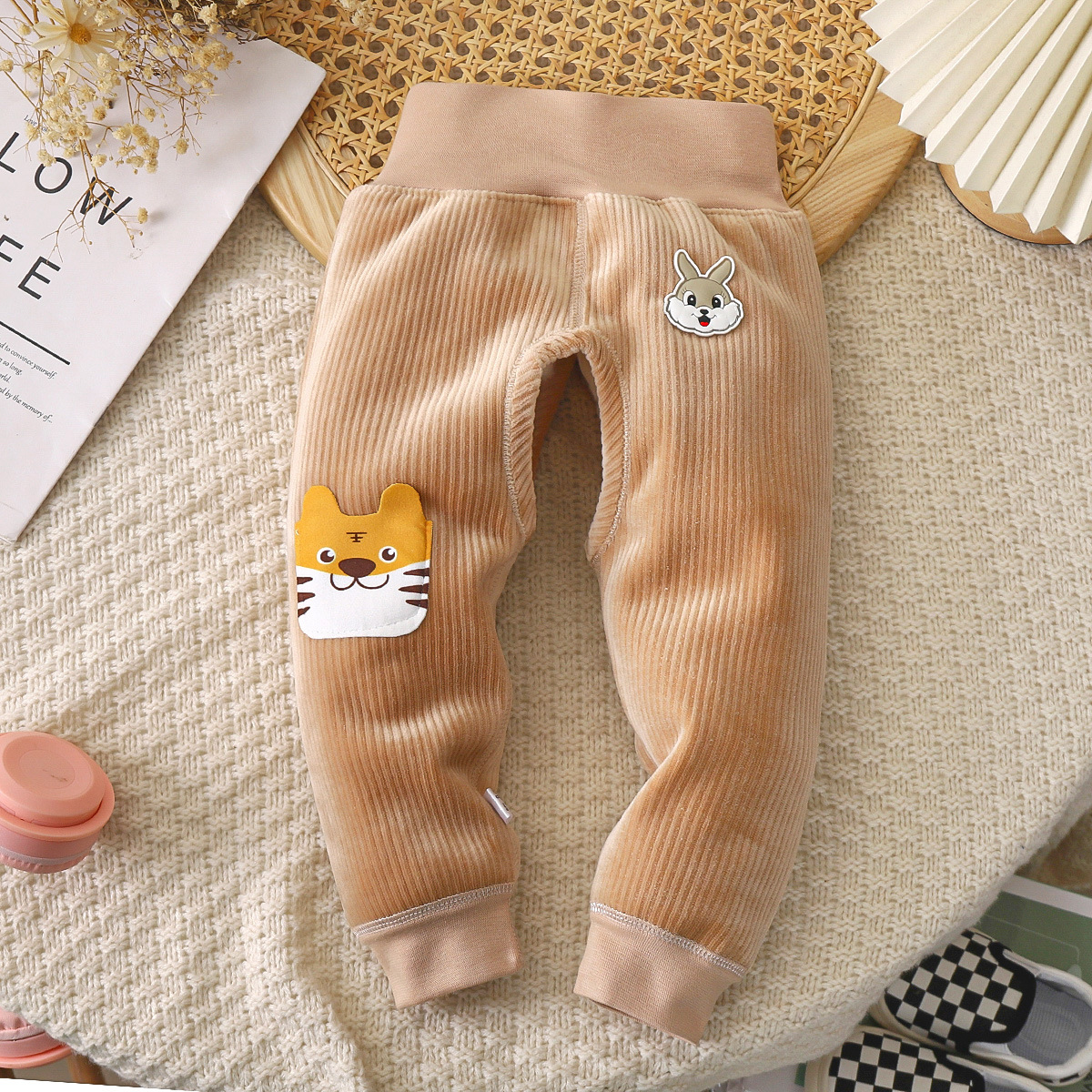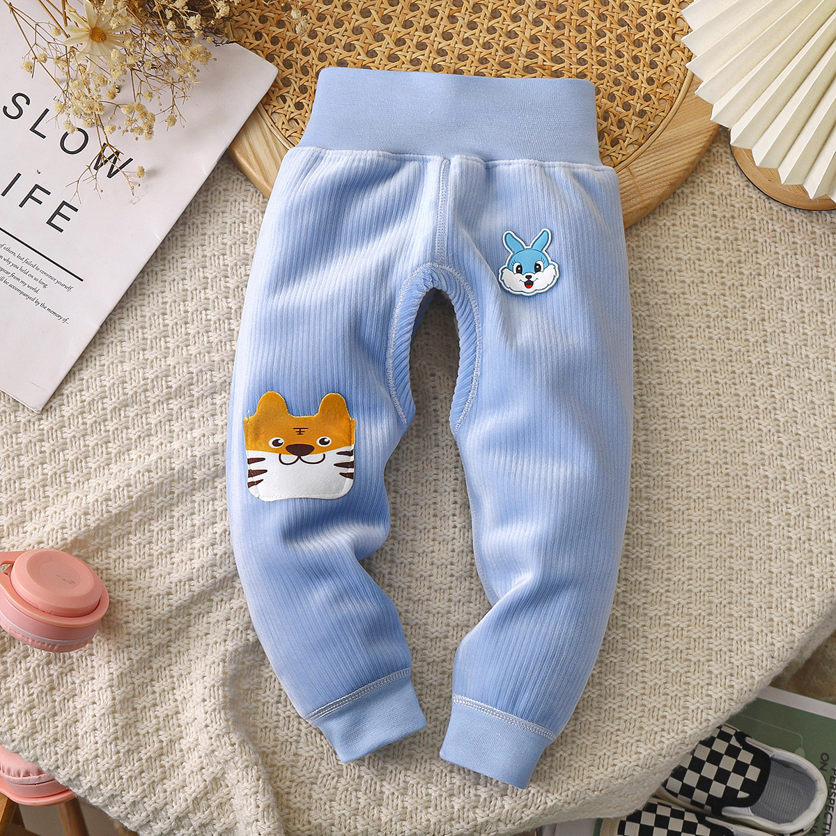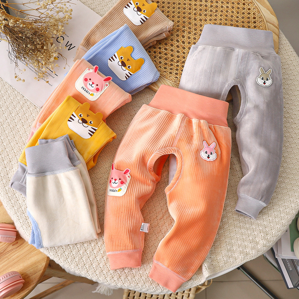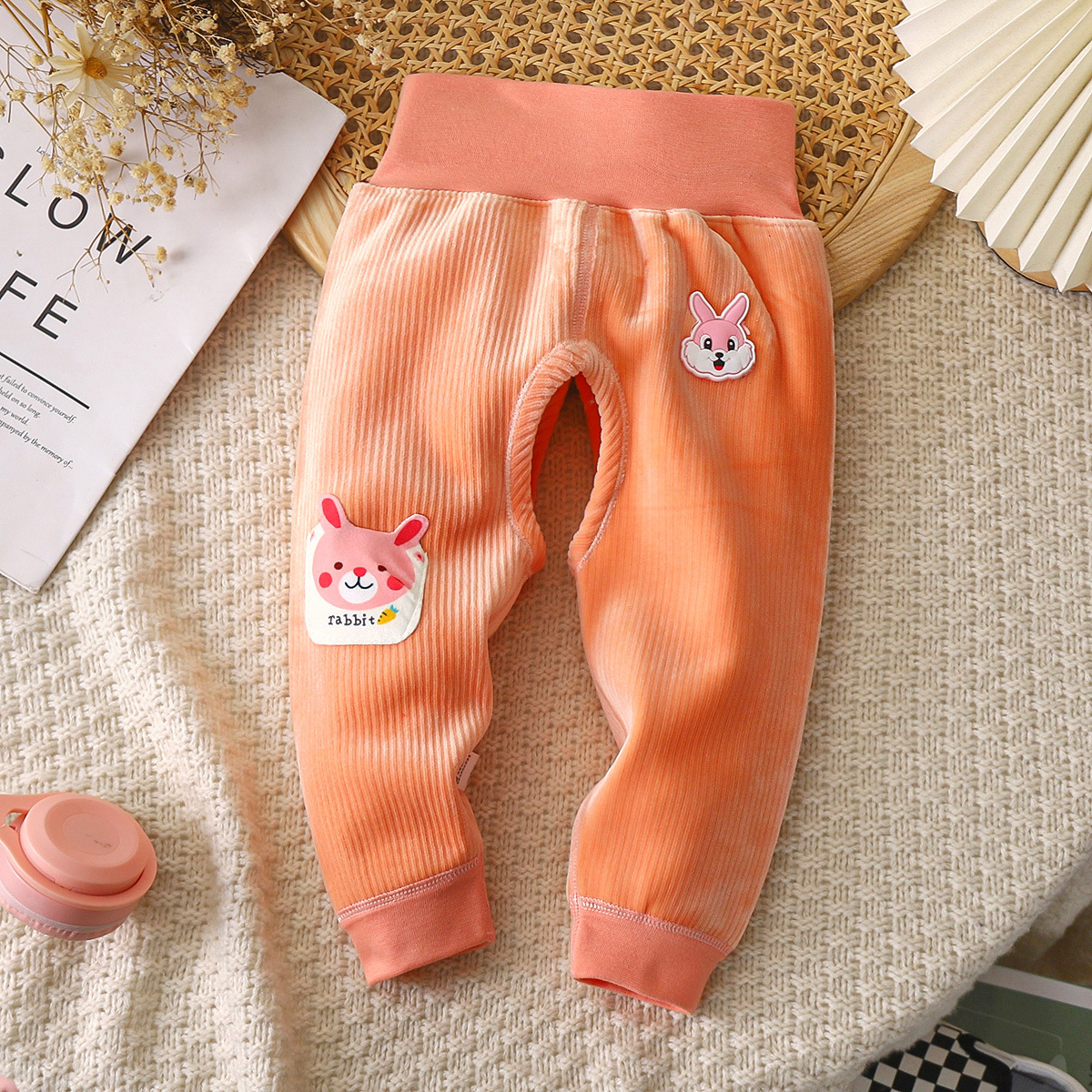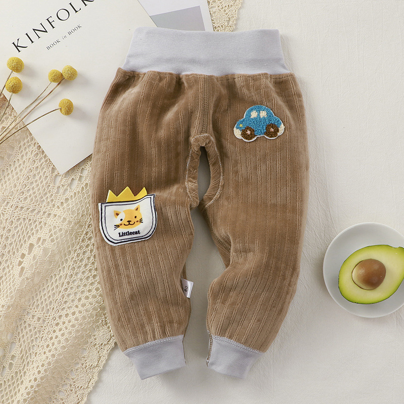 아기와 어린 아이들 따뜻한 가을과 겨울 하이 웨이스트 바지 신생아 배꼽 바지 남자와 여자 아기 따뜻한 아기 기모 긴 존스의 배치스토어 가기