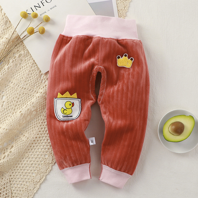 아기와 어린 아이들 따뜻한 가을과 겨울 하이 웨이스트 바지 신생아 배꼽 바지 남자와 여자 아기 따뜻한 아기 기모 긴 존스의 배치