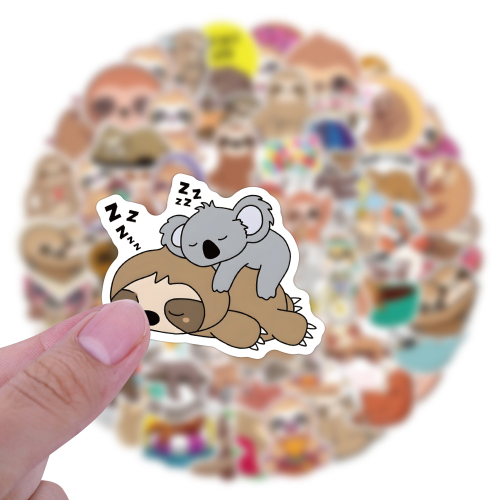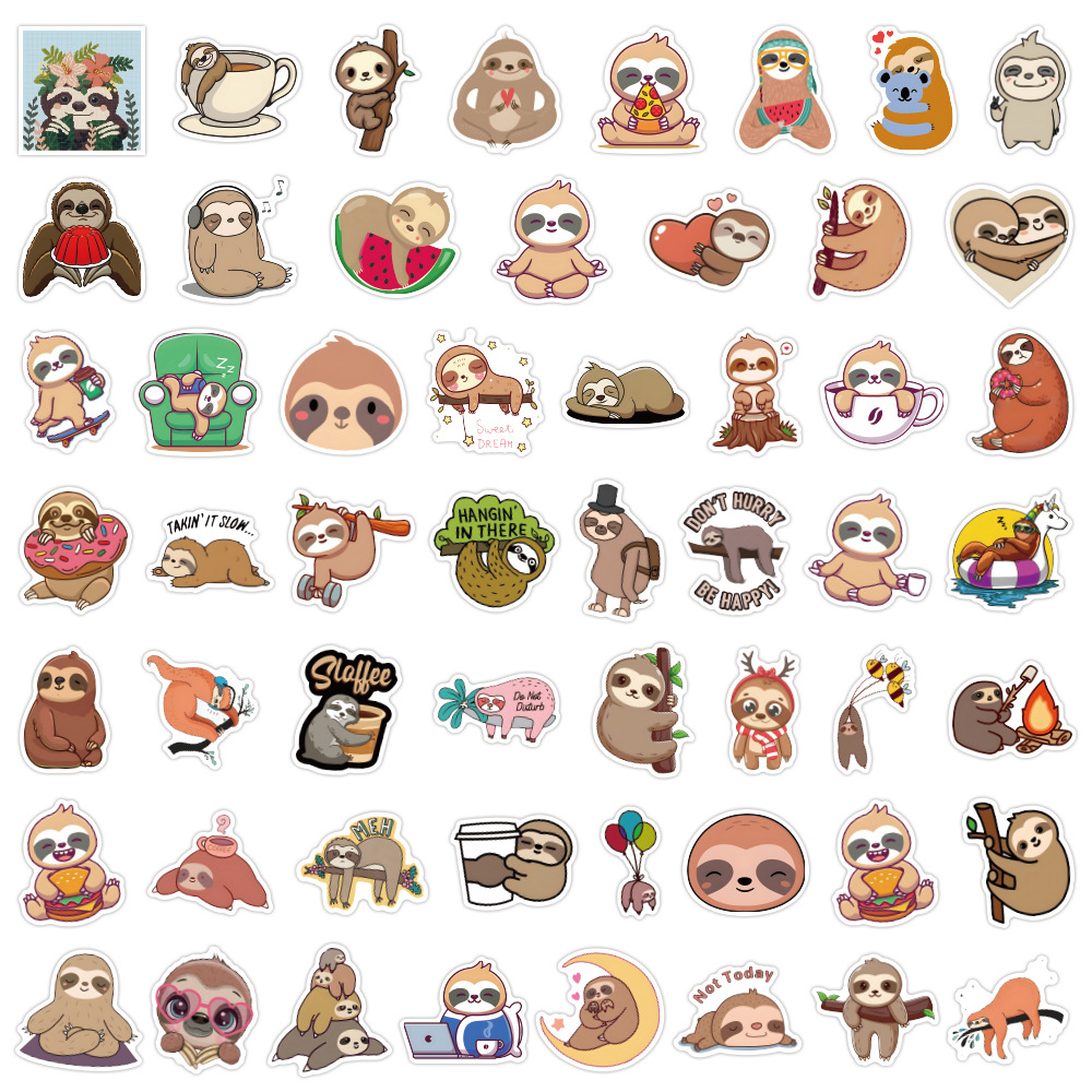 100 크로스 보더 새로운 귀여운 나무 늘보 낙서 스티커 장식 수하물 노트북 스쿠터 방수 스티커
