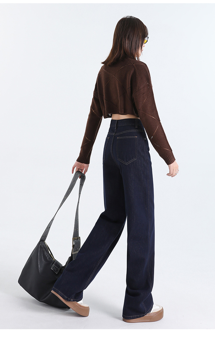 기모 두꺼운 와이드 레그 청바지 여성 가을 겨울 2023 새로운 스트레이트 느슨한 하이 웨이스트 디핑 슬림핏 바닥 걸레질 바지스토어 가기