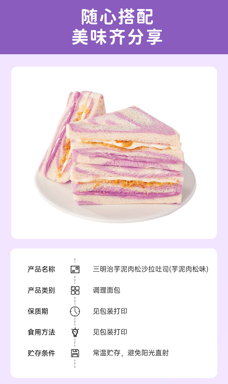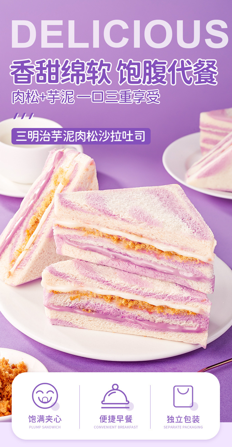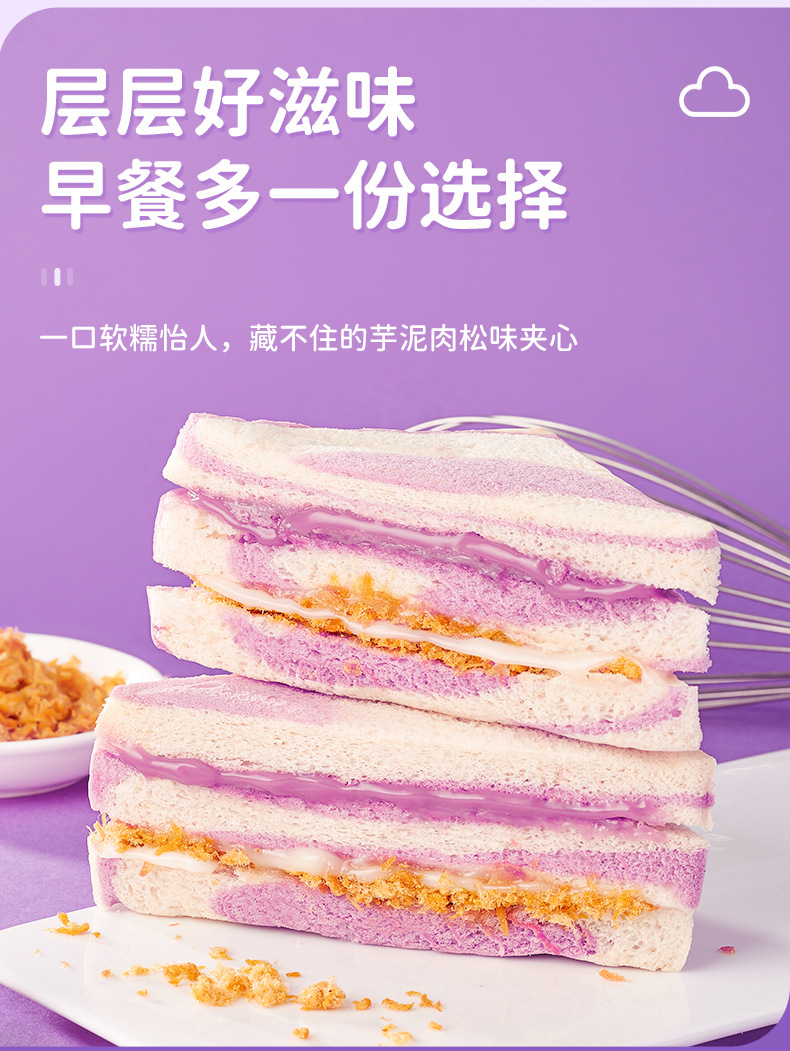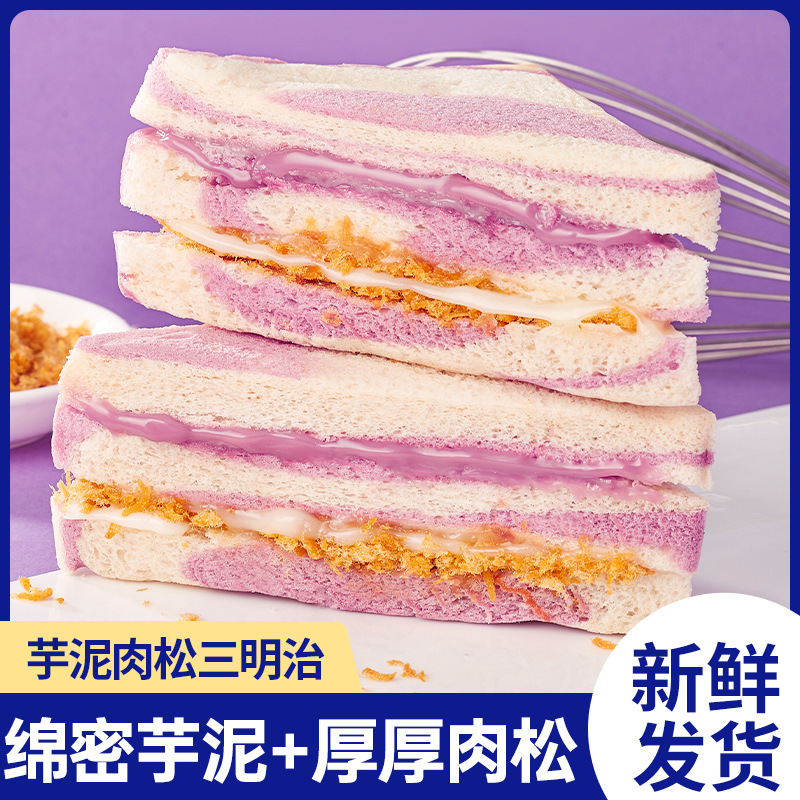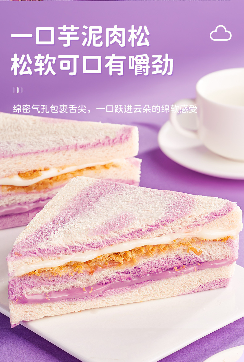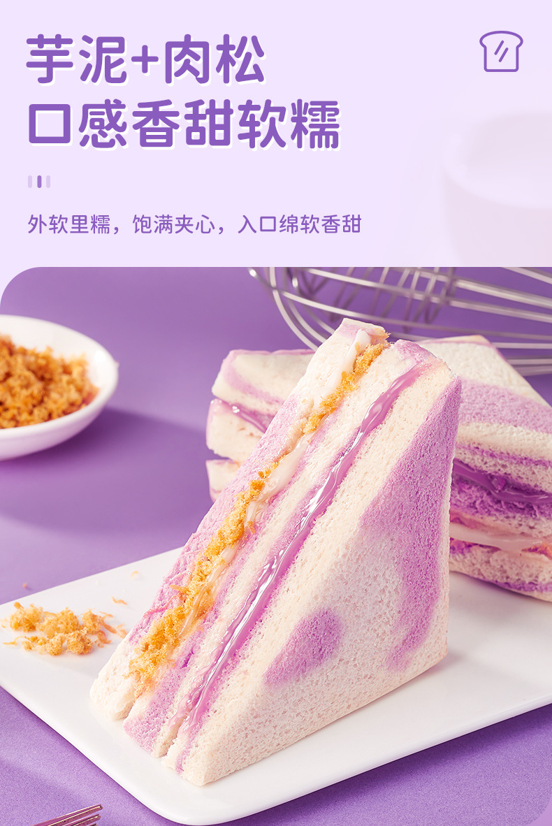타로 진흙 돼지 고기 덩어리 샌드위치 레인보우 타로 가장자리 토스트 아침 식사 빵 전체 케이스 간식 간식 간식