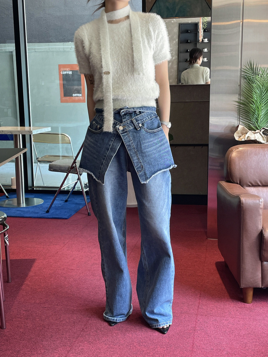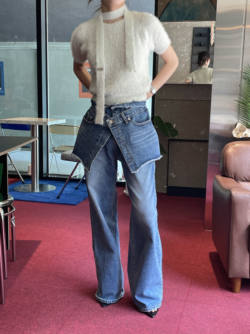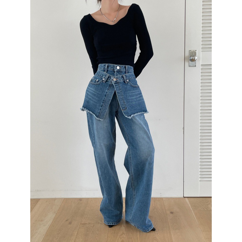 한국 세련된 가을 빈티지 고민 하이 웨이스트 모든 매치 캐주얼 와이드 레그 팬츠 청바지 바지 여성의 허리 커버스토어 가기
